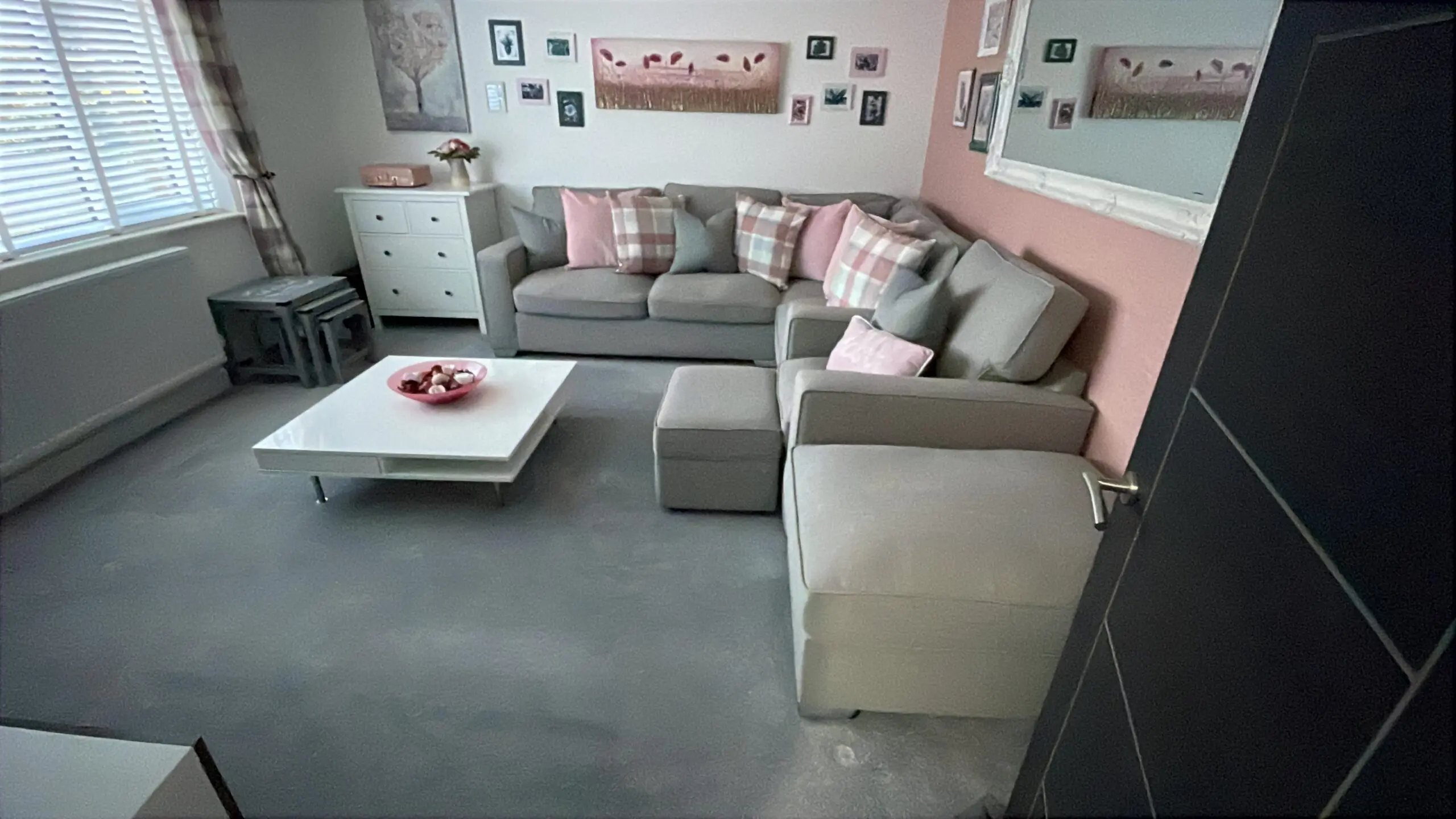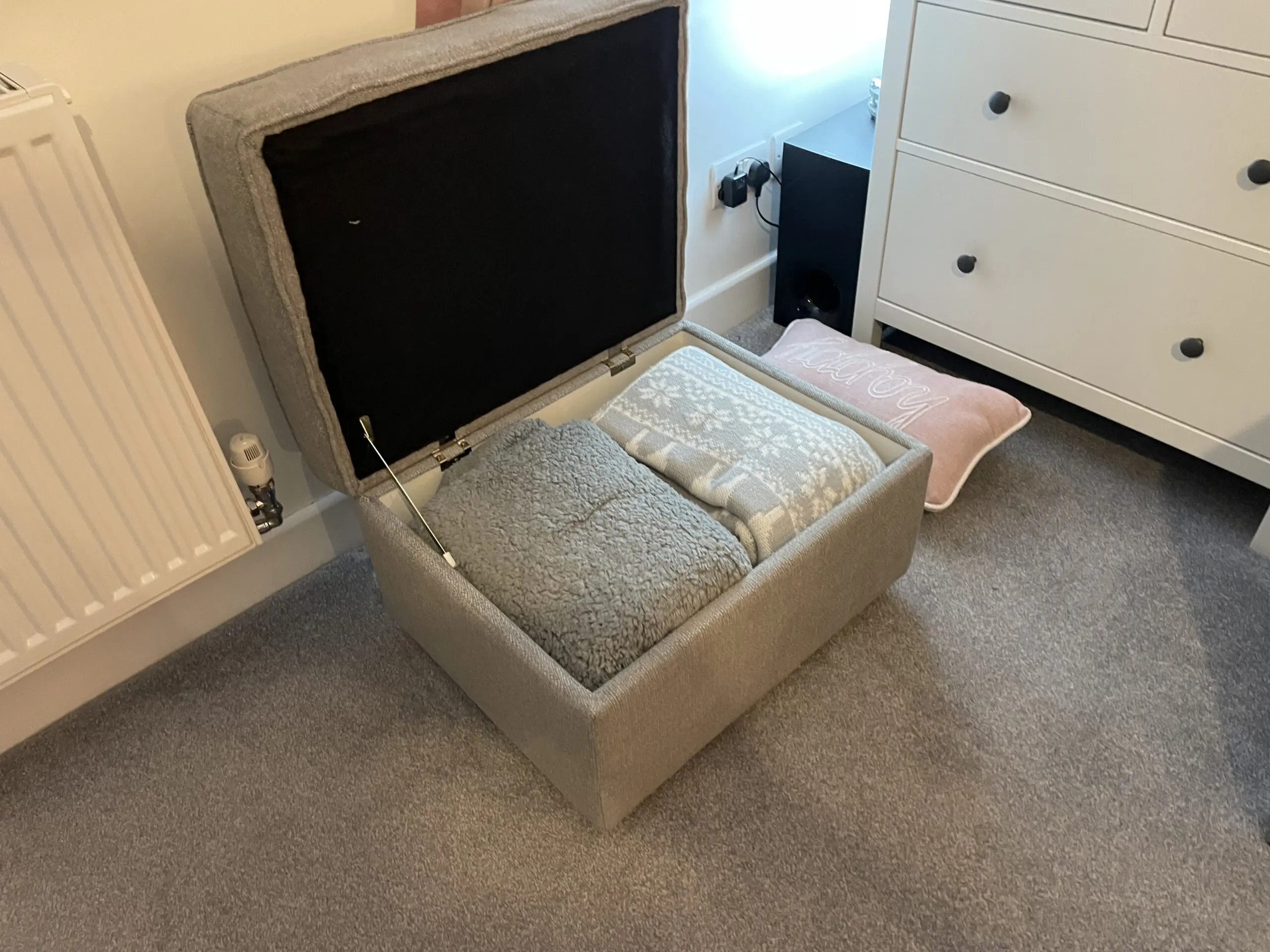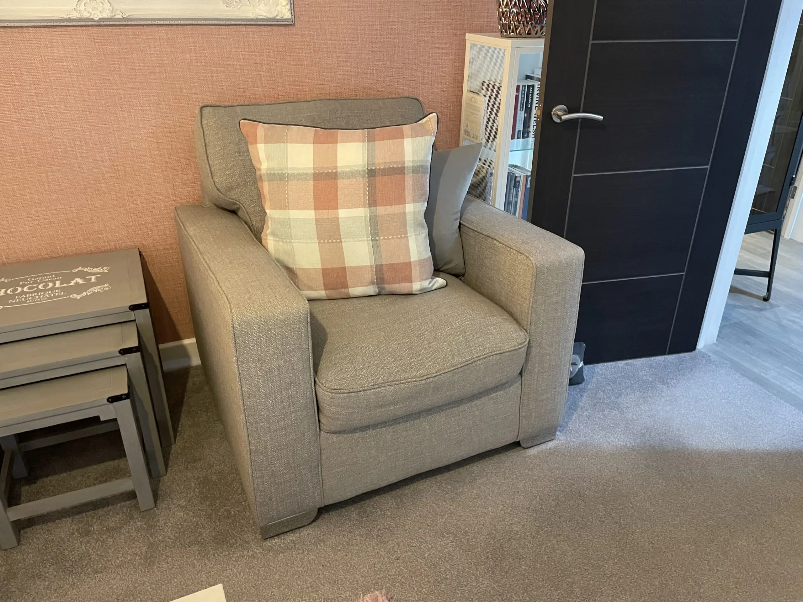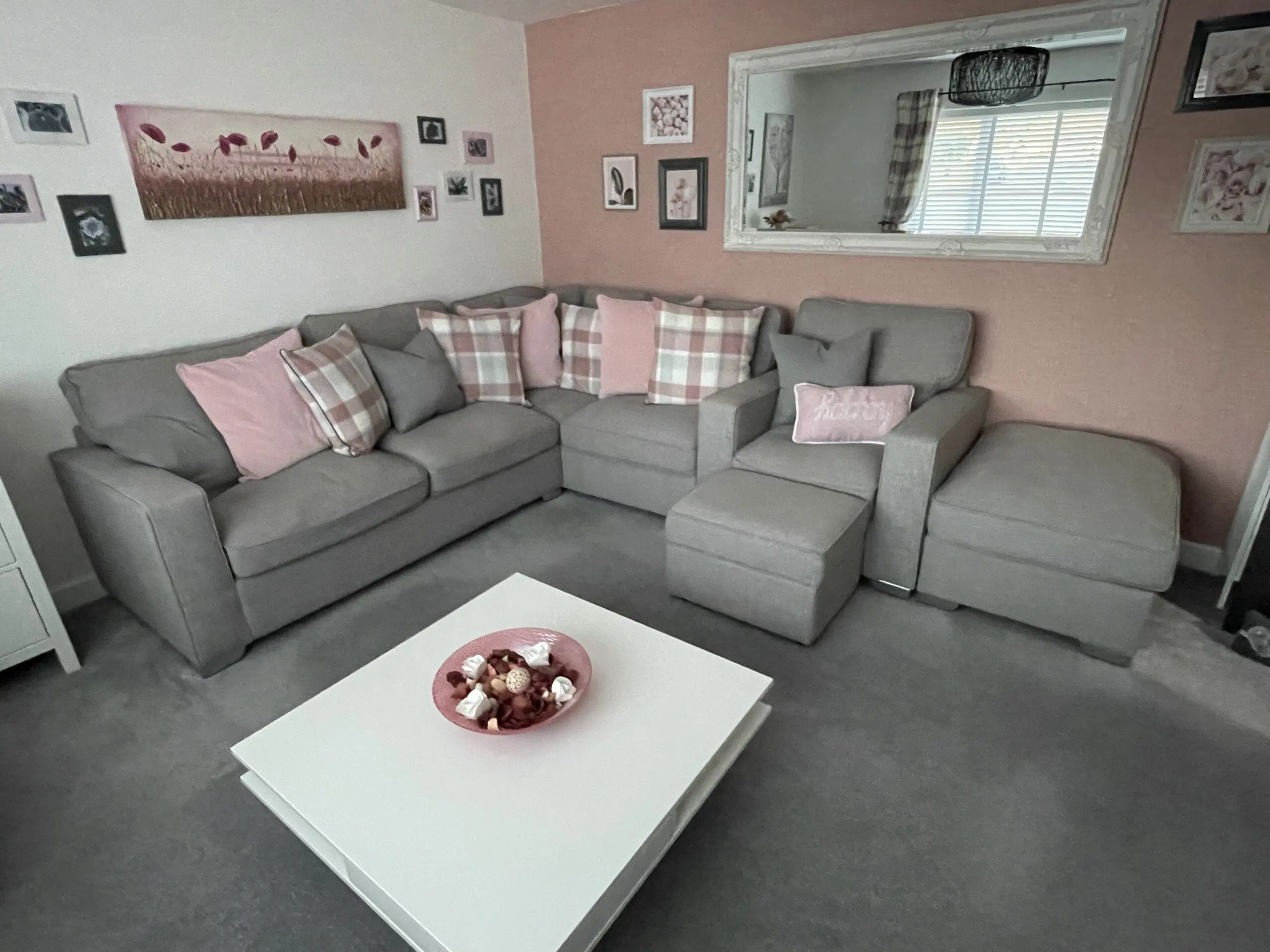 Right hand corner sofa, chair, storage footstool and banquette.