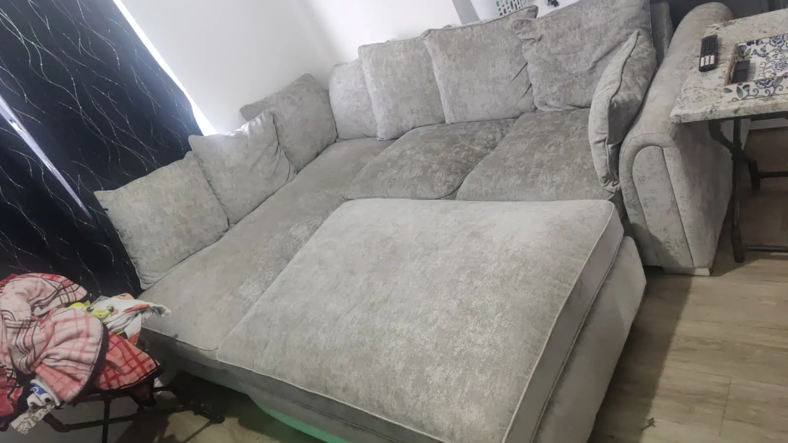 Grey corner sofa with a detachable ottoman