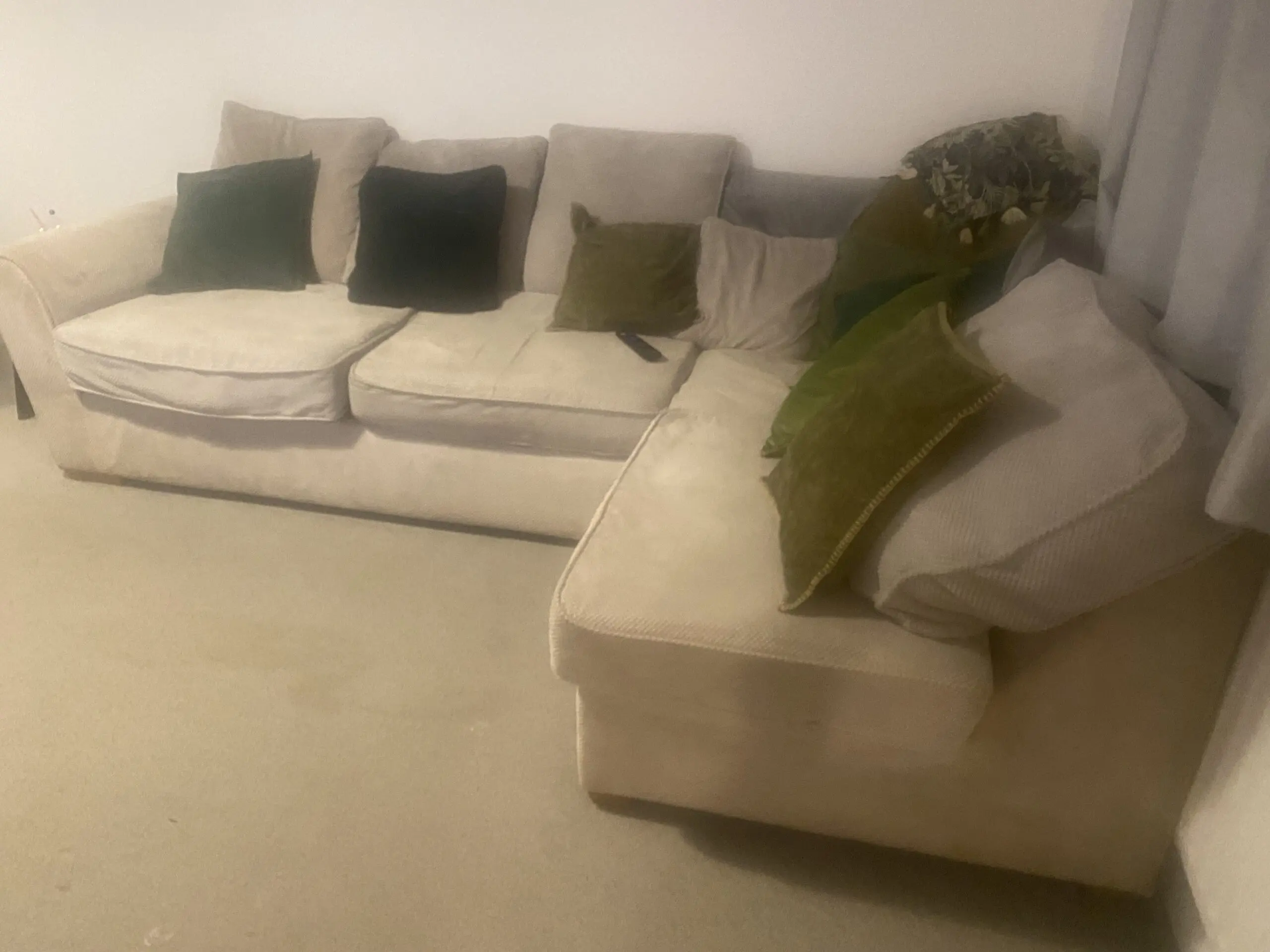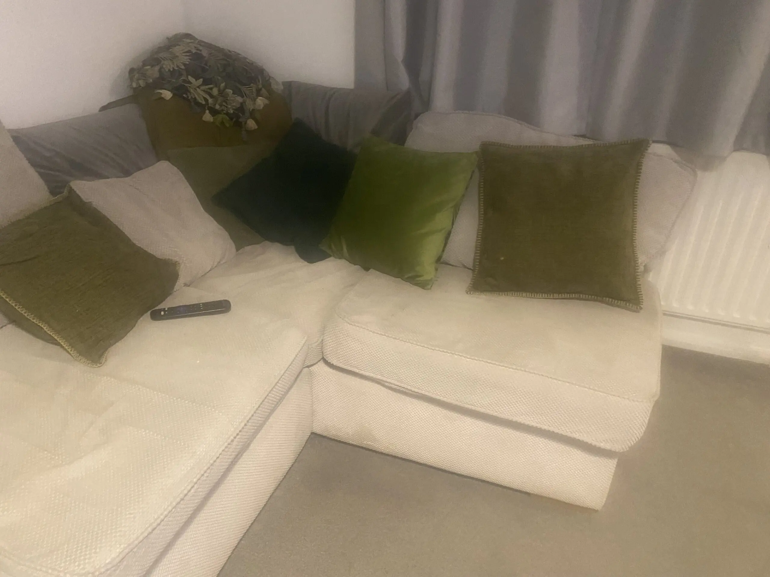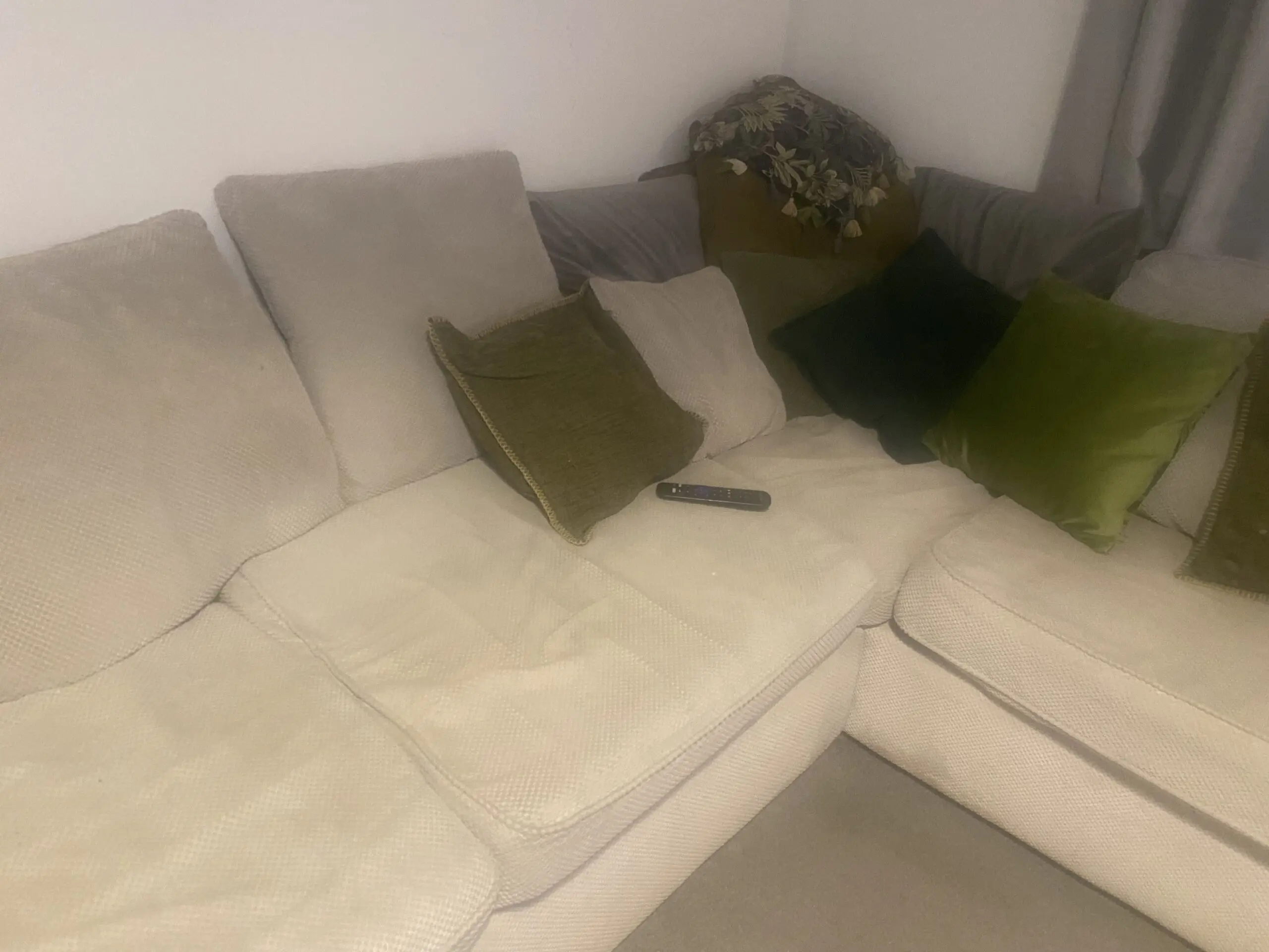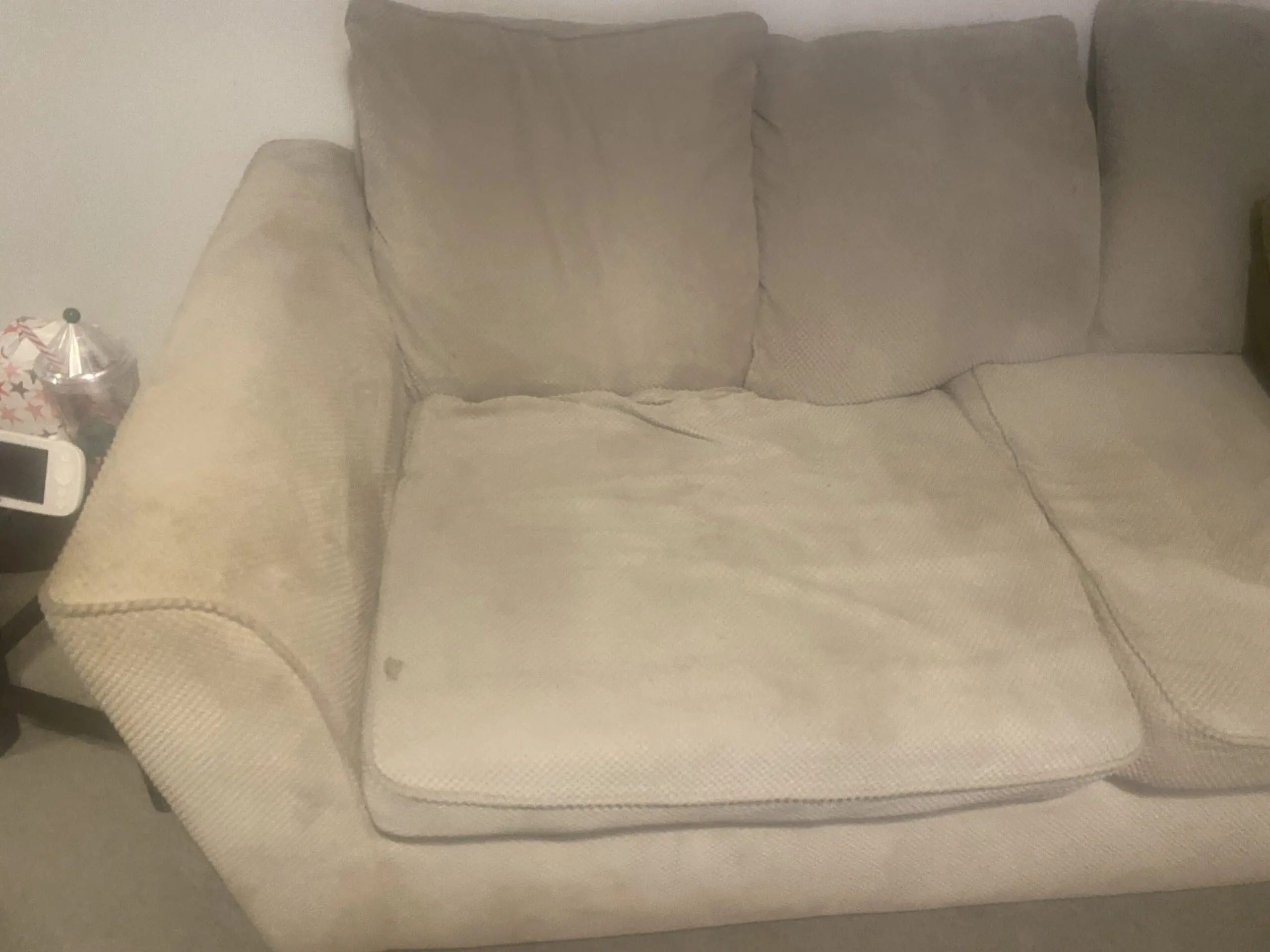 It is not in perfect condition as we have a dog and toddler – so could do with a clean but an excellent sofa for the e price! Plenty of life left in it and very comfy.