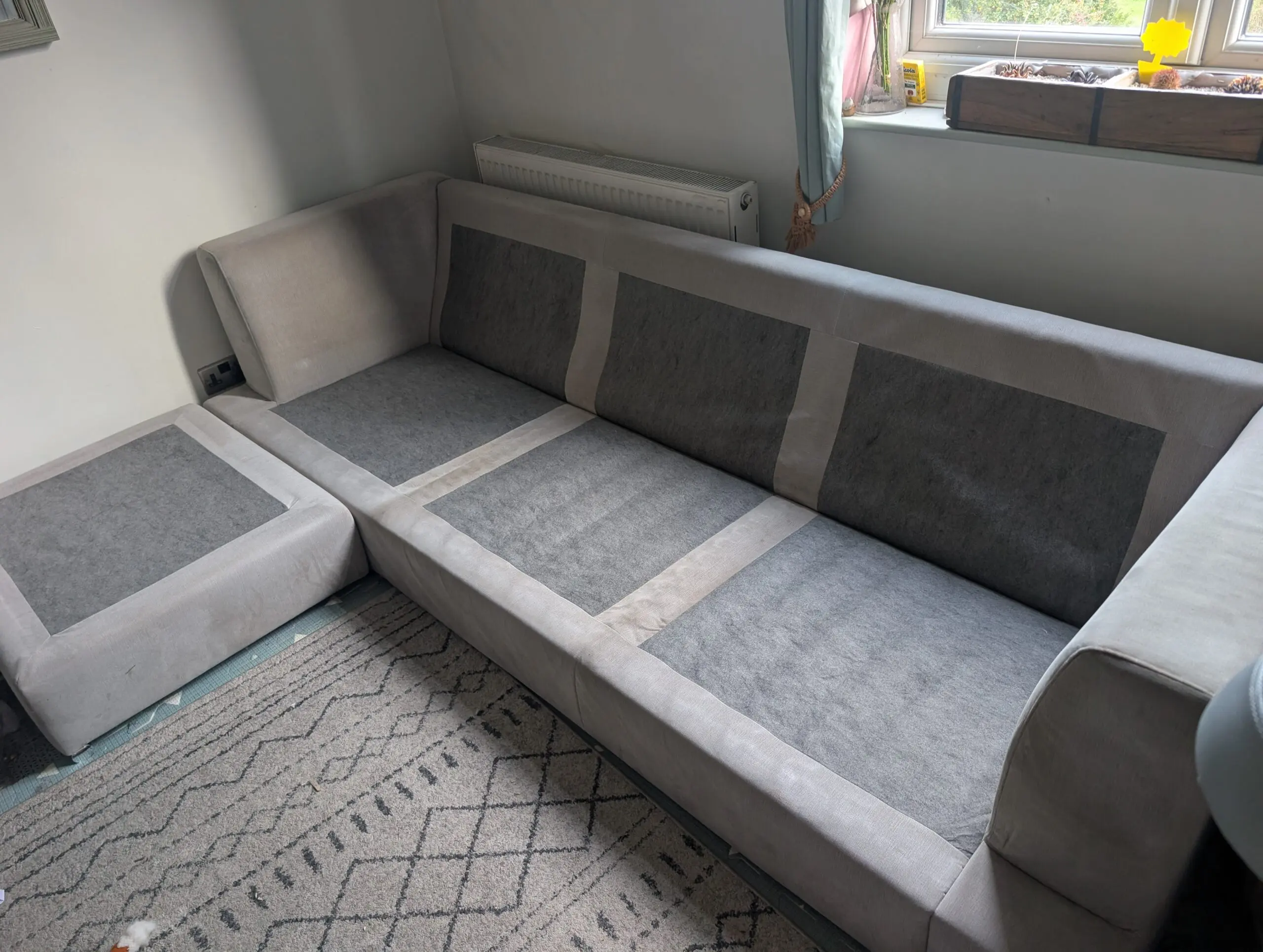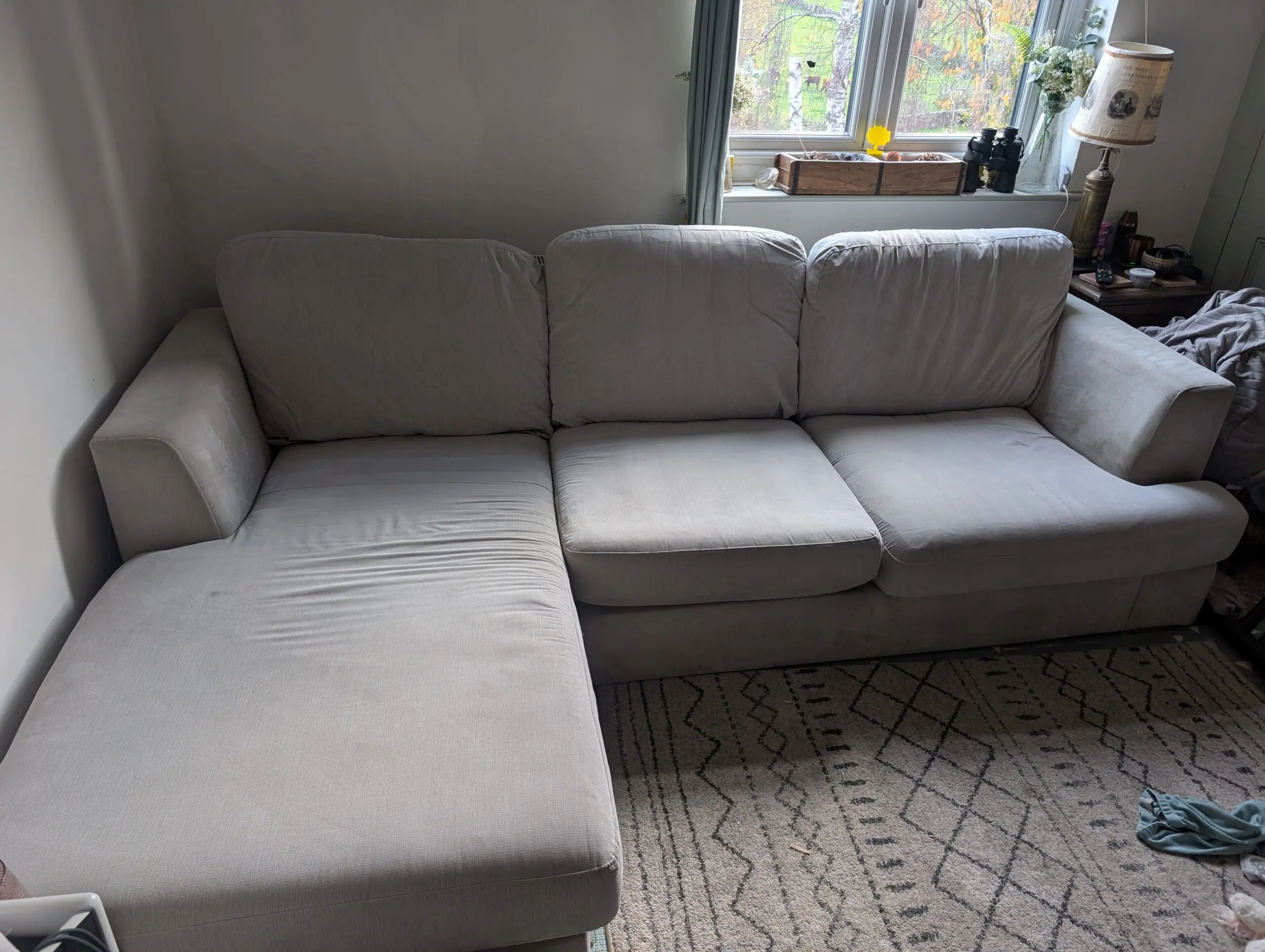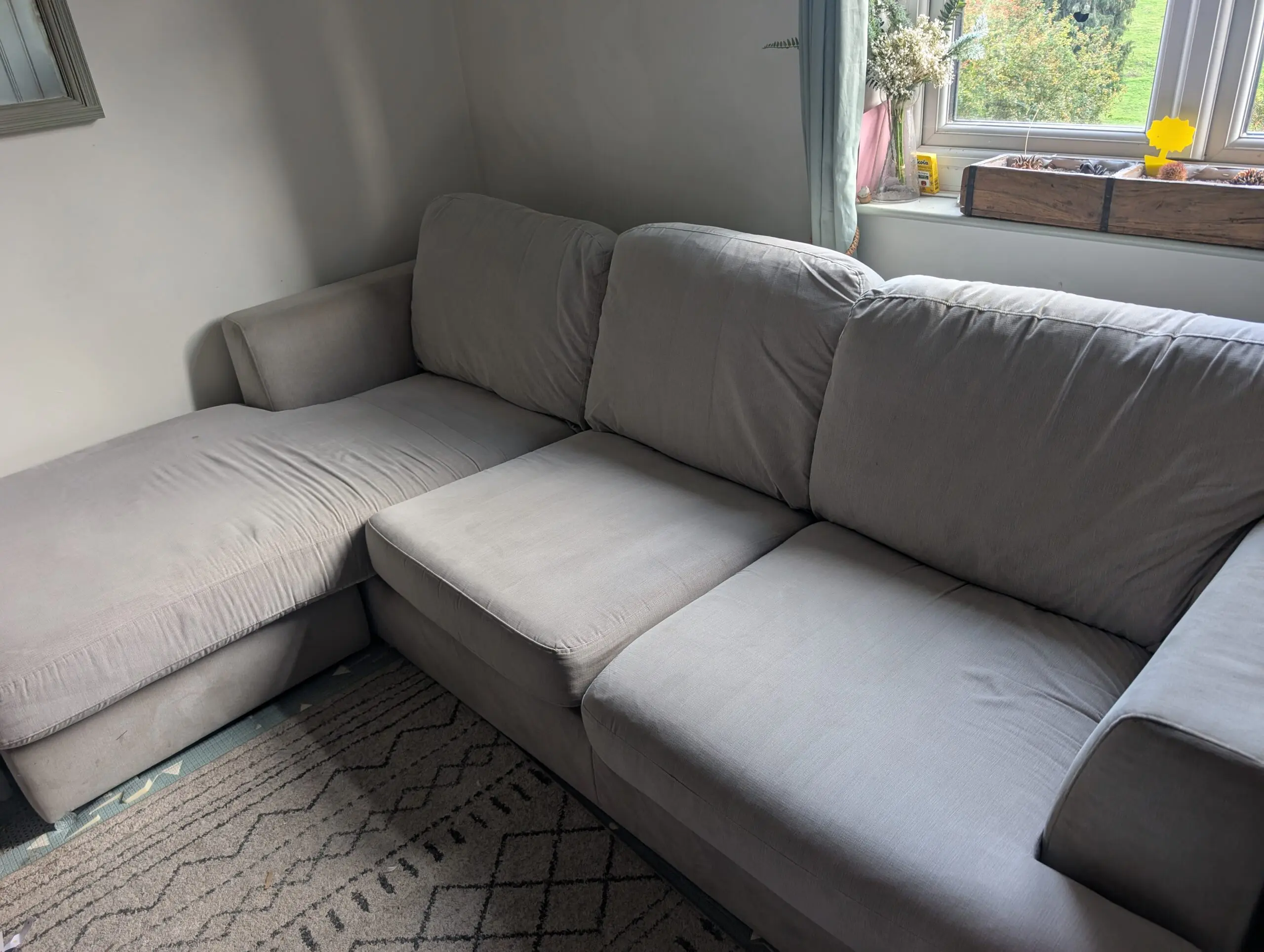 Lovely sofa, good condition. Reluctant sale as really comfy. Chaise can be moved to either side.