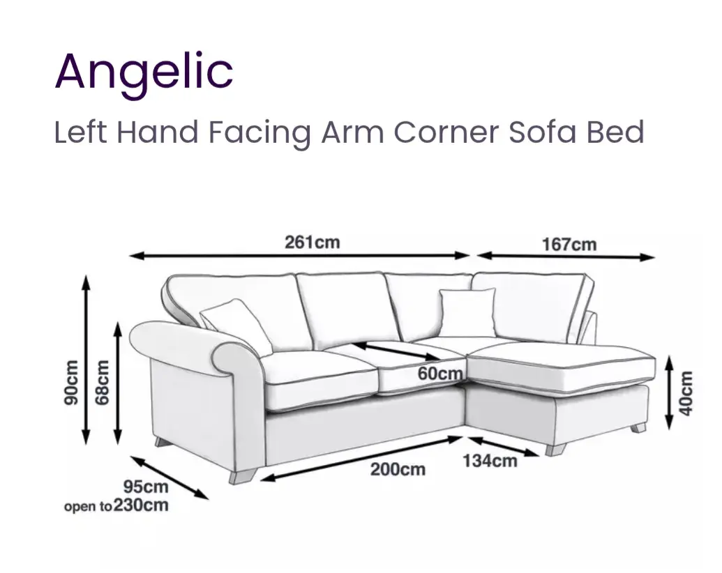 Grey lefthand corner sofa with sofa bed 261lengh,167wigth. 90 highsofa bed pulls out to 230on right hand side from DFSw7