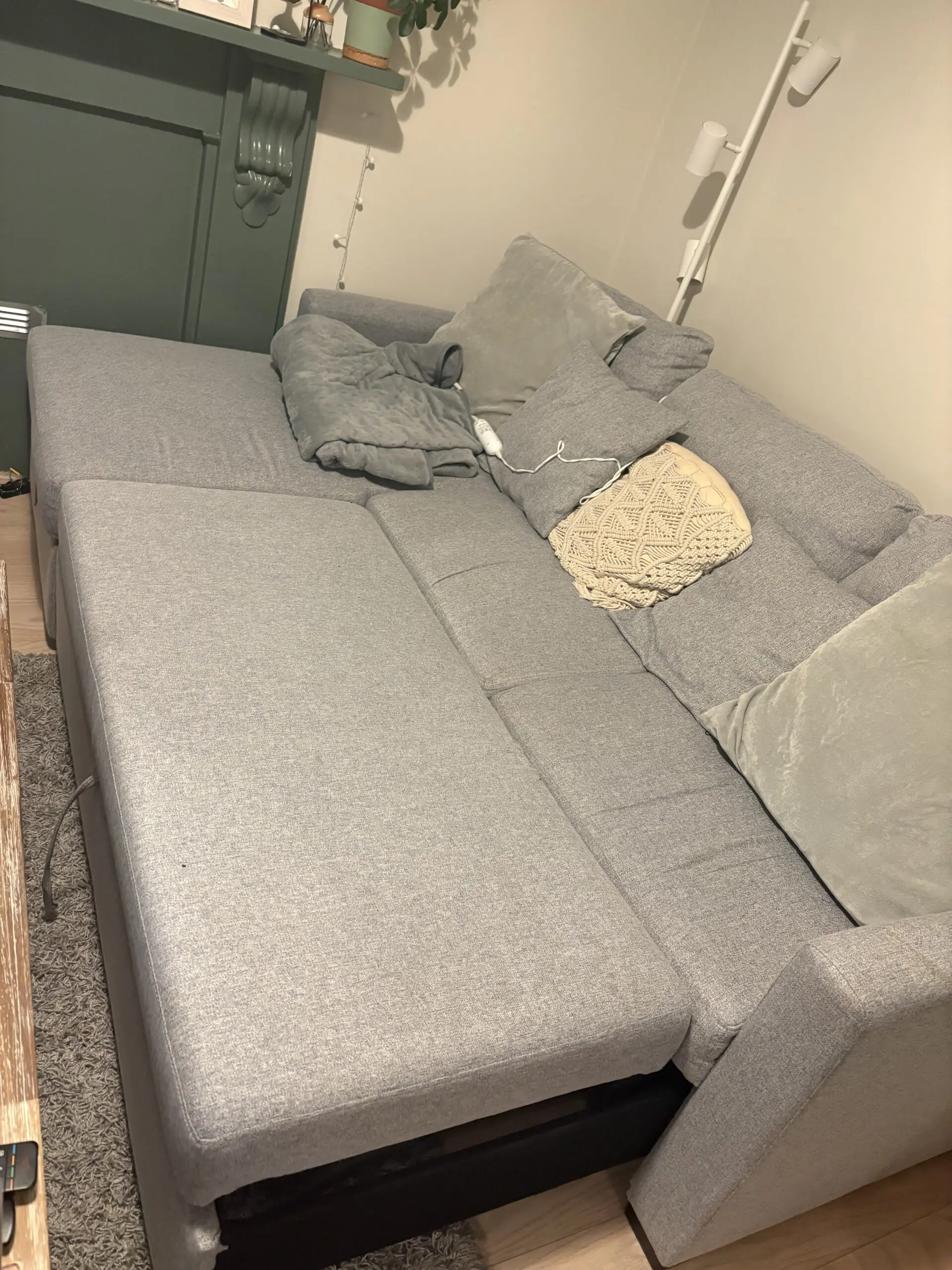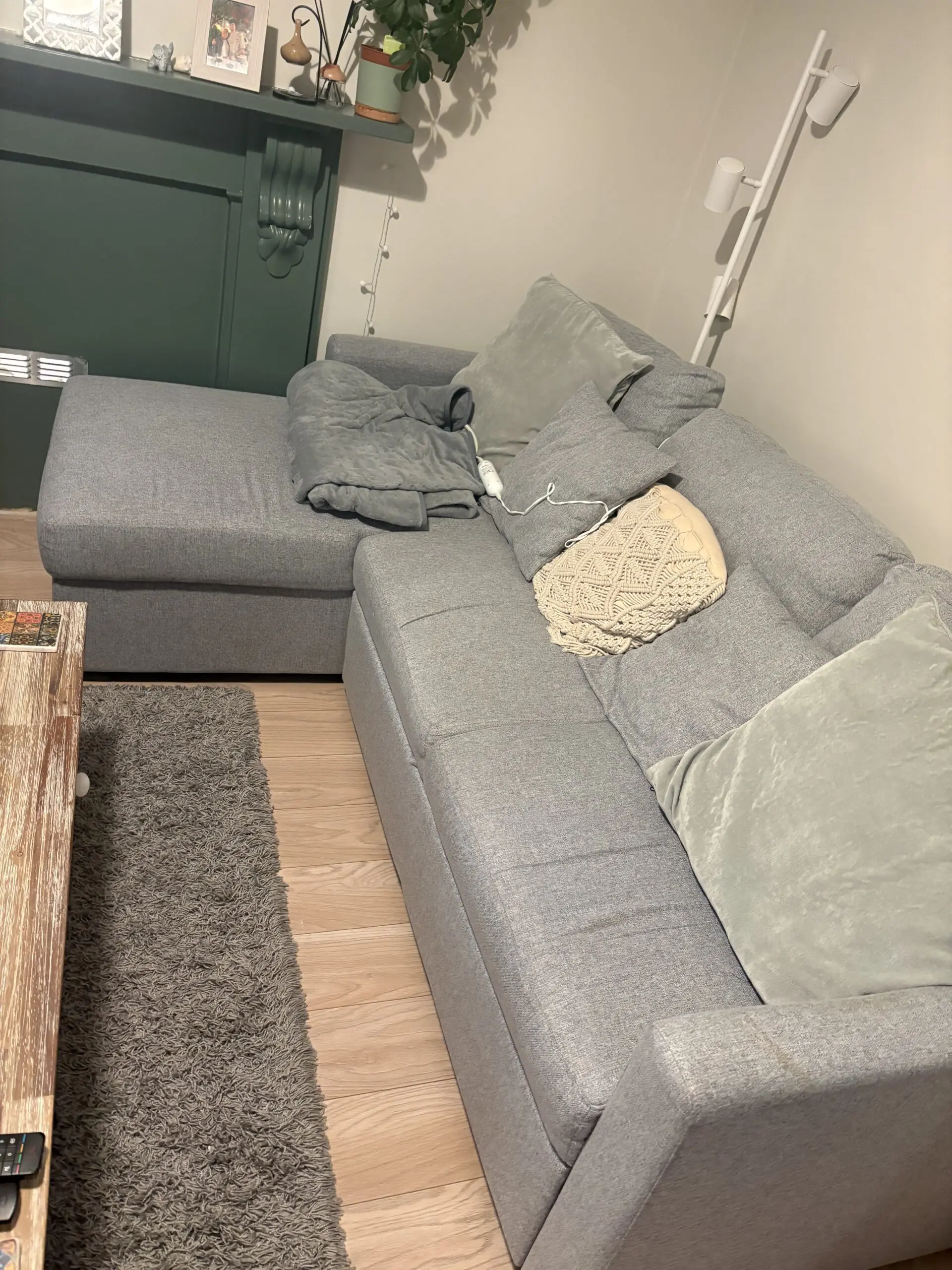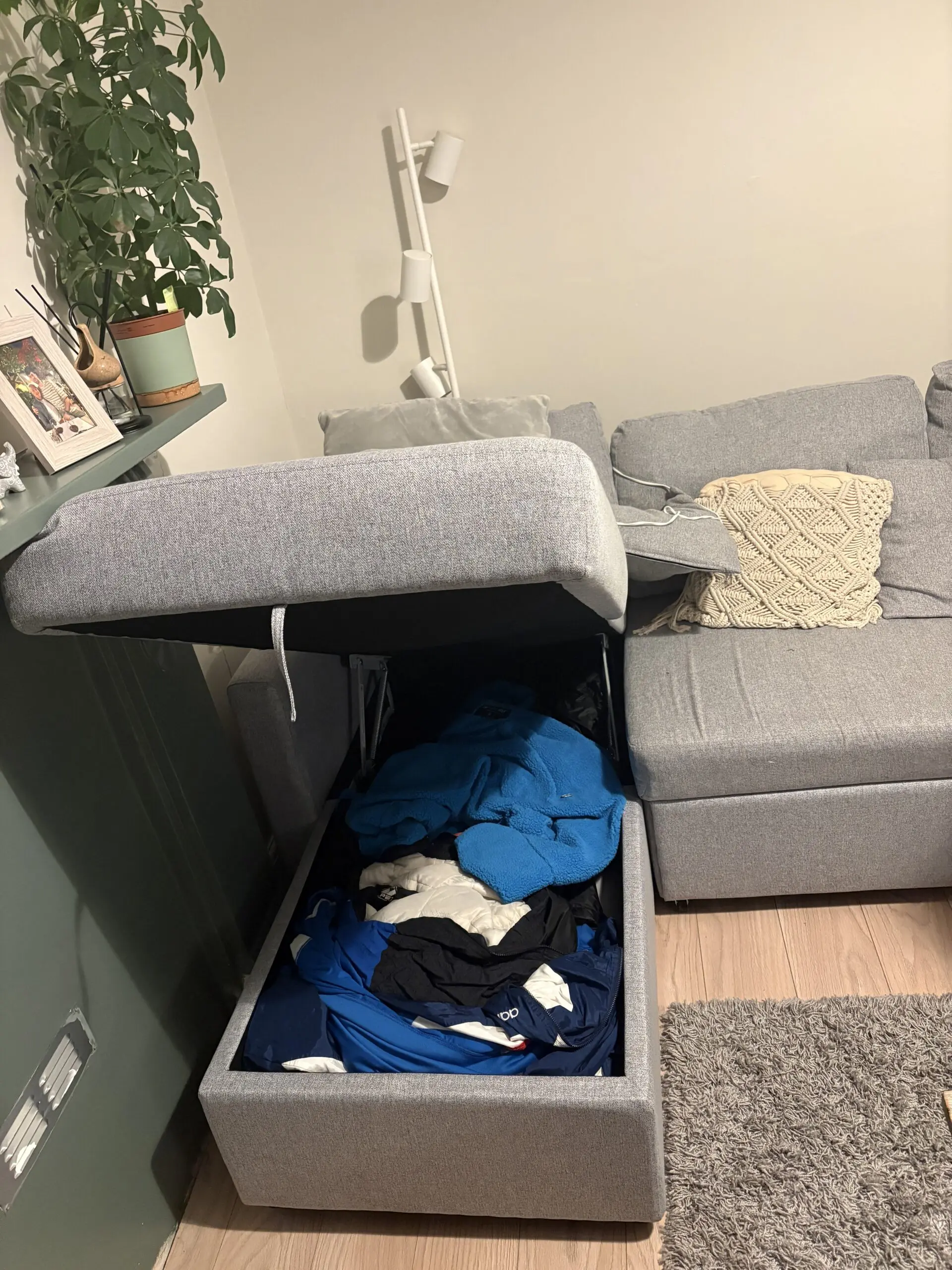 Grey storage left corner sofa.