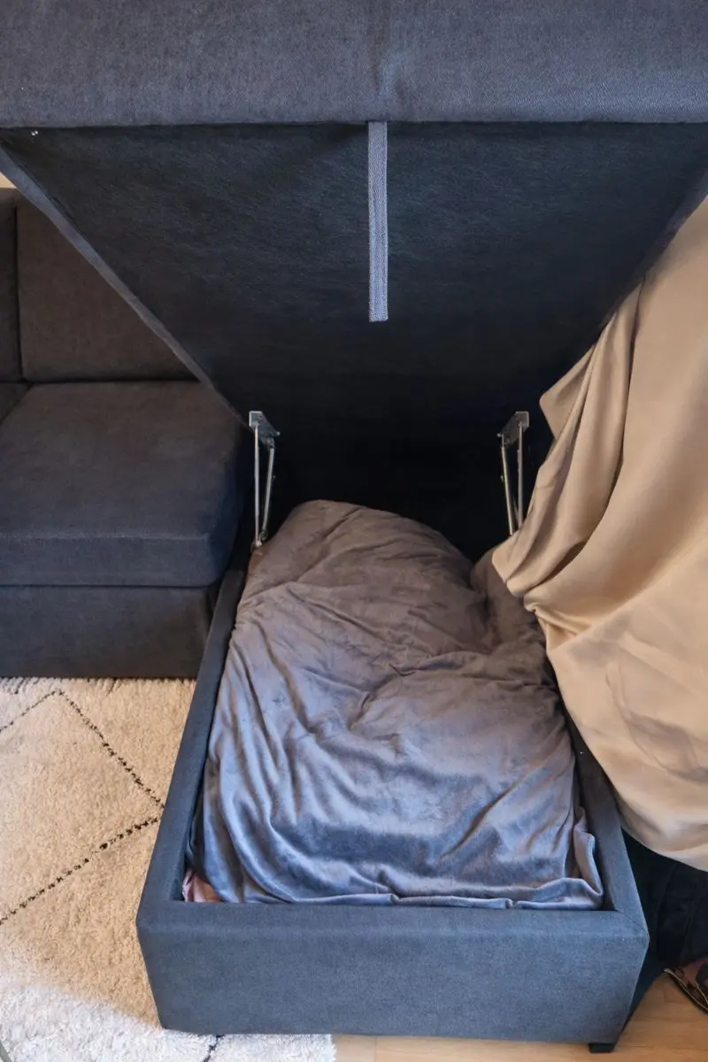 It comes complete with scatter cushions and opens out easily when you have guests to stay. Then simply lift the chaise end to reveal hidden storage space to tuck away blankets, bedding or any living room clutter you want out of sight.