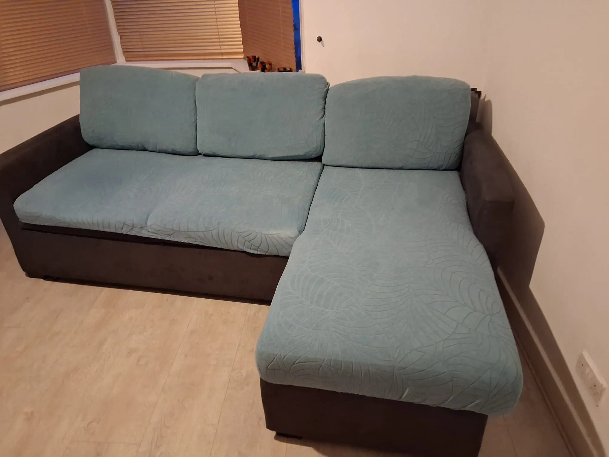 Bought new 2020, RRP £700. Comes with or without teal sofacovers (bought seperately).