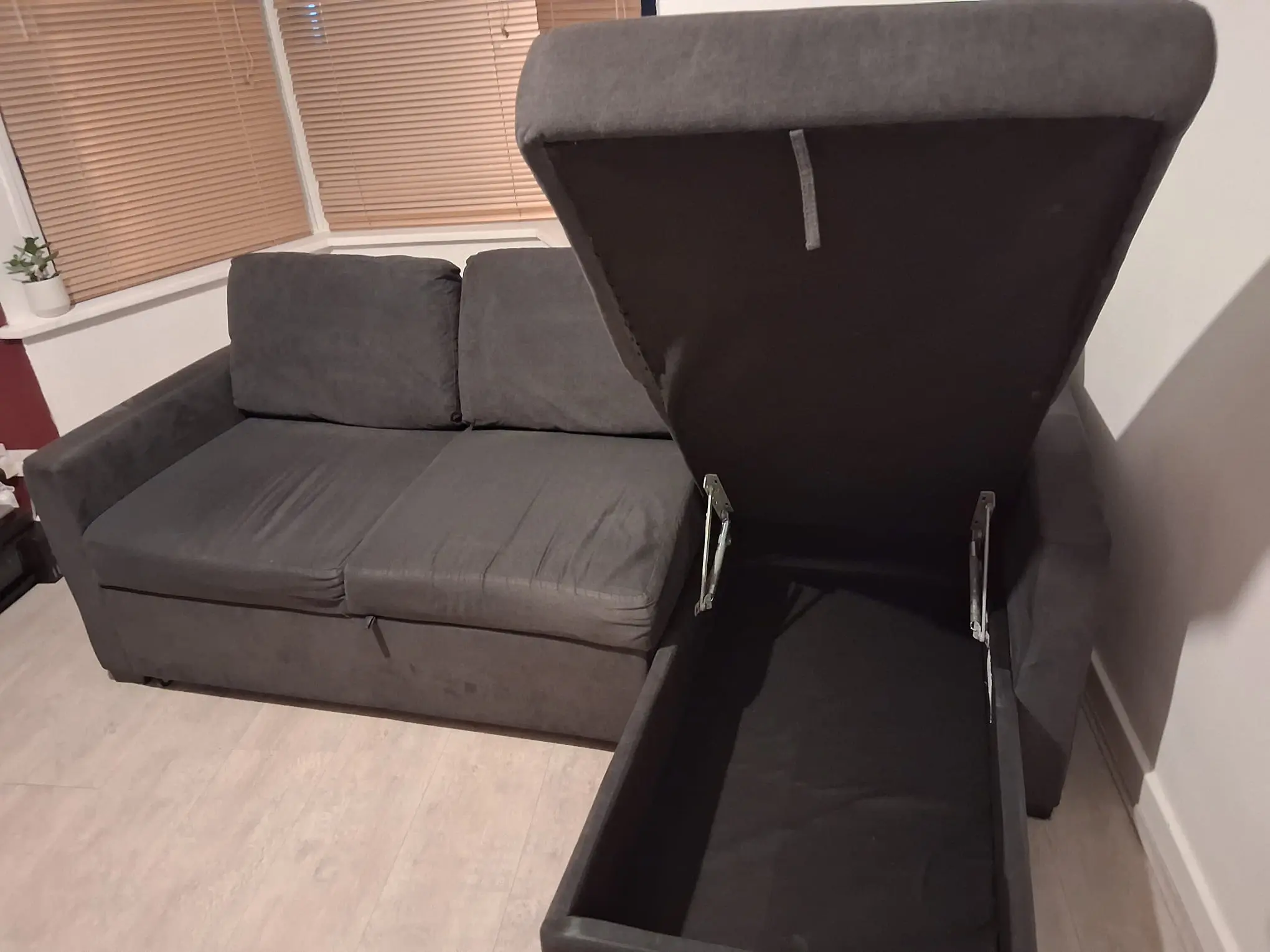 Helpful storage, and extends into sofabed.