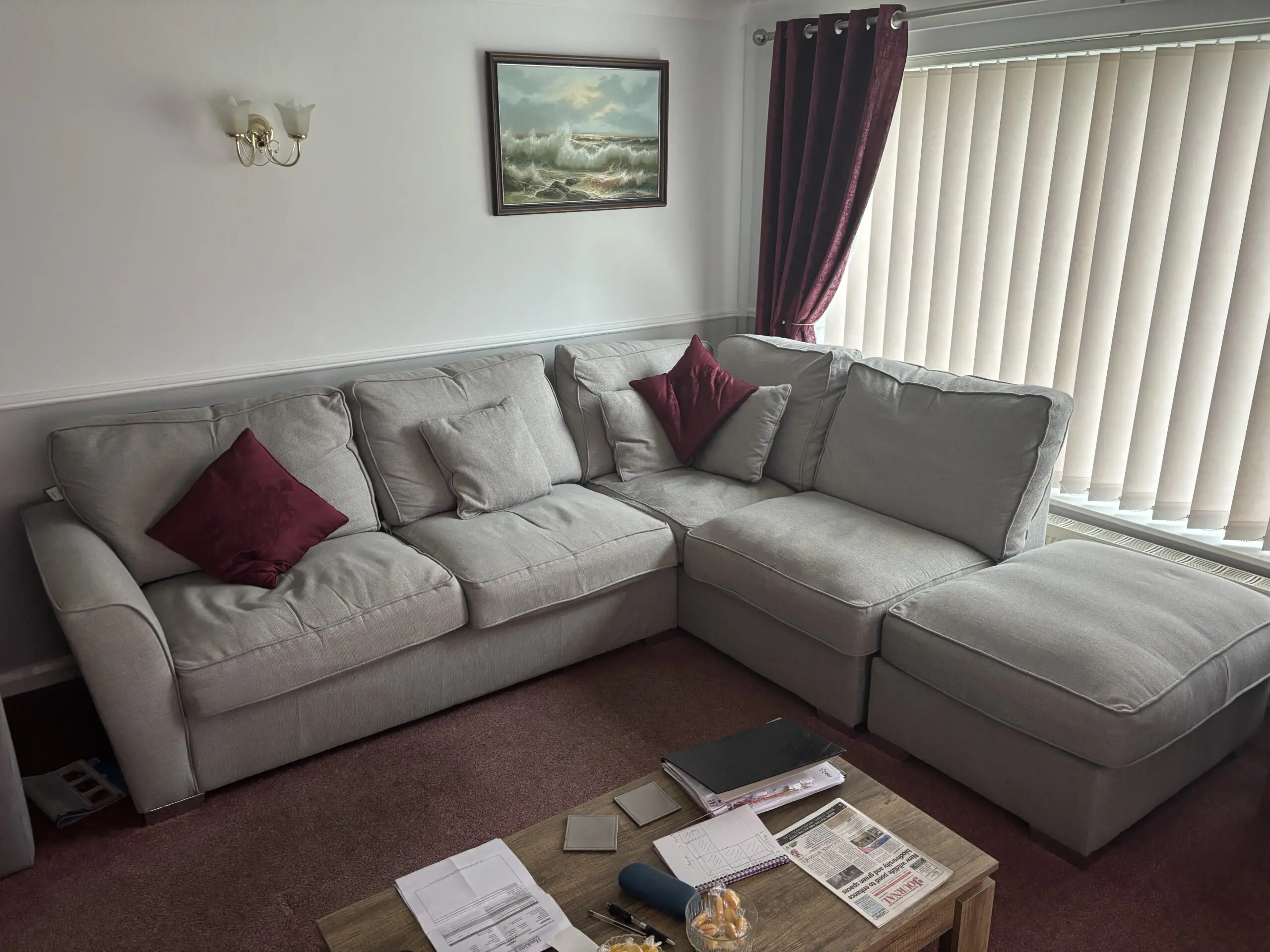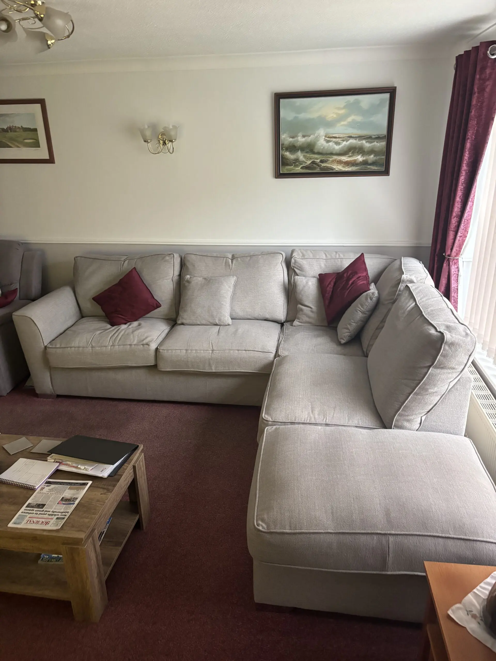 Corner unit 4 years old, staingard protected at purchase, non smoking household only selling due to mov