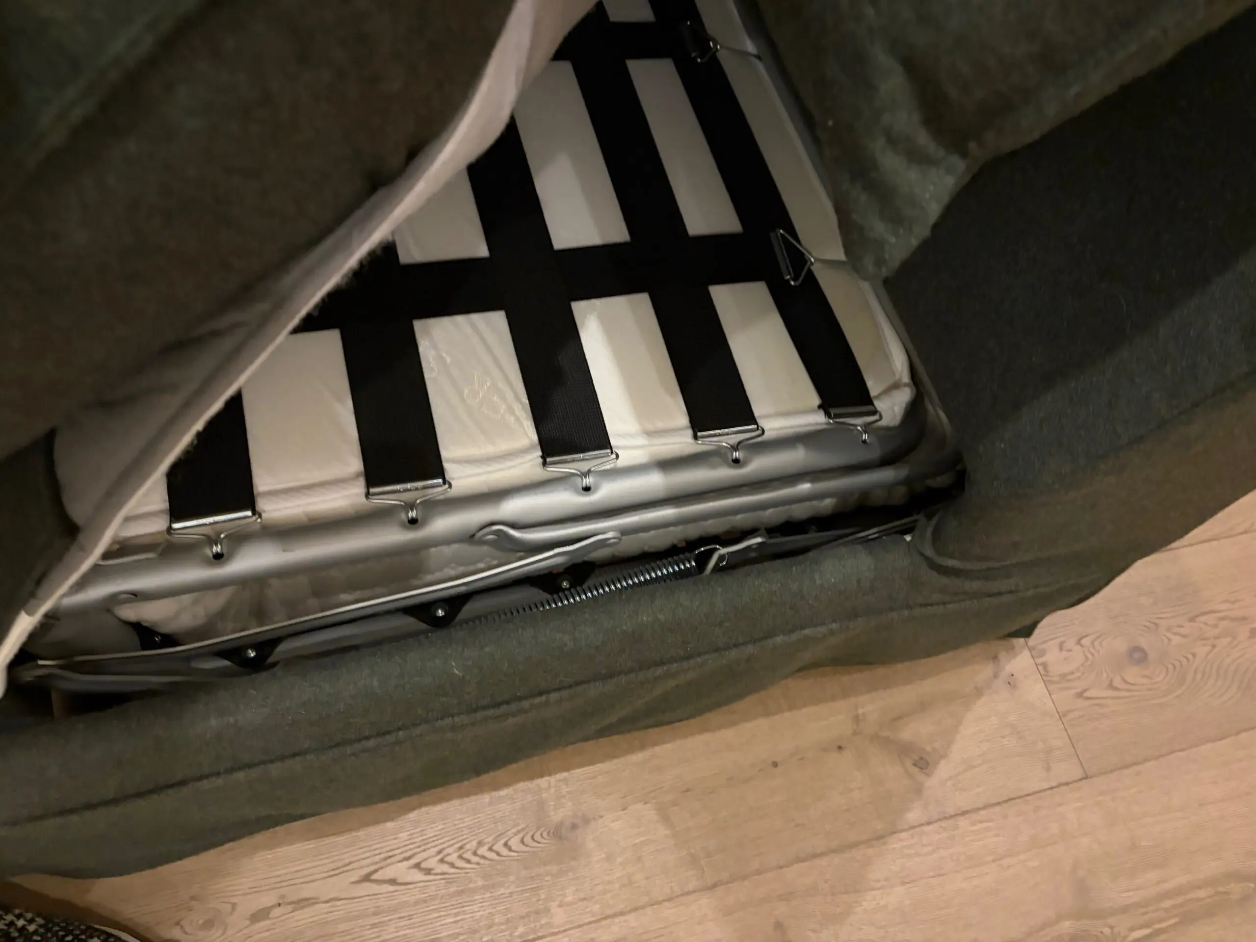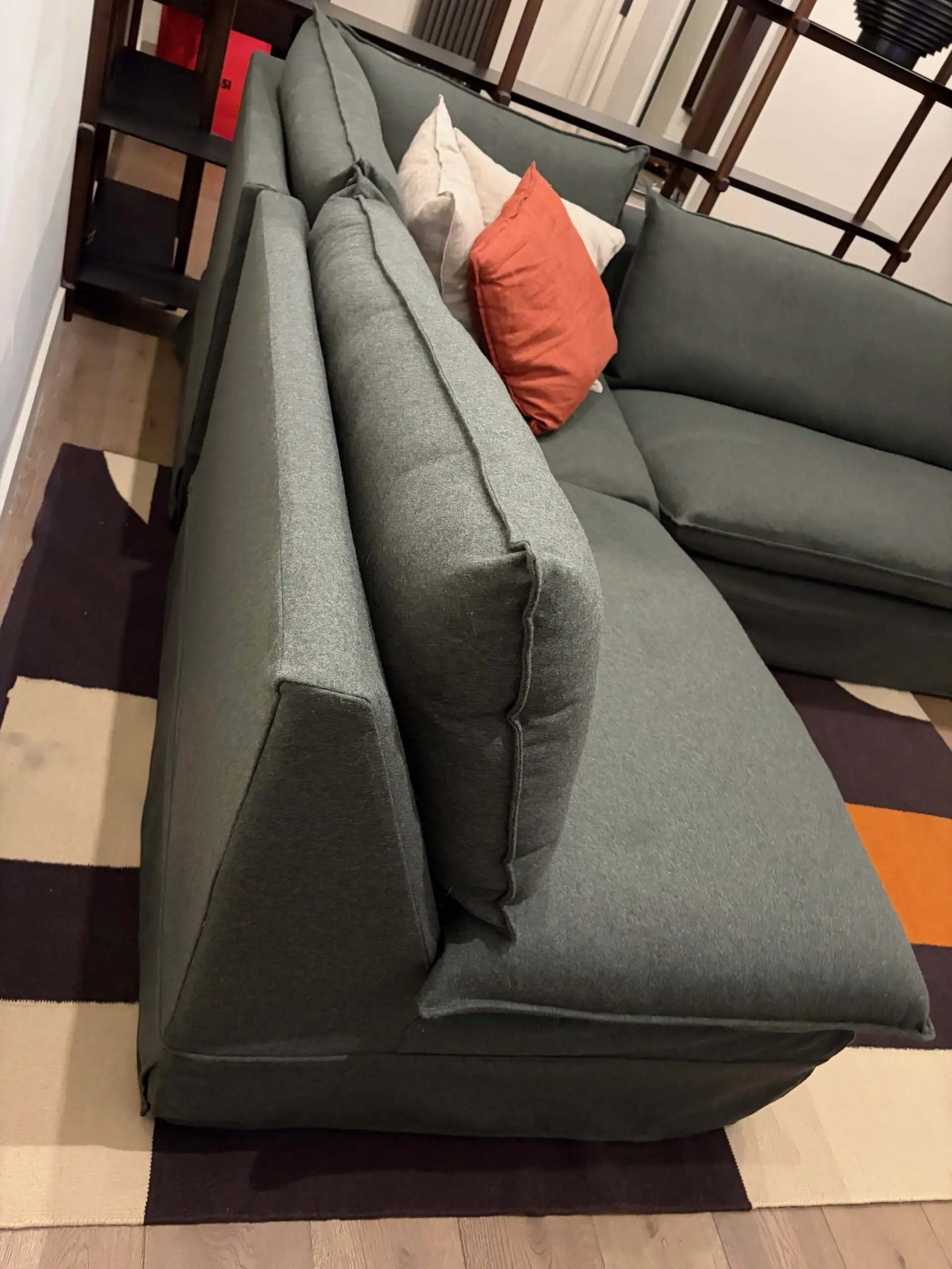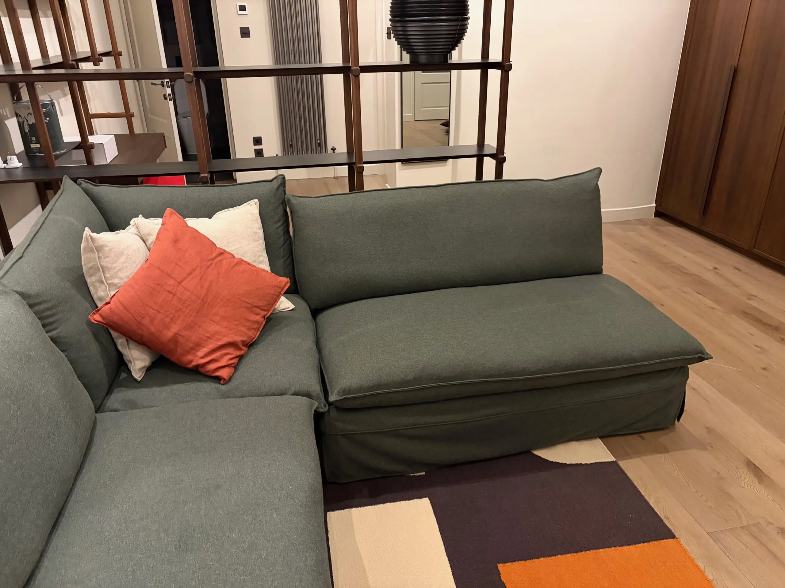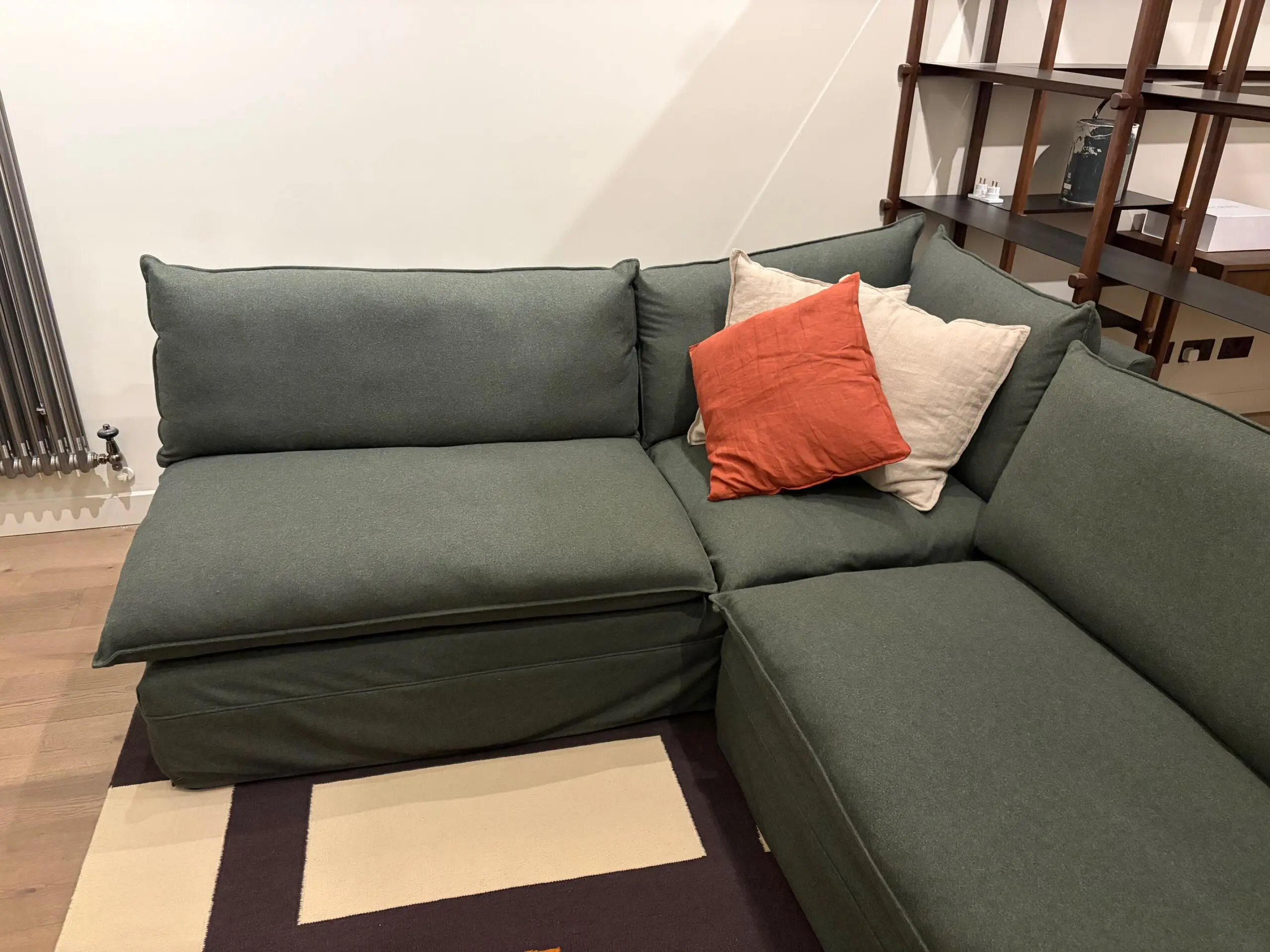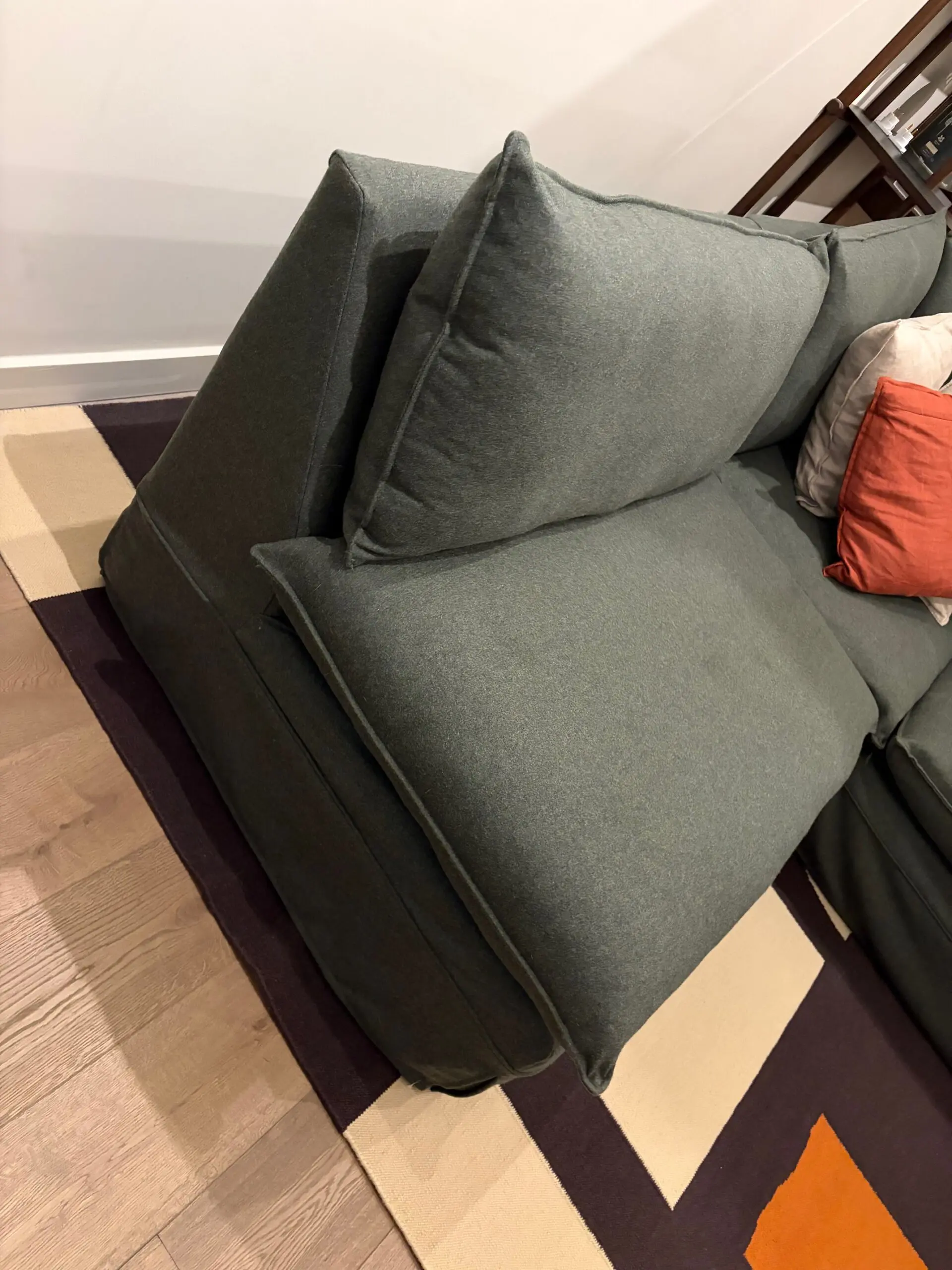 Hay designer felt – super cozy corner / sleeper sofa with full size fold out bed in one section. Modular and comes in three pieces and in excellent condition after only 2 years of light use. Couch measures 288 cms in each direction as configured in V shape. Comes with cushions in photos if desired.