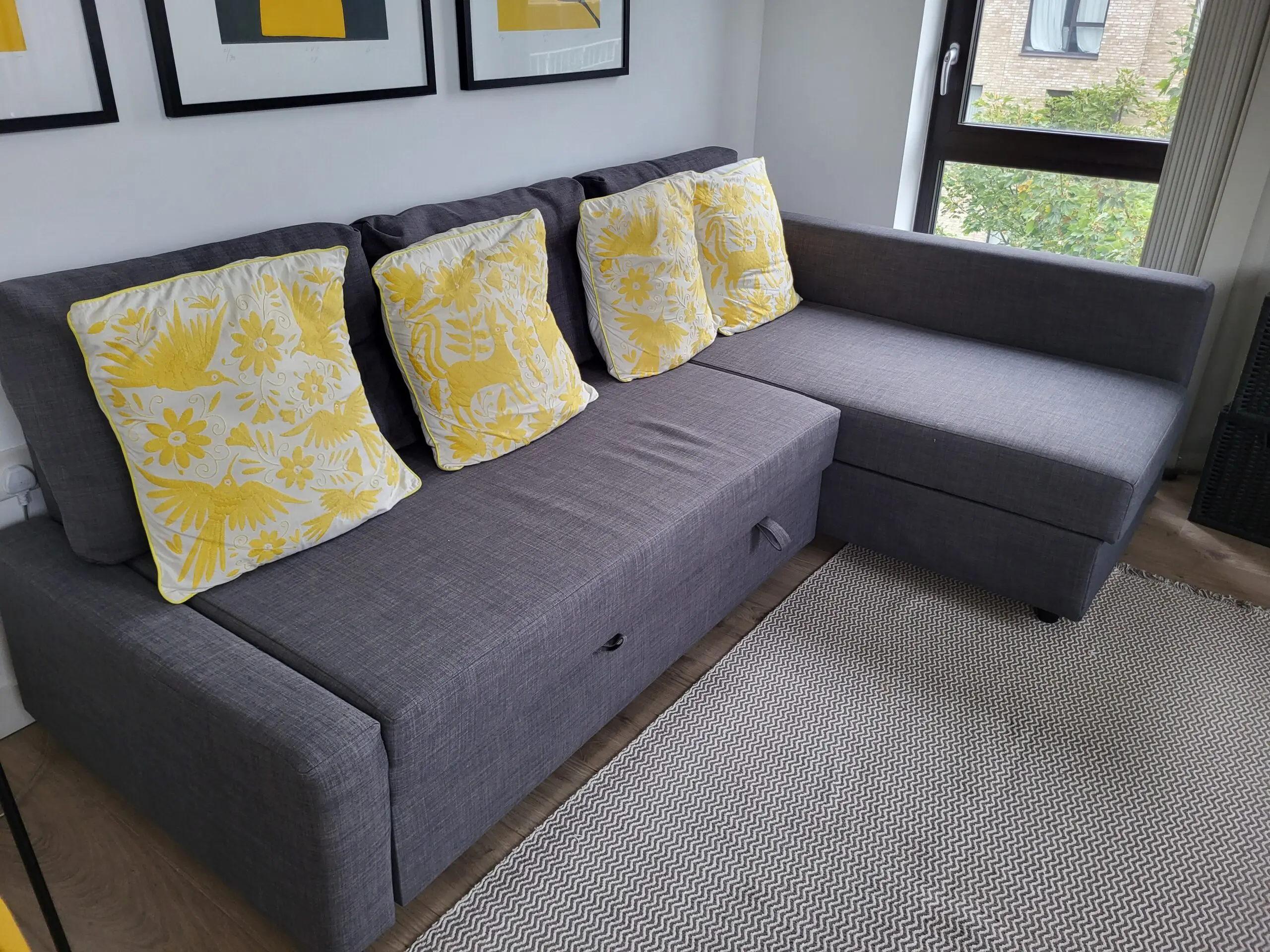 Good condition, we bought it 2 years ago. We don’t have pets or smoke.