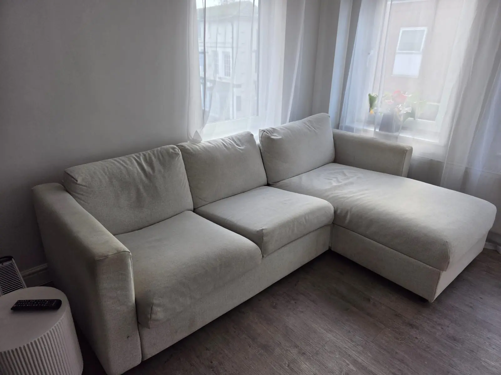 3-seat sofa with chaise longue, with wide armrests. Colour- Gunnared beige