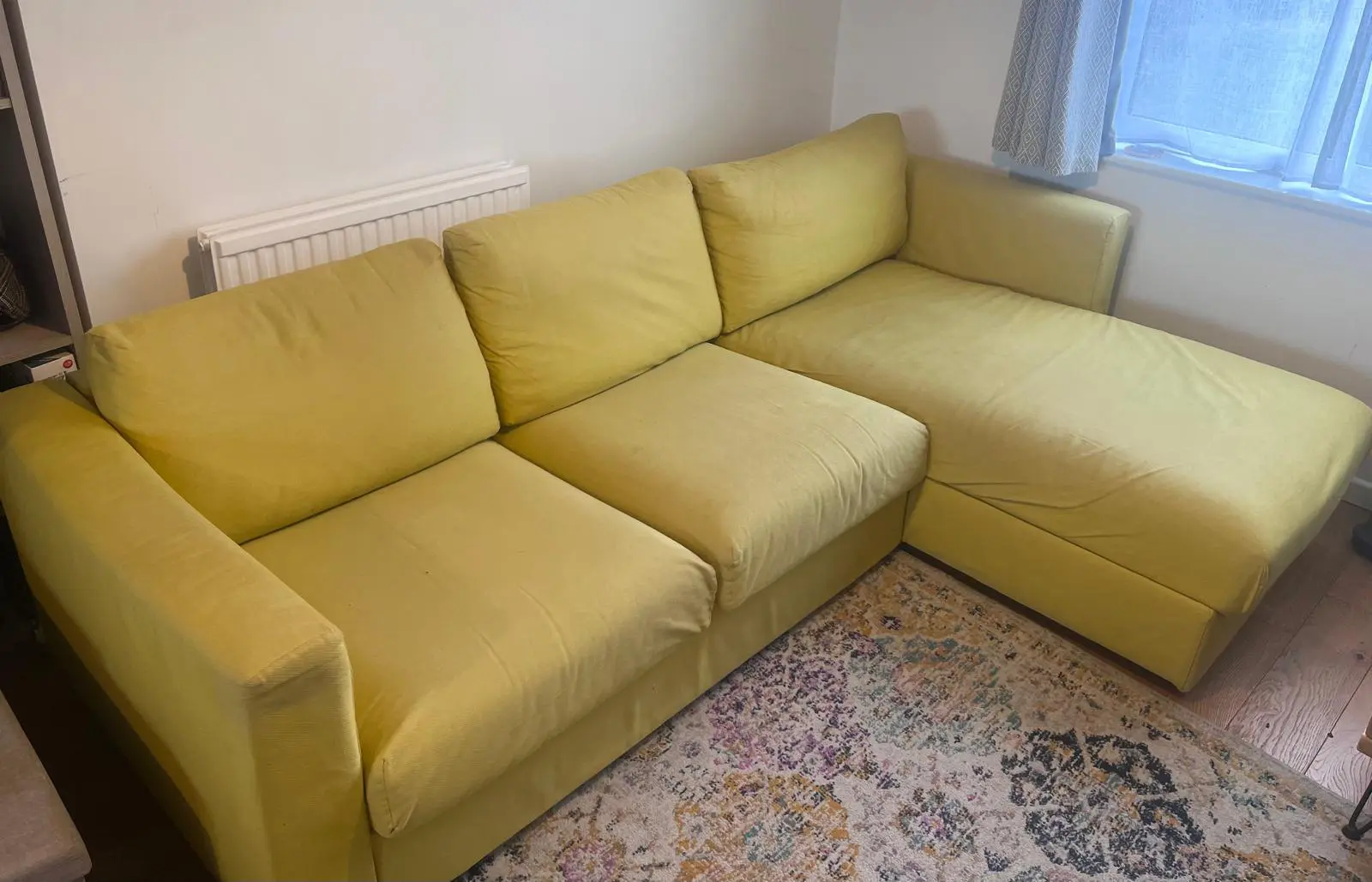 IKEA Vimle yellow sofa with Ottoman section, good used condition.