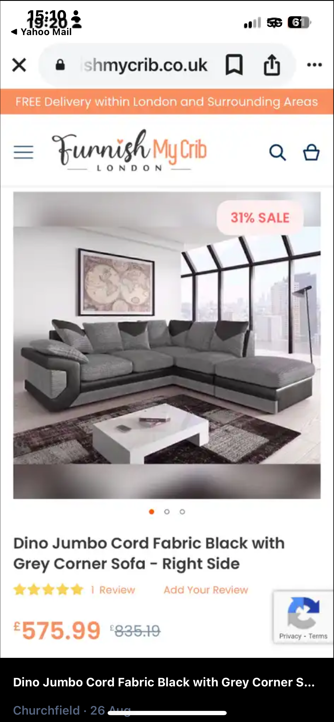 Just had my sofa delivered from Sofalistic. I was slightly nervous but it’s absolutely immaculate, delivery was great and even though it was quite difficult to get through the doors the guys did a great job. The whole experience has been very simple and I would definitely recommend.