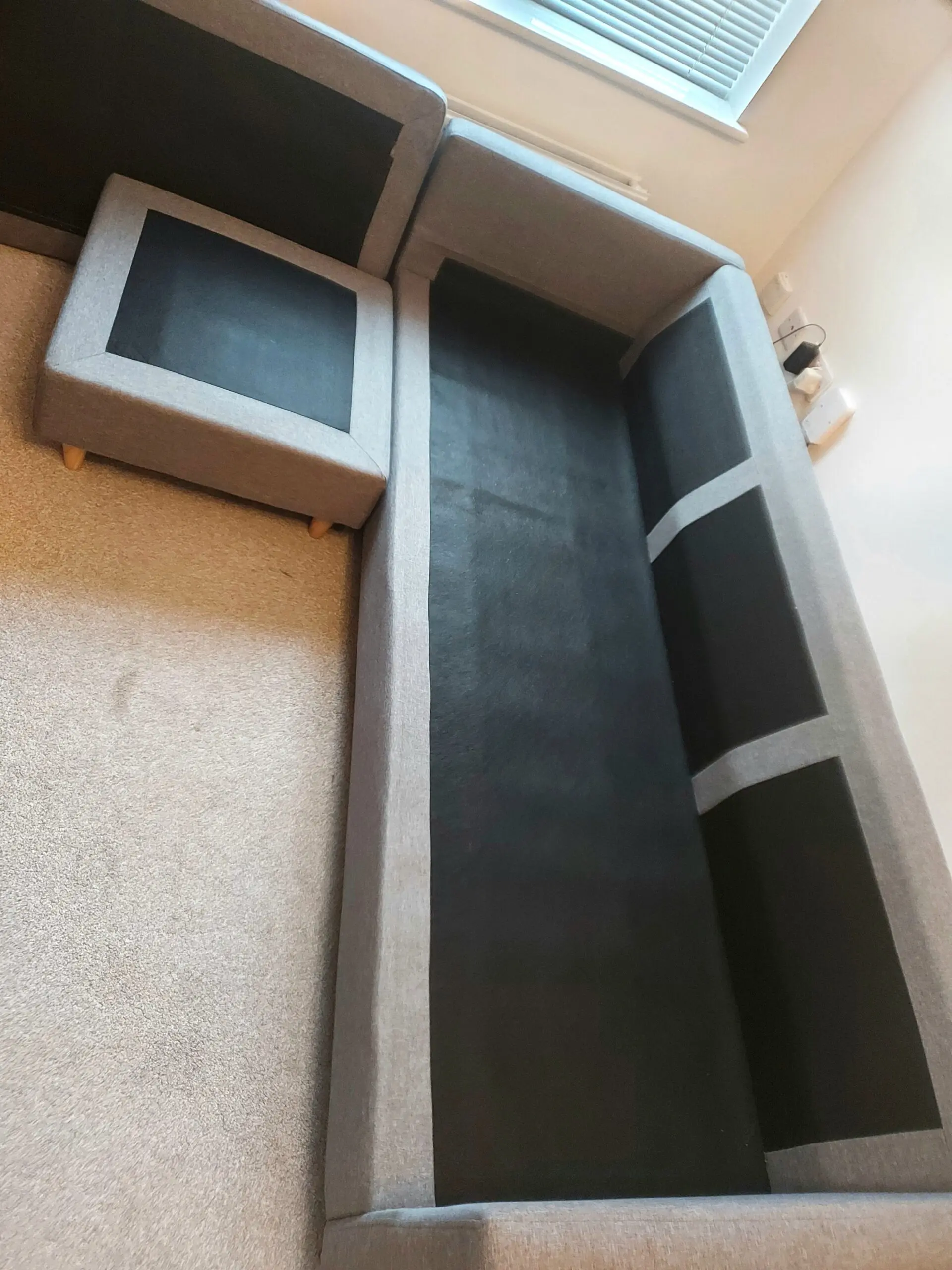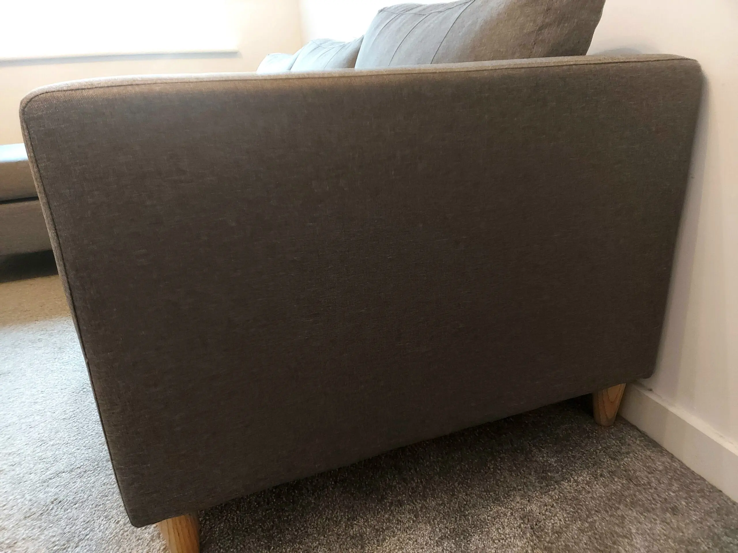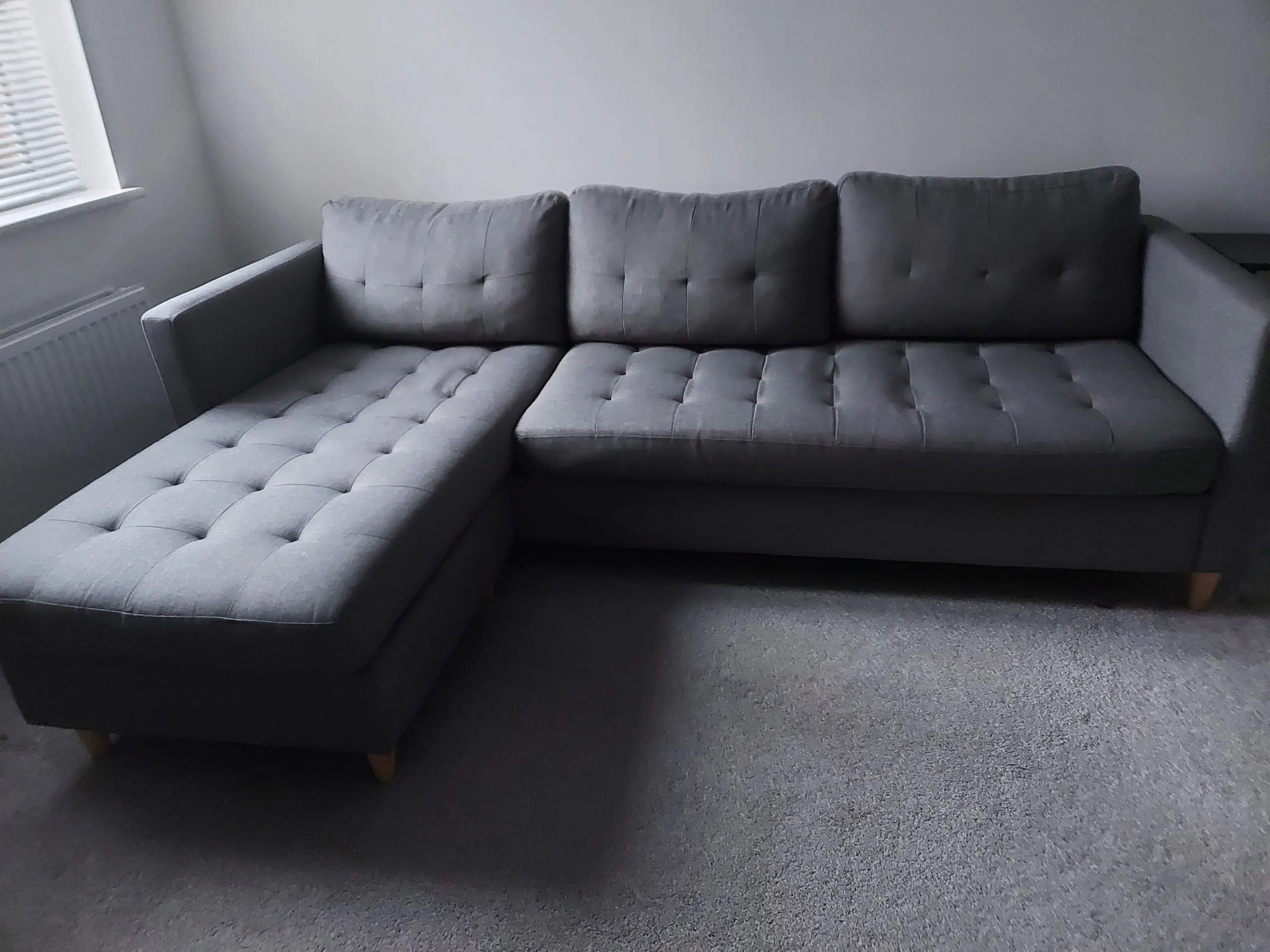 JYSK 3-Seater sofa with chaise longue in fabric. Seat and back cushions in foam. Legs in solid wood. Can be reversed. W217 x H78 x D81/149 cm.