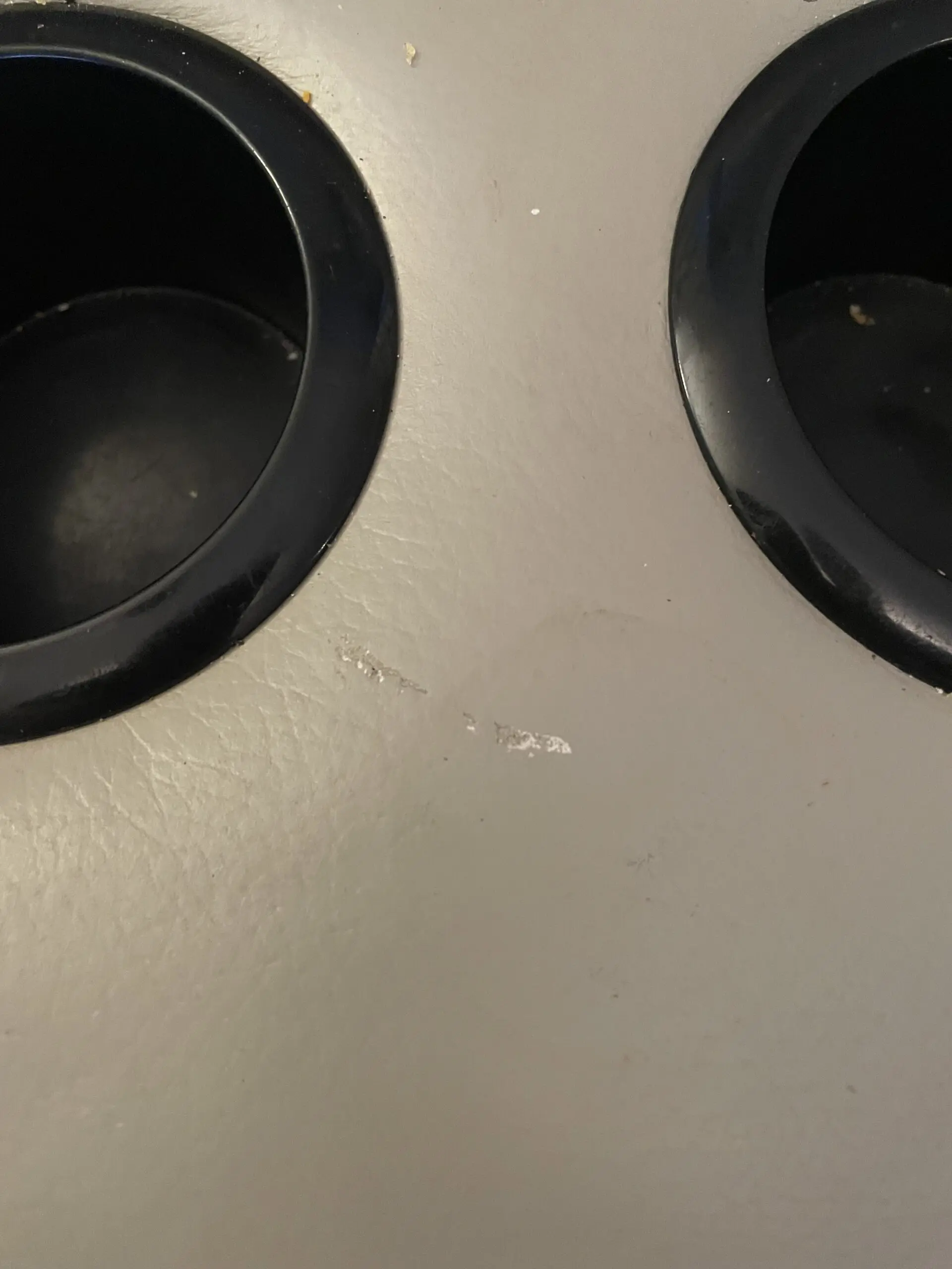 There are a couple of small worn leather patches on the right arm rest of the end recliner and a small scratch mark on the cup holder section about an inch long.