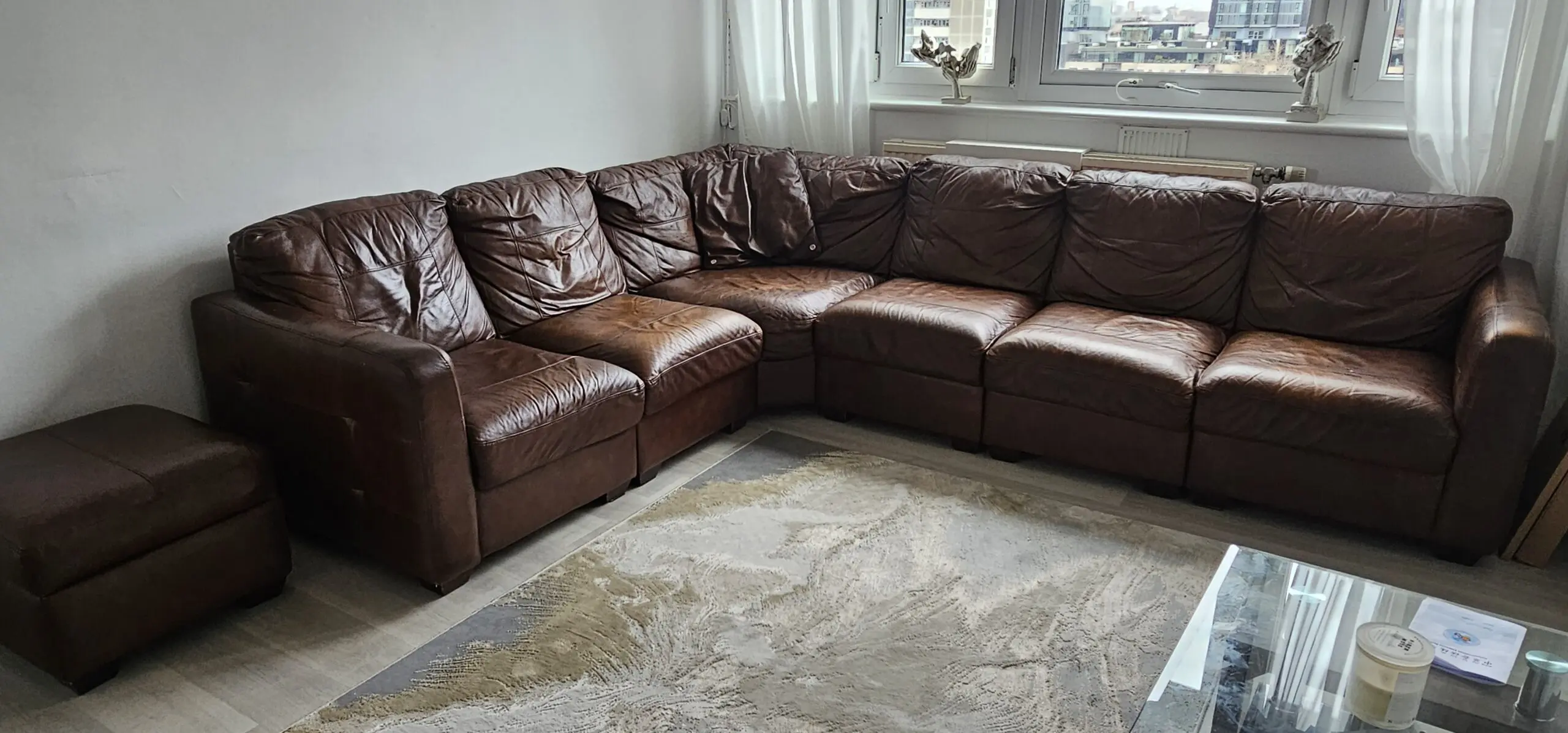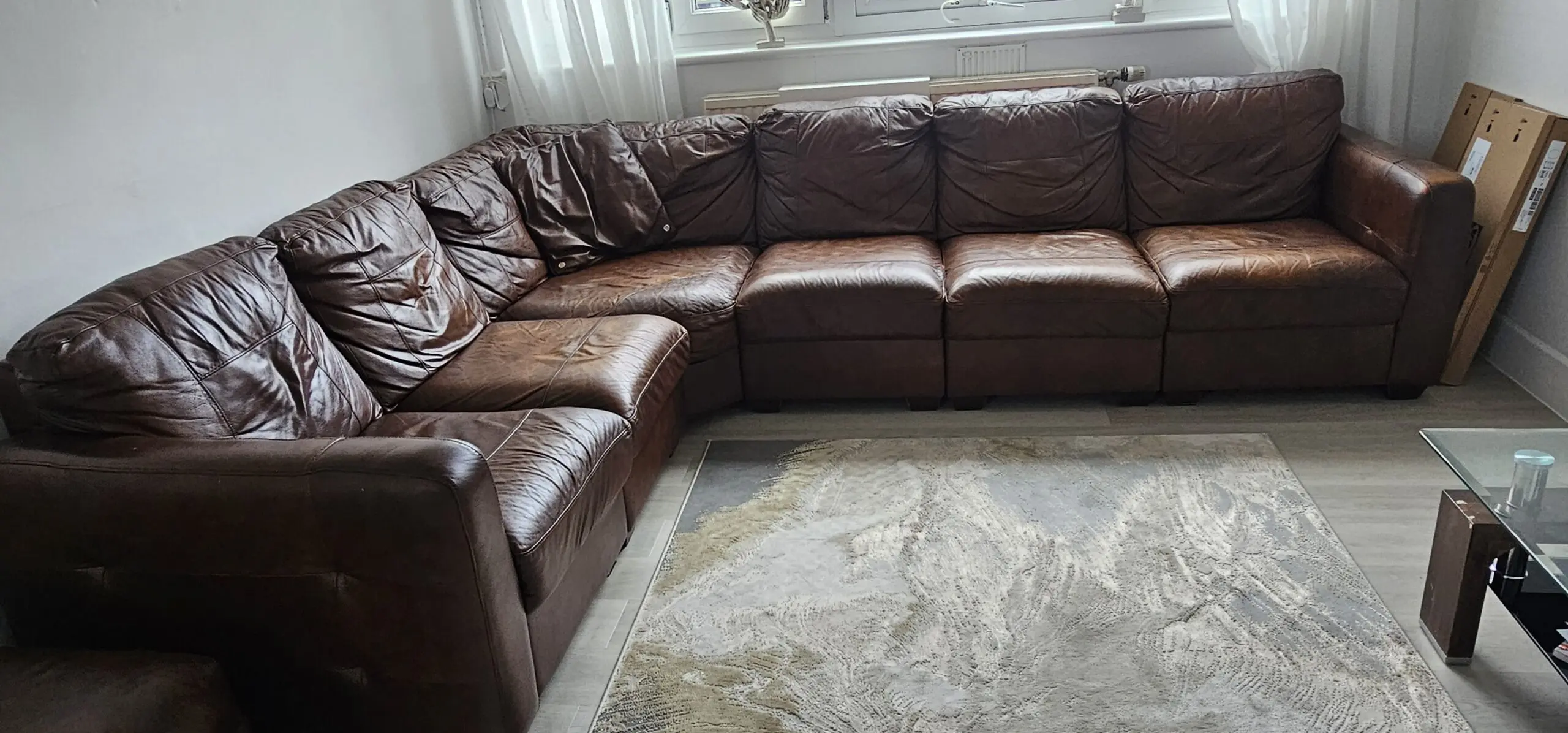 This sofar feleThis sofa is flexible and rotates in any direction. I bought it 9 years ago for £3,200 in sale from DFD london, good condition, real leather , the corner seat was scratched and we Fix it with the same exactly leather