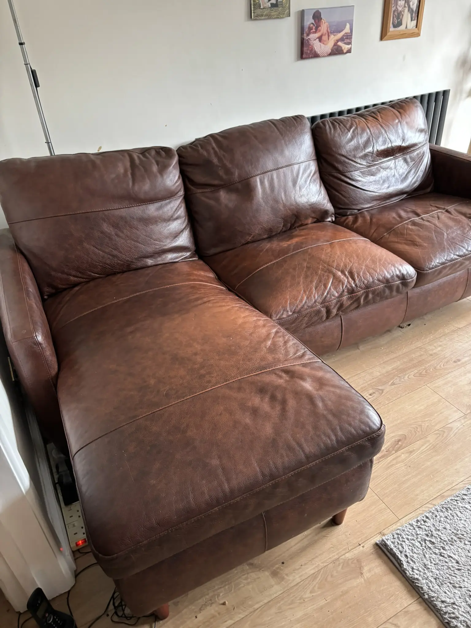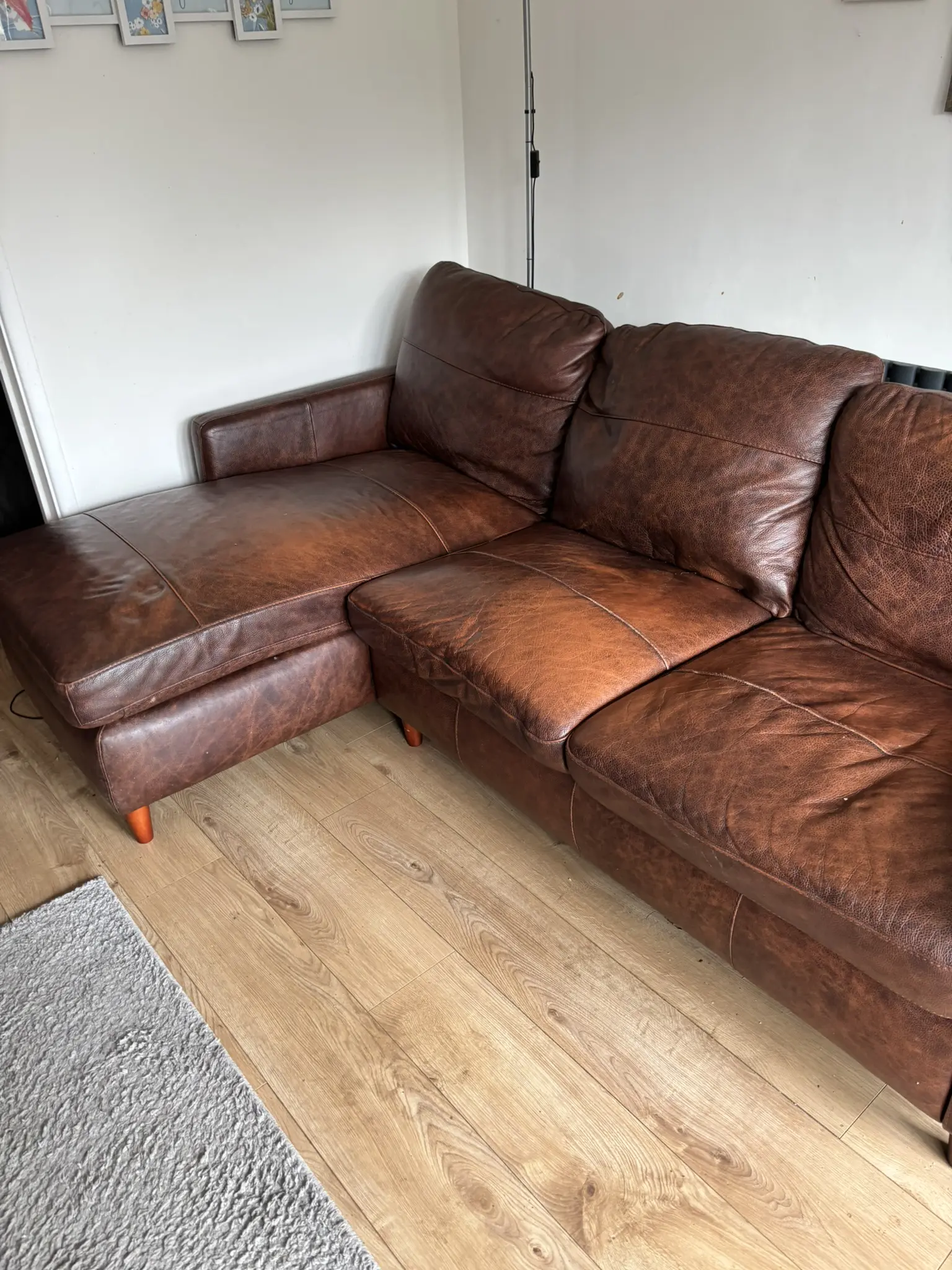 John Lewis Dalston Leather LHF Chaise End Sofa, Earth Bronx original cost £1,399.00