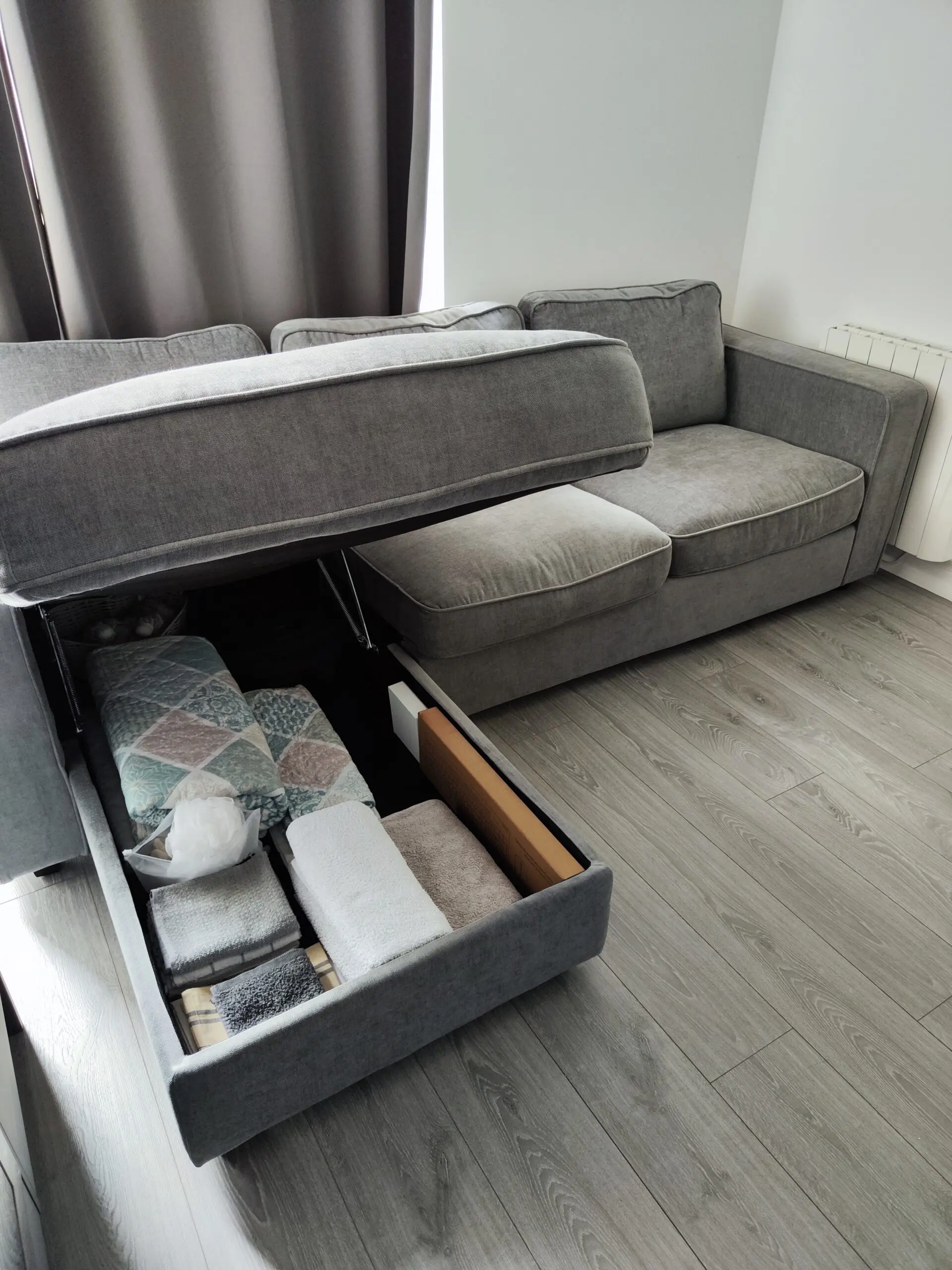 I bought this couch three months ago from DUSK.com. Unfortunately, I will be moving into a smaller place so it will no longer fit. It’s barely been used, in pretty much perfect condition looking for a new home. It is a 3-seater couch with storage under the chaise section.