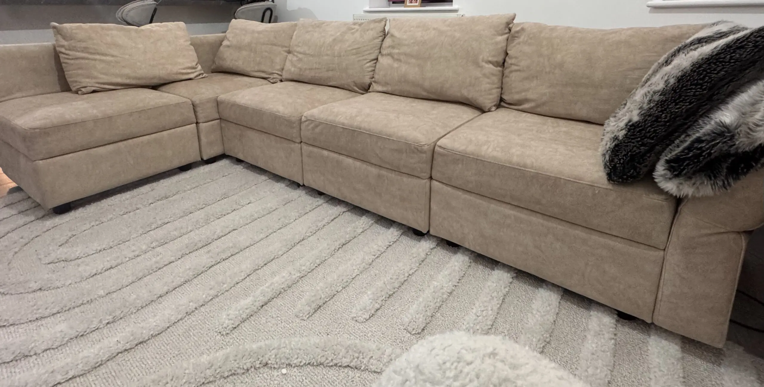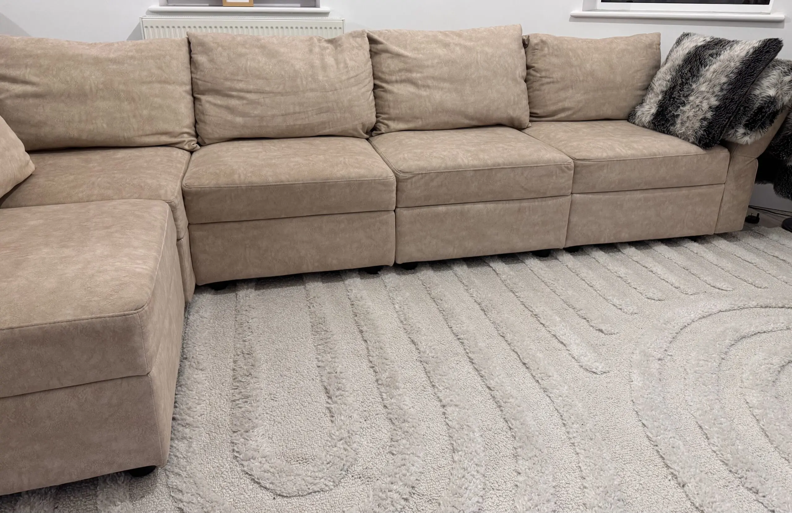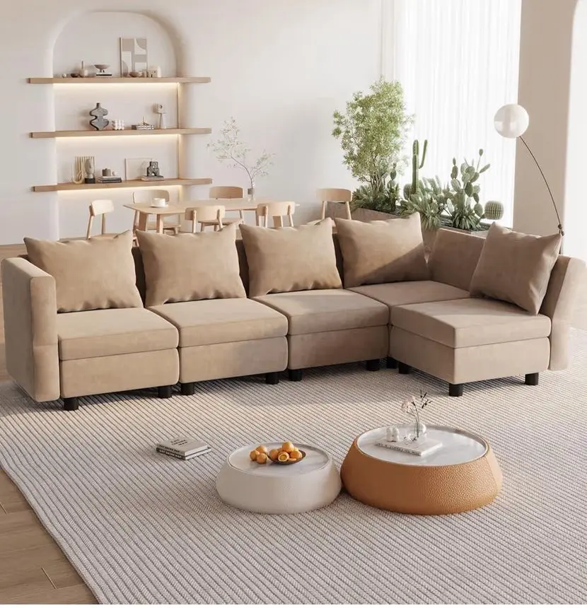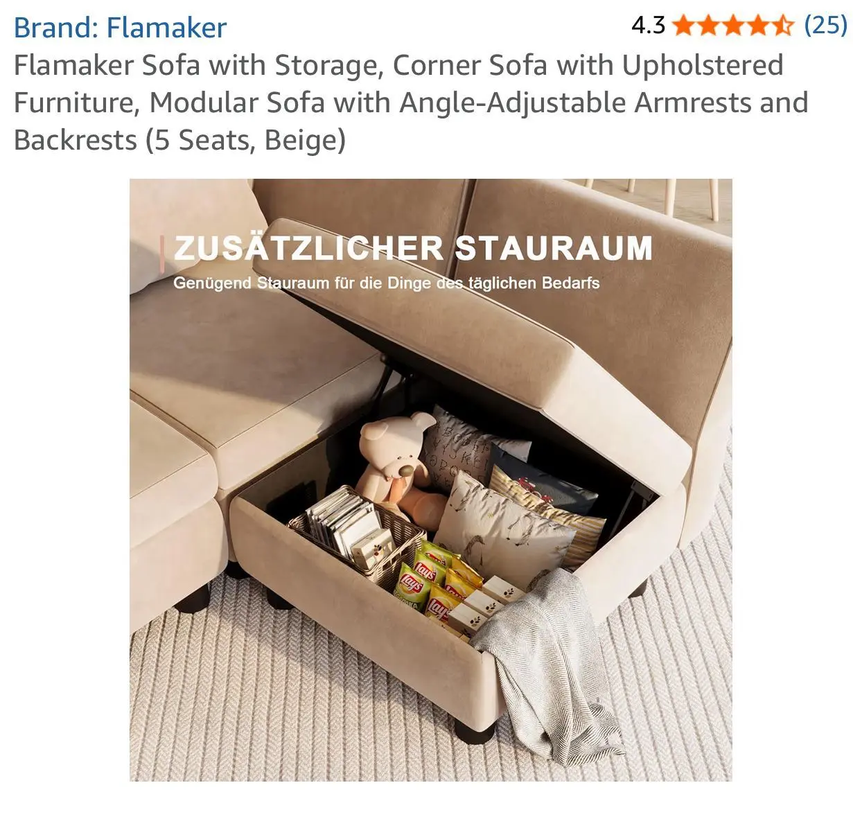 Flamaker Sofa with Storage, Corner Sofa with Upholstered Furniture, Modular Sofa with Angle-Adjustable Armrests and Backrests – 5 Seats