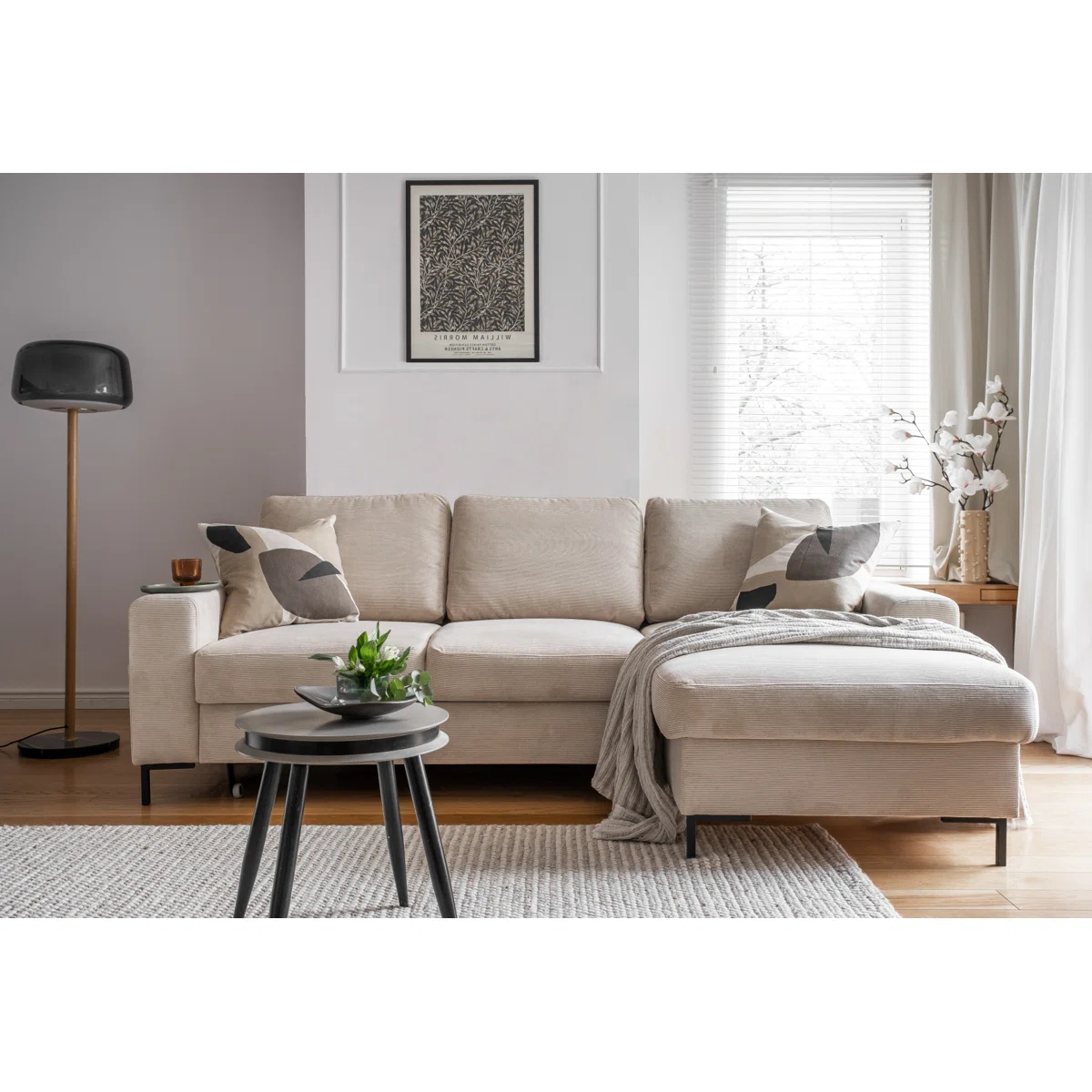 – Beautiful and practical: Are you constantly losing your TV remote control or have nowhere to put your newspaper or book? The side pocket of this corner sofa solves these problems.
