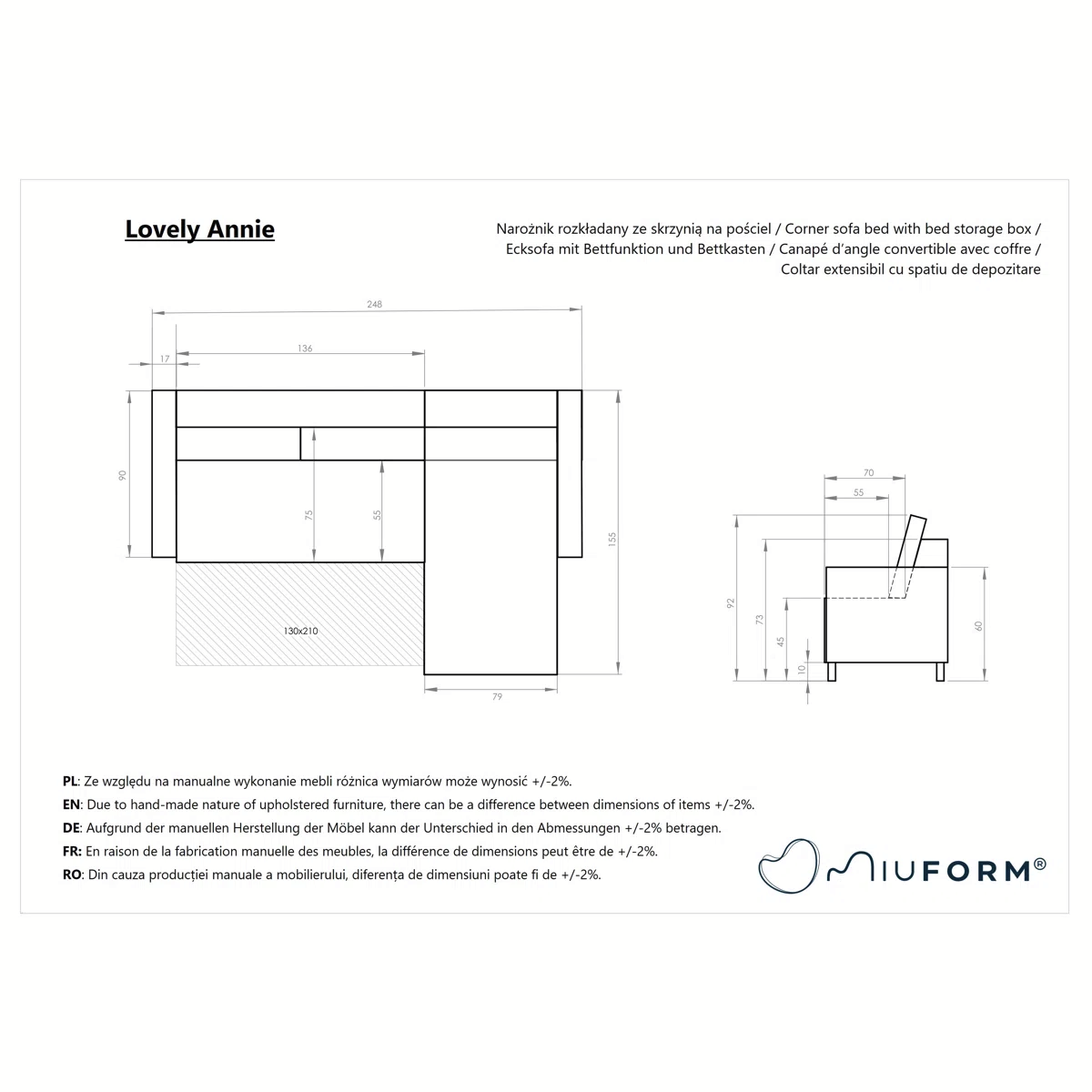– Sleeping function: The corner sofa can easily be converted into a bed. (This corner sofa is intended for occasional sleeping)