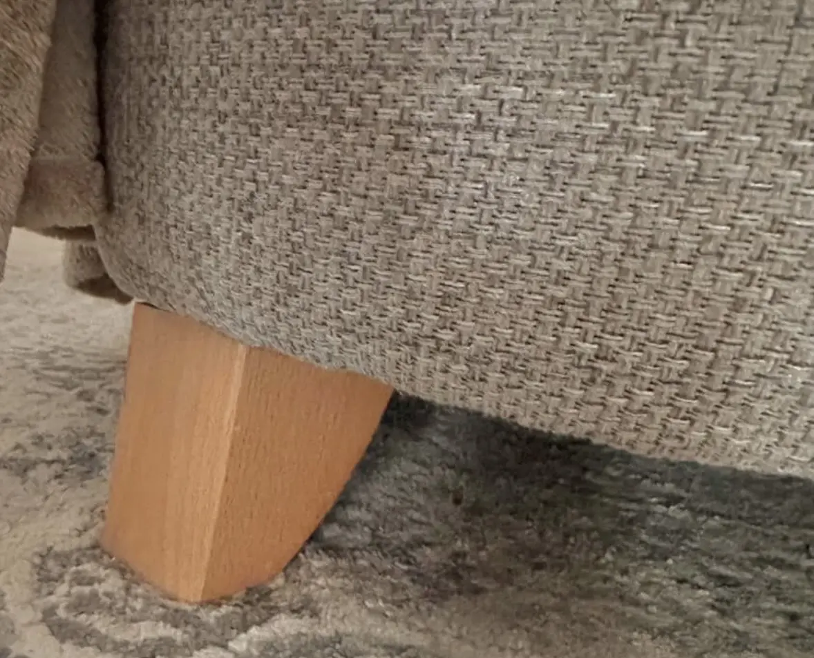 In excellent condition – no tears, rips, stains, or marks at all. Very well looked after. Finished with light wood legs and super comfortable pillow back cushions.
