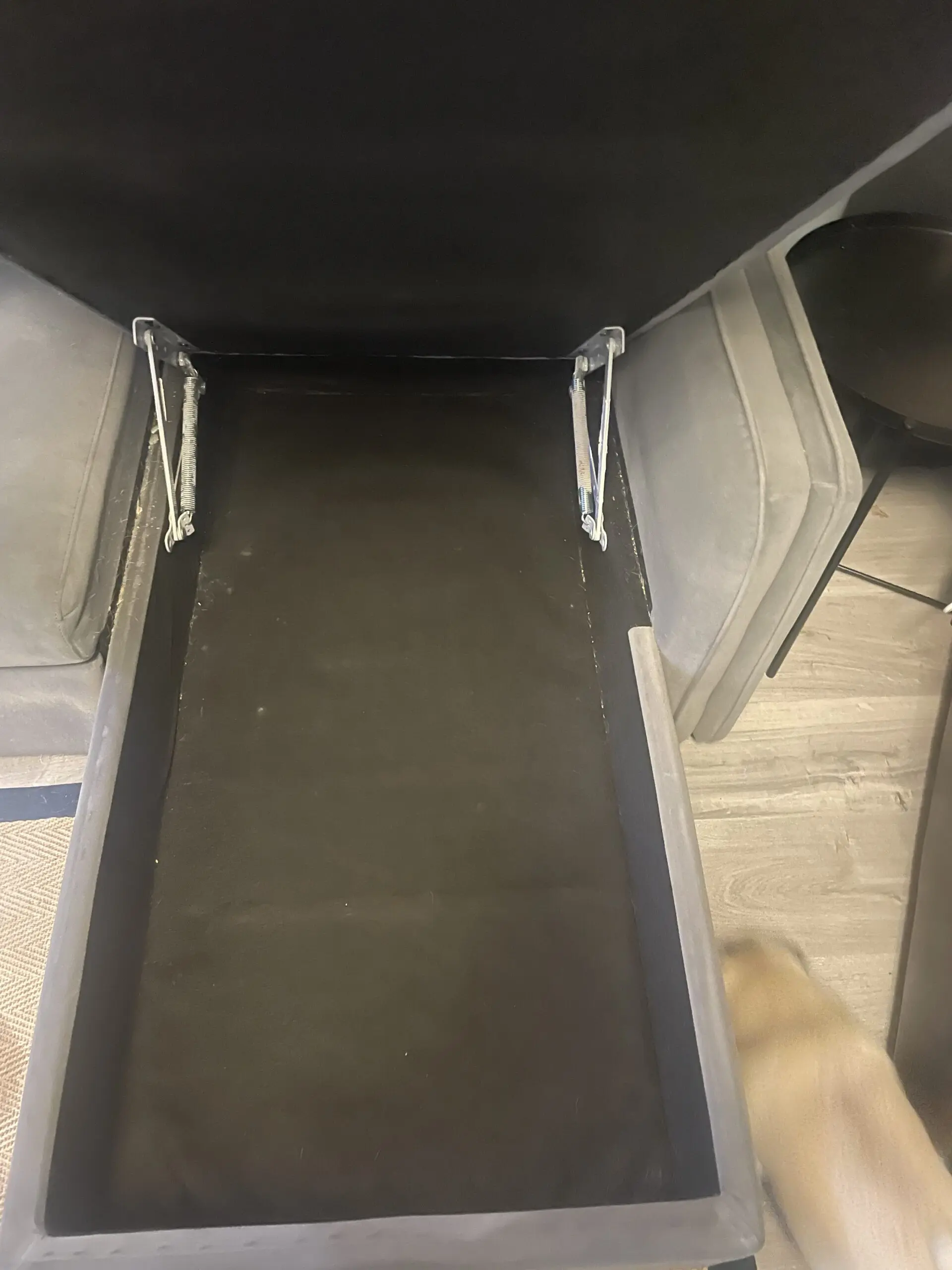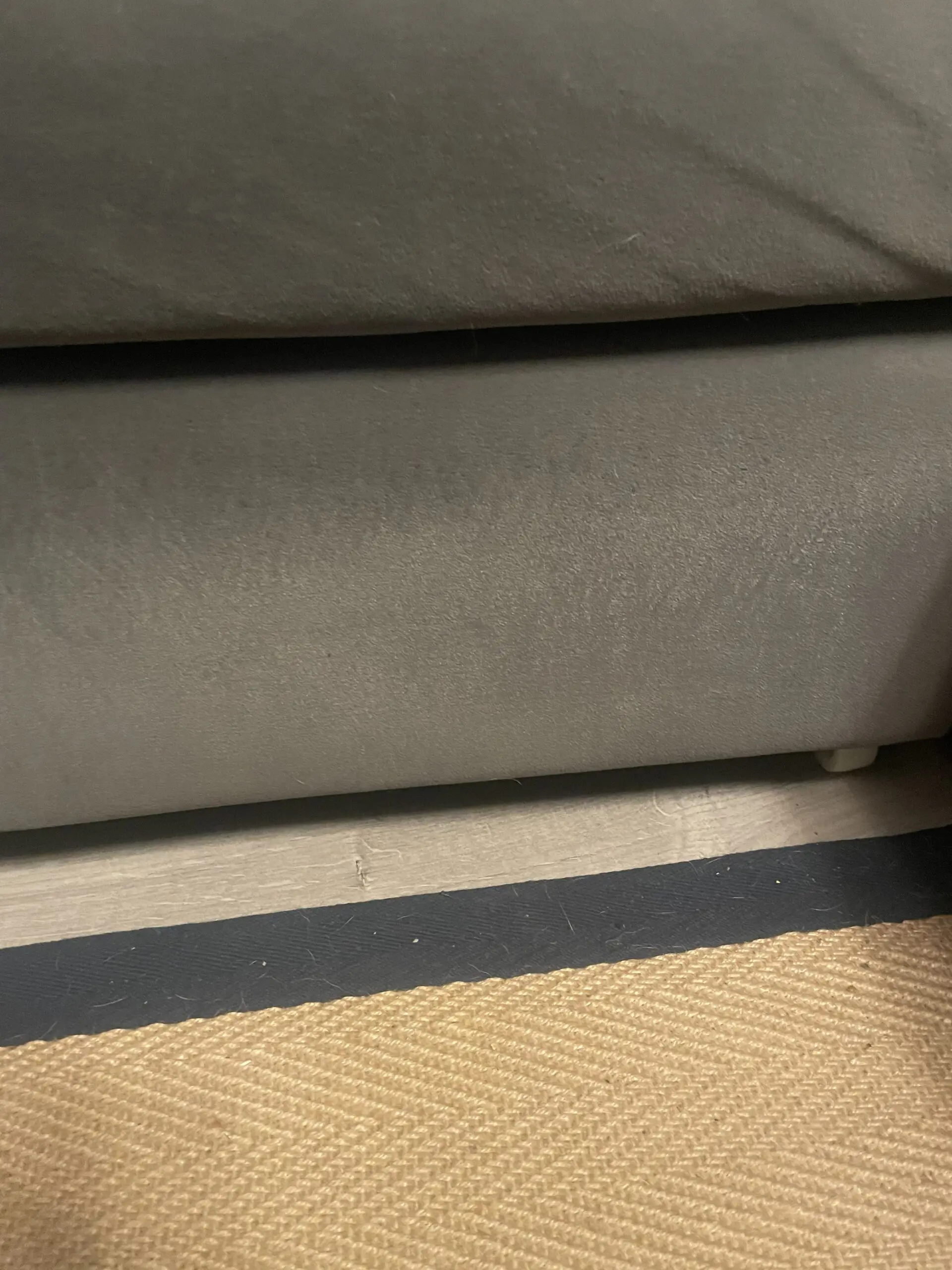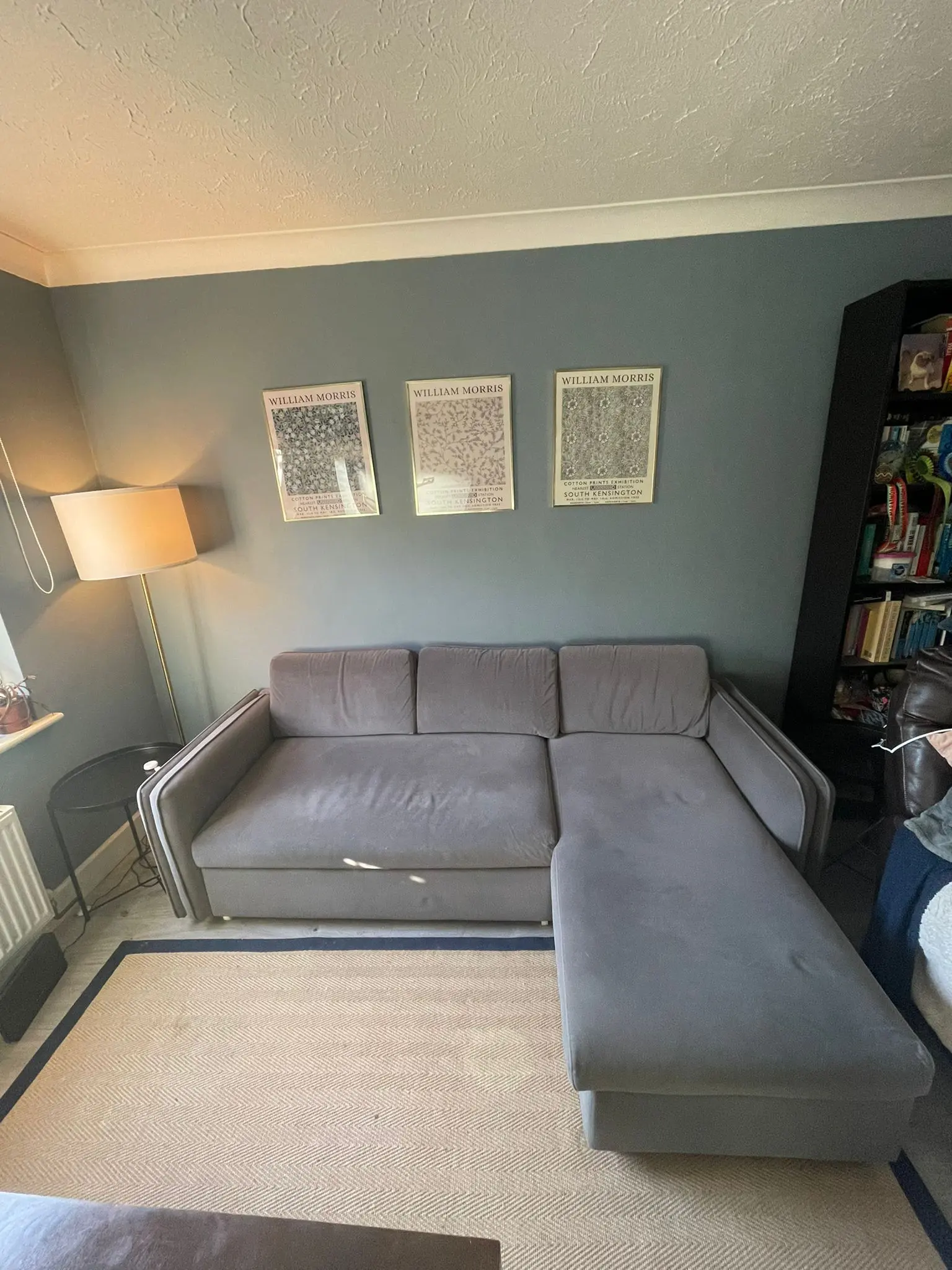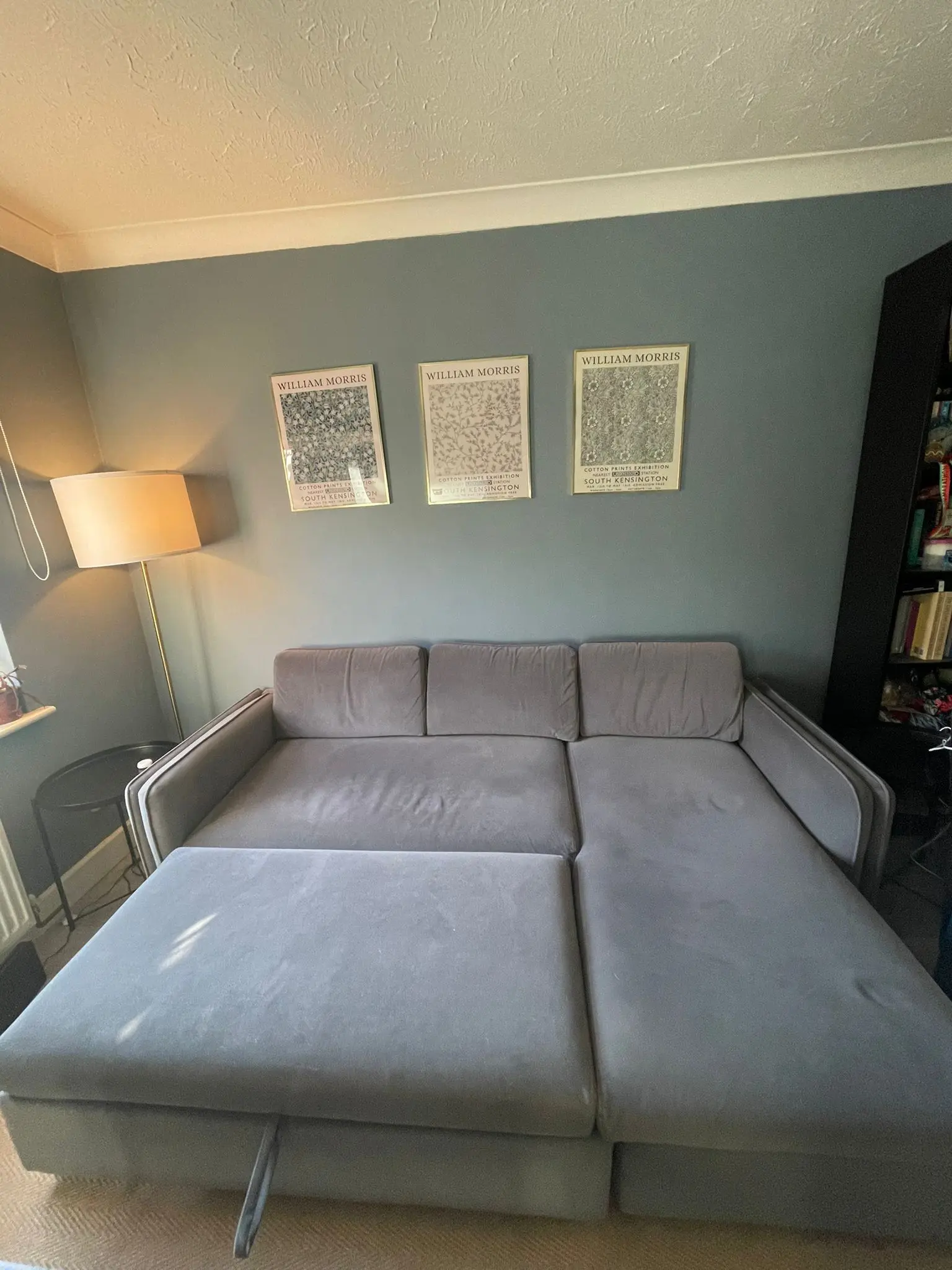 Marks and Spencer’s L shaped sofa bed. It also has a storage compartment underneath the long section. Scratch marks on the side of the sofa from pet. These marks are included in the images