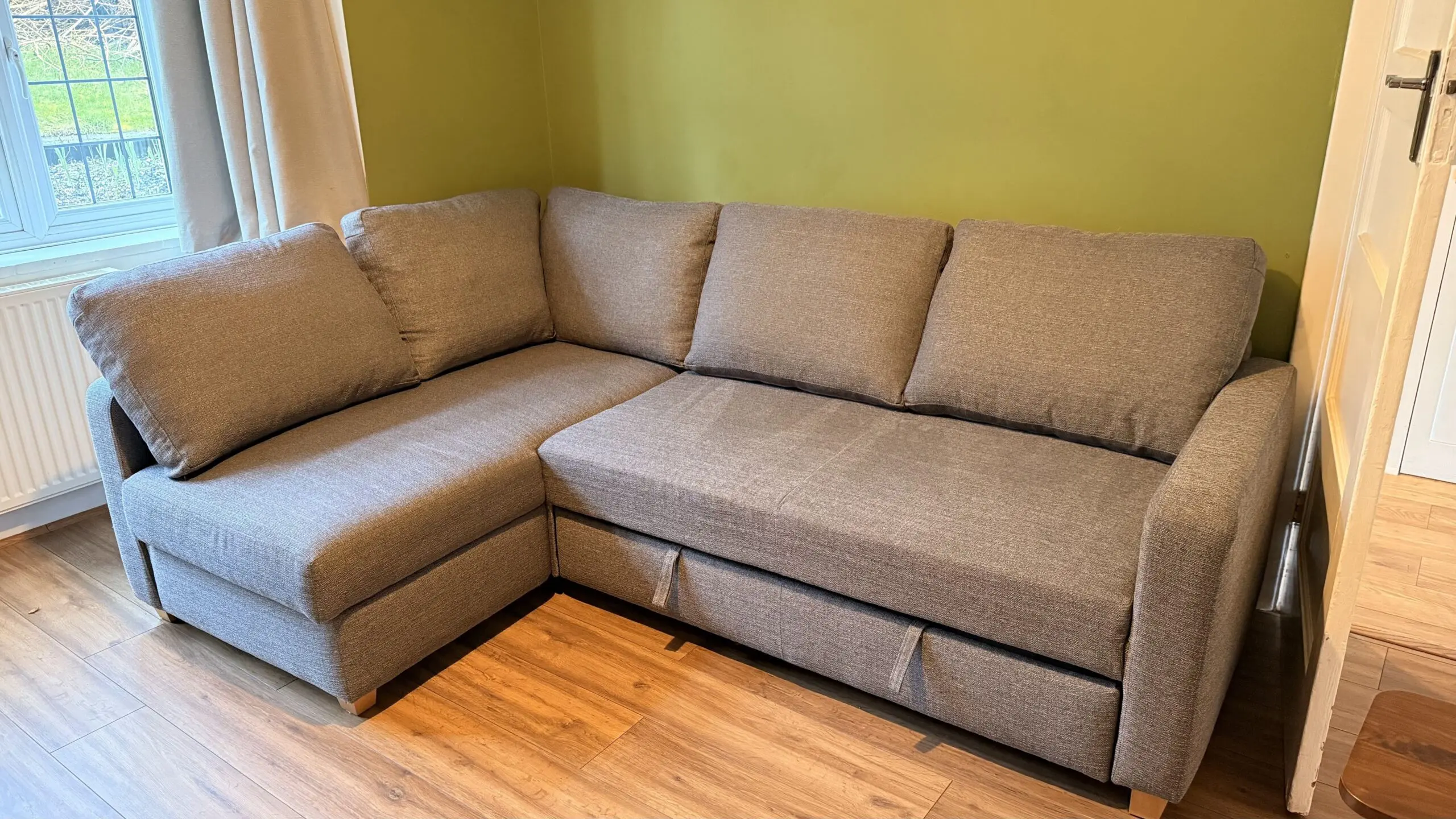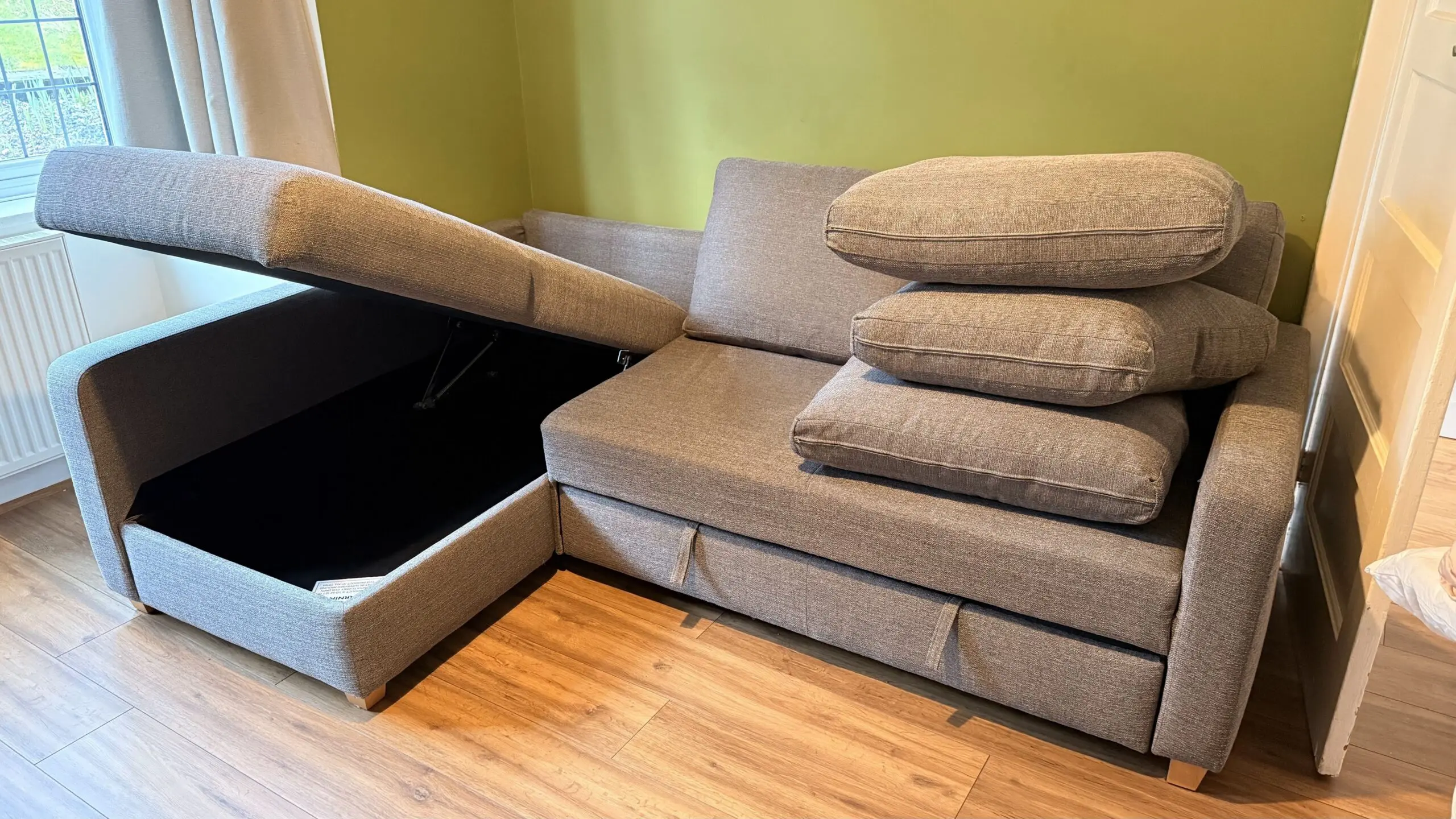 This spacious corner sofa is perfect for families or those who love to entertain, comfortably seating 4-5 people. The L-shaped configuration maximises seating whilst making efficient use of corner space in your living room. Features practical storage compartments underneath, ideal for keeping blankets, cushions or other household items neatly tucked away. The contemporary design with clean lines and plush cushioning offers both style and comfort for everyday relaxation.
