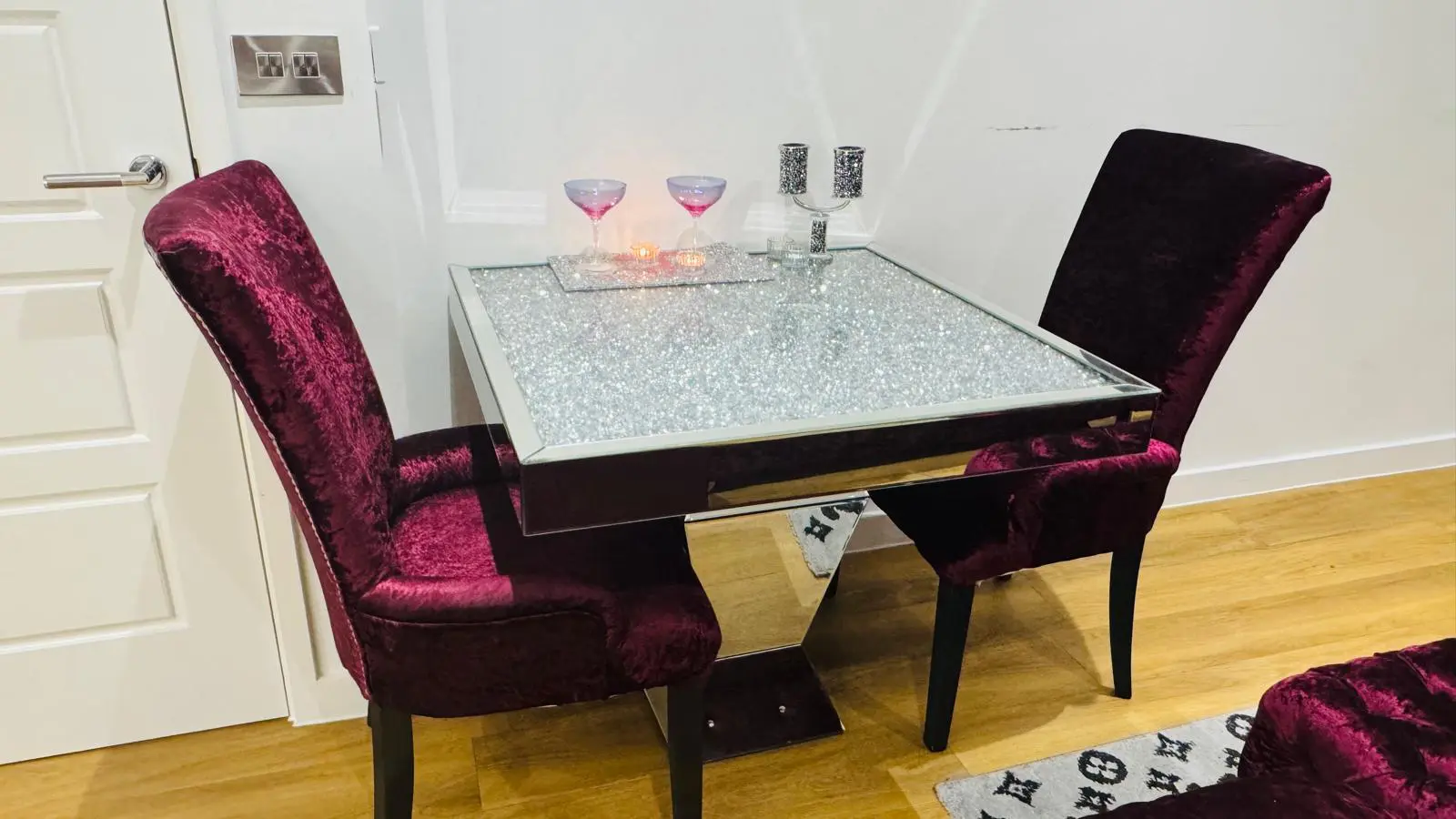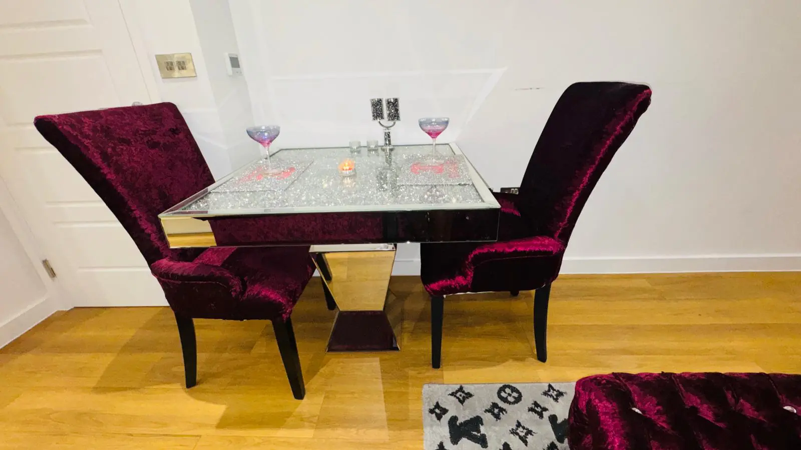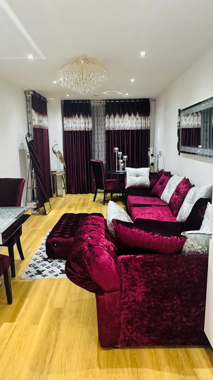 Lustro Febrice – High Quality Velvet , Lustro Febric 4 Chairs , Lustro Fabrci Footstool and Lustro Fabric Sofa – Not Used