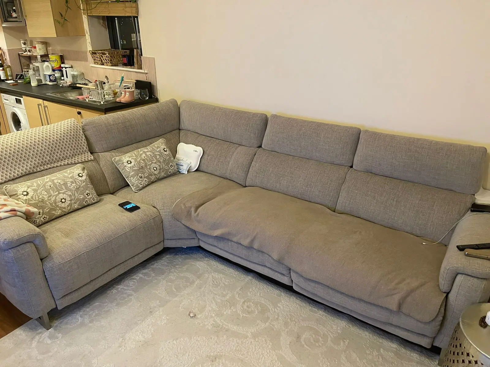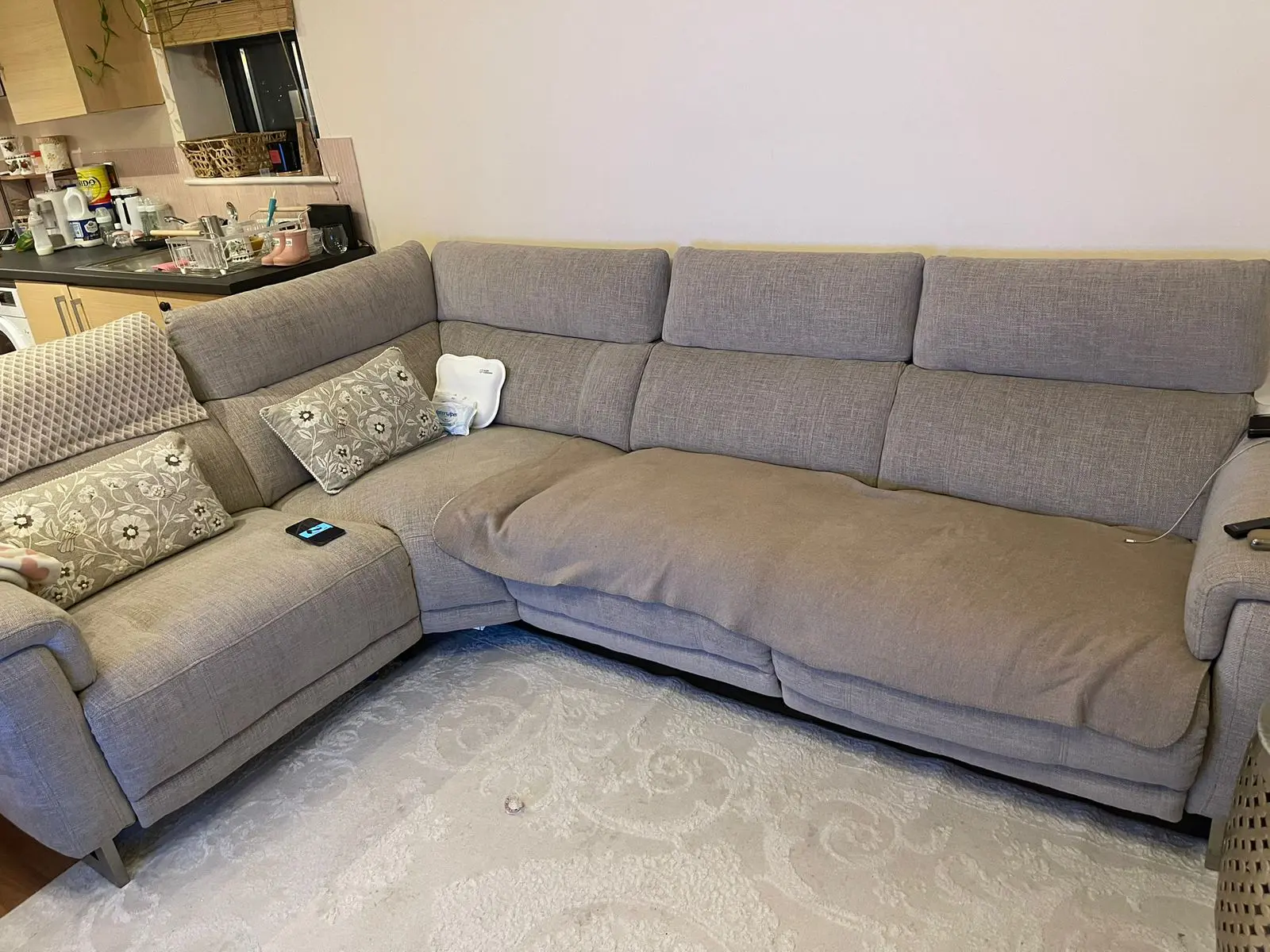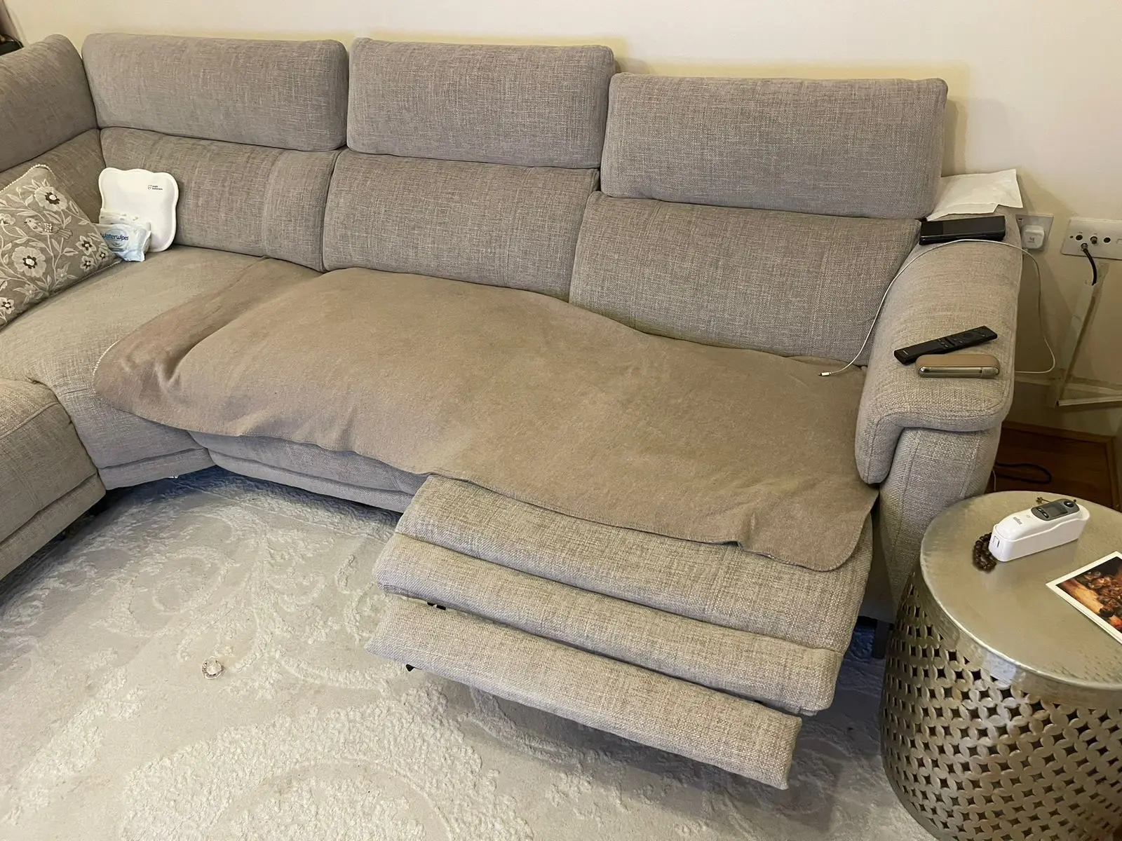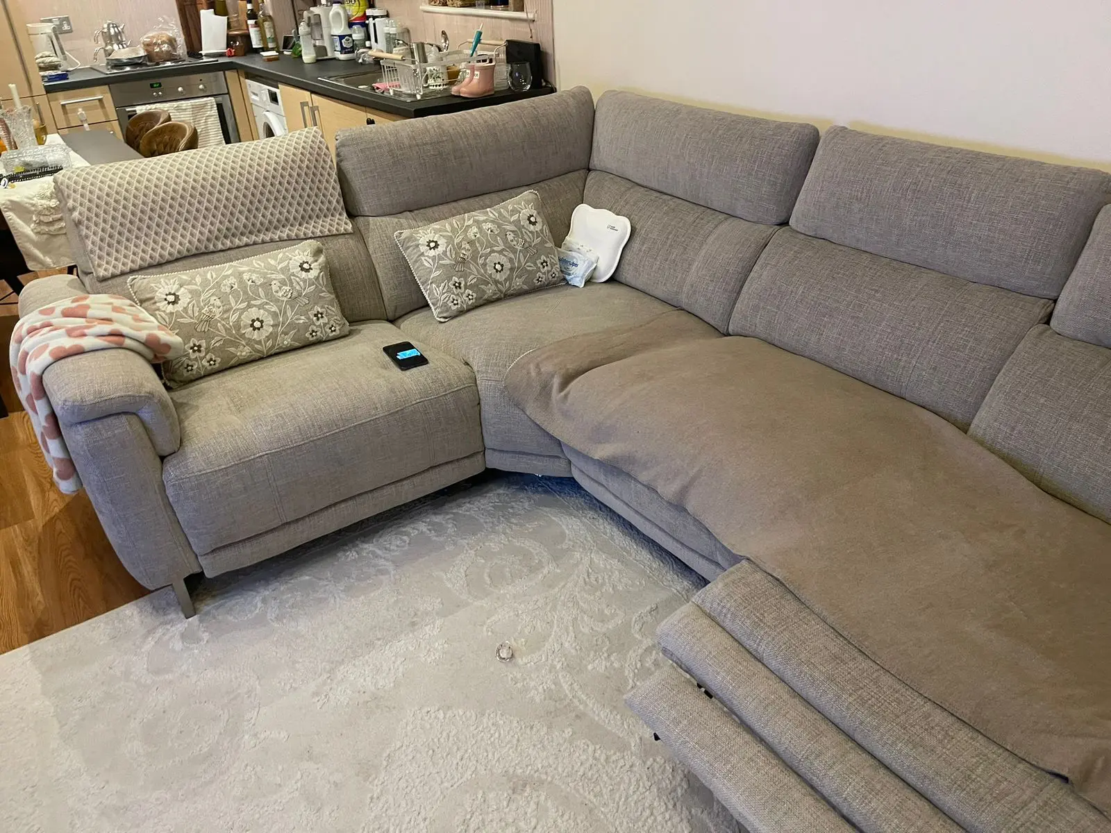 Fabulous fabric power recliner corner sofa with power telescopic headrests.