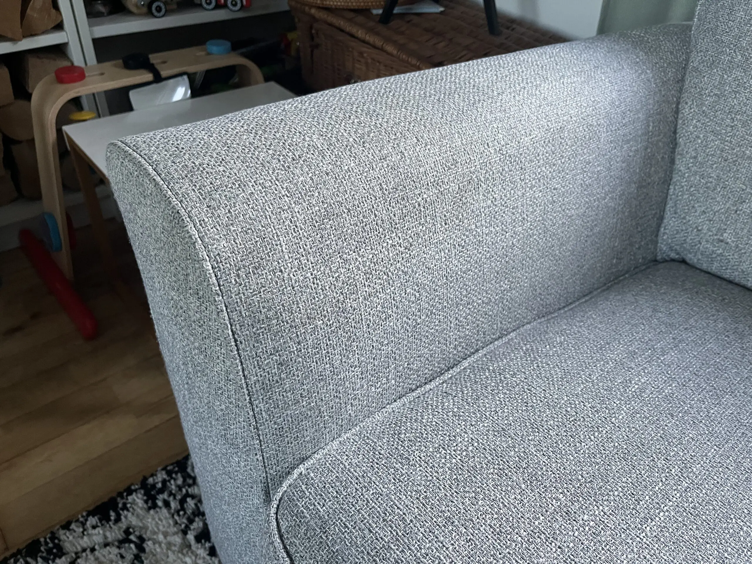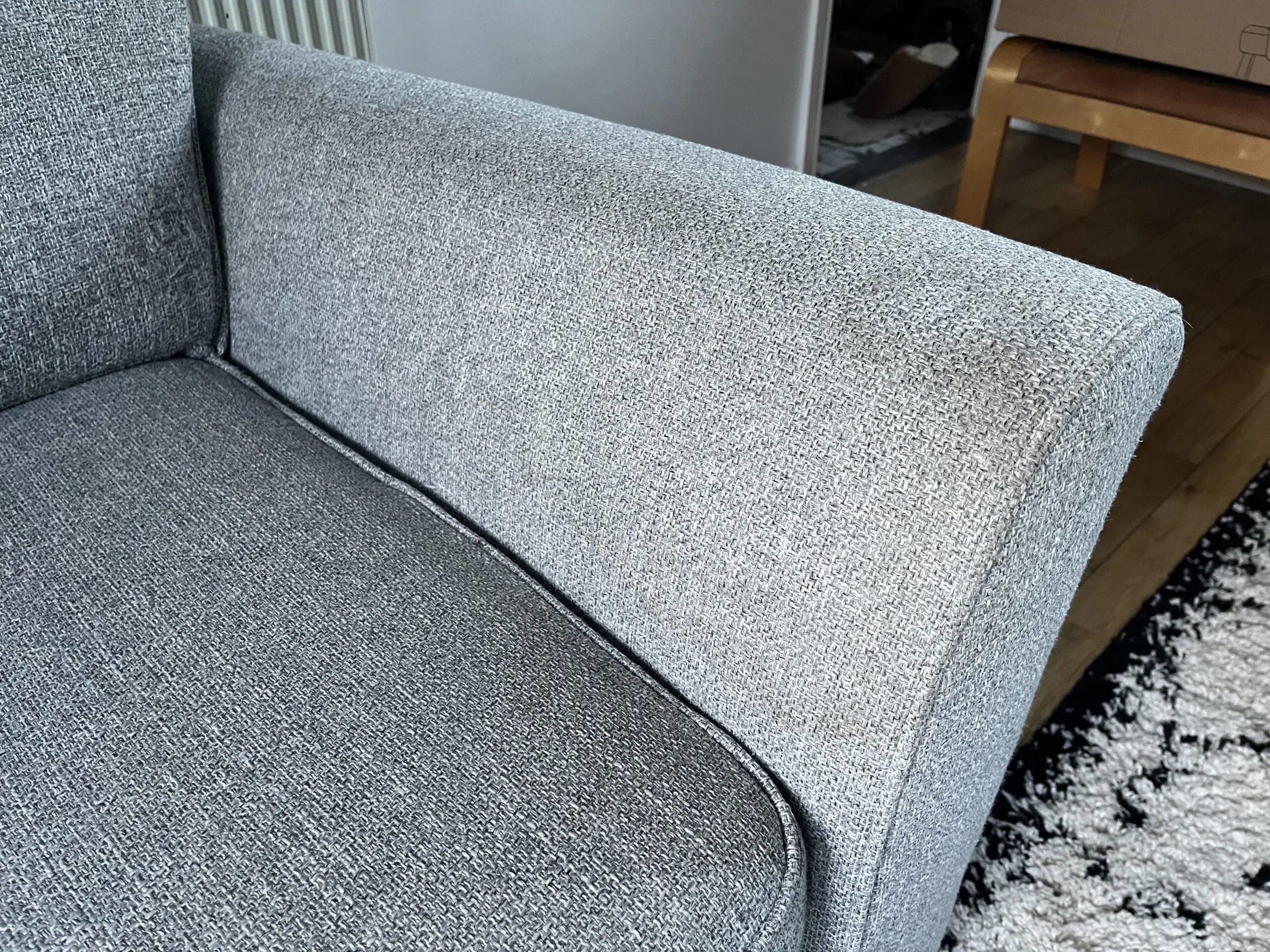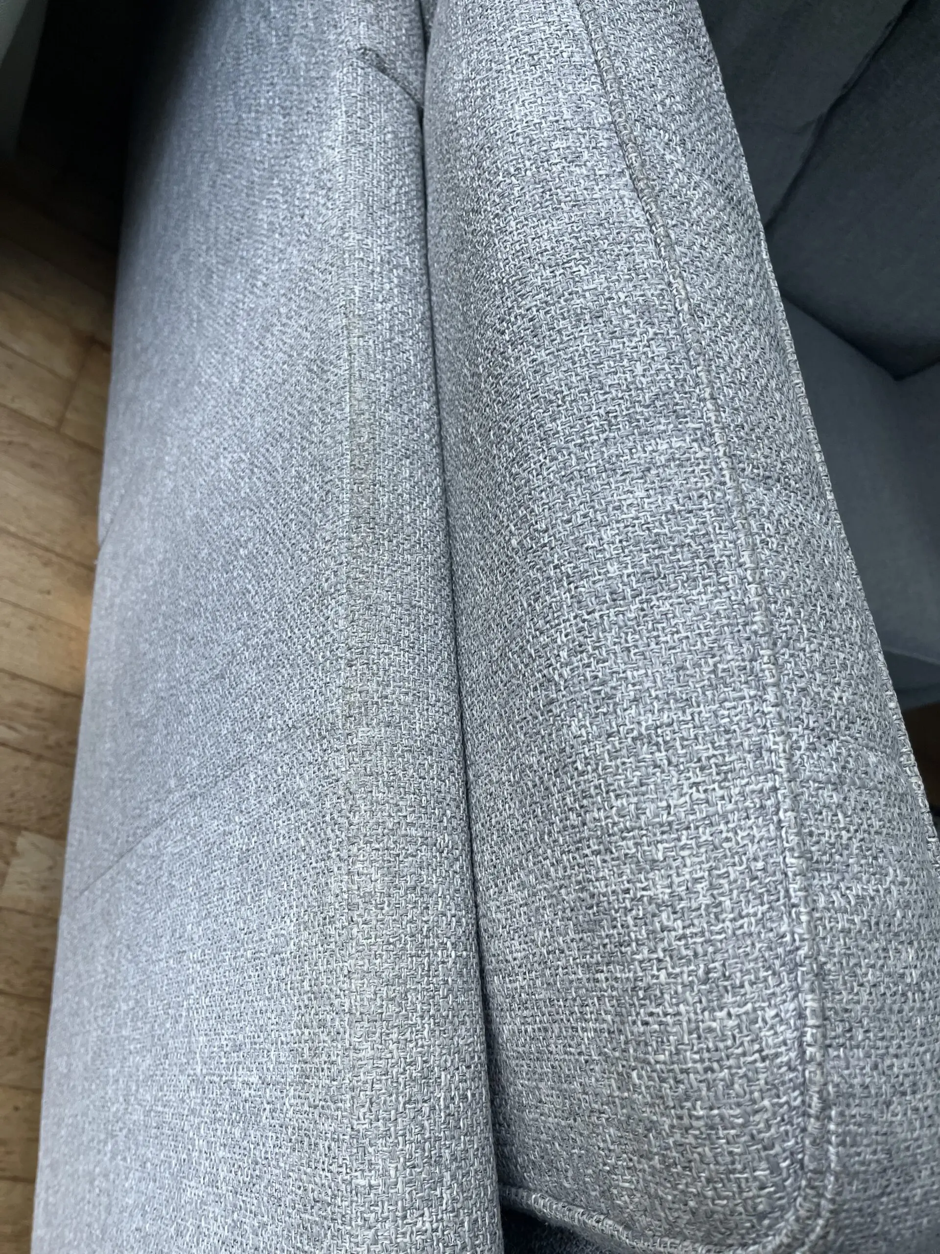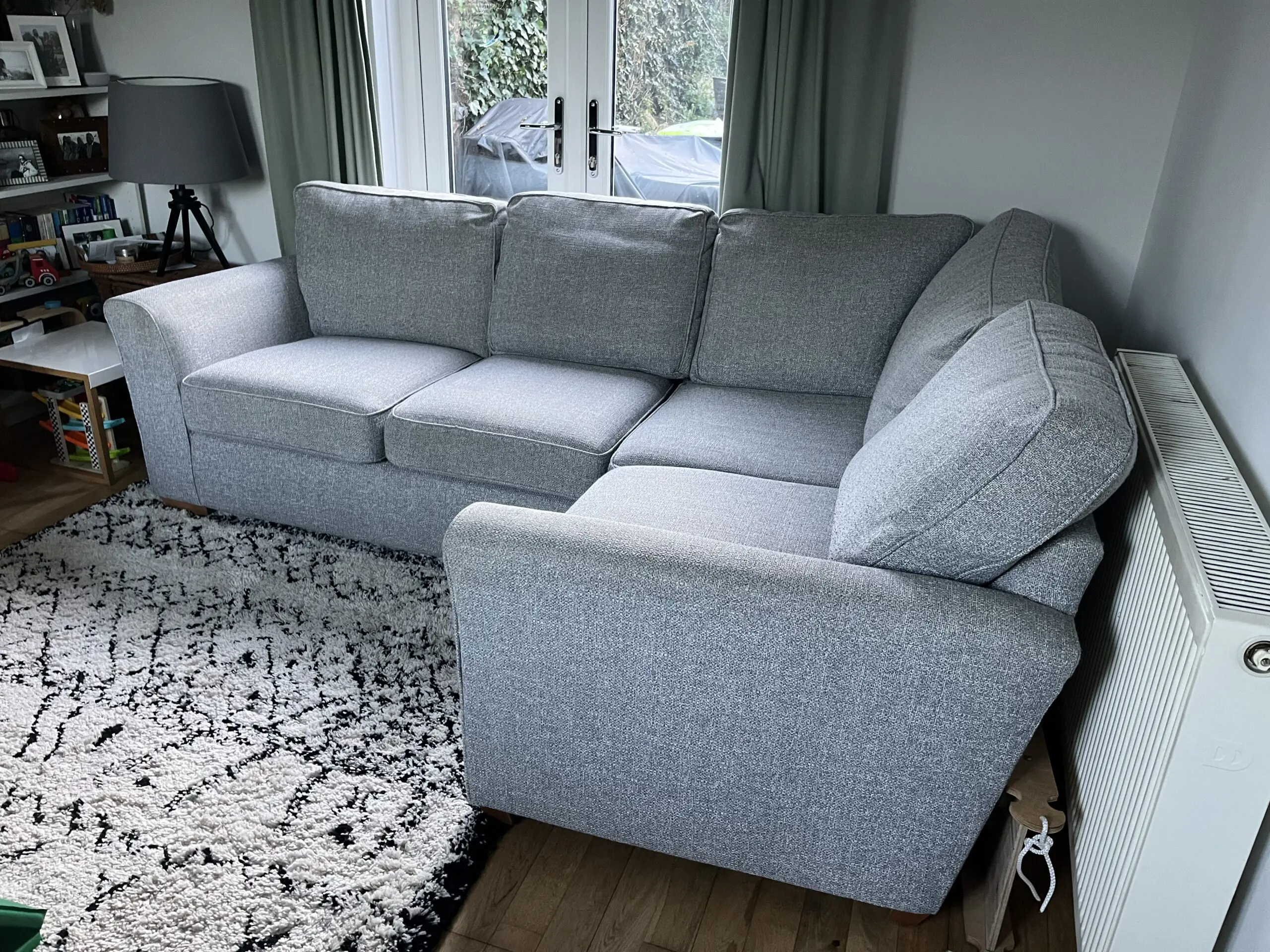 Had since 2018 and still love it but selling due to restricted space in our new house. Decent size, comfortable, great family sofa. Due to light colour has a few marks in places, including water marks on the arms where it has been cleaned. Some bobbling on the cushions. Otherwise in good condition. Think all bobbles could be removed with a wool comb and marks removed with a spot wash.