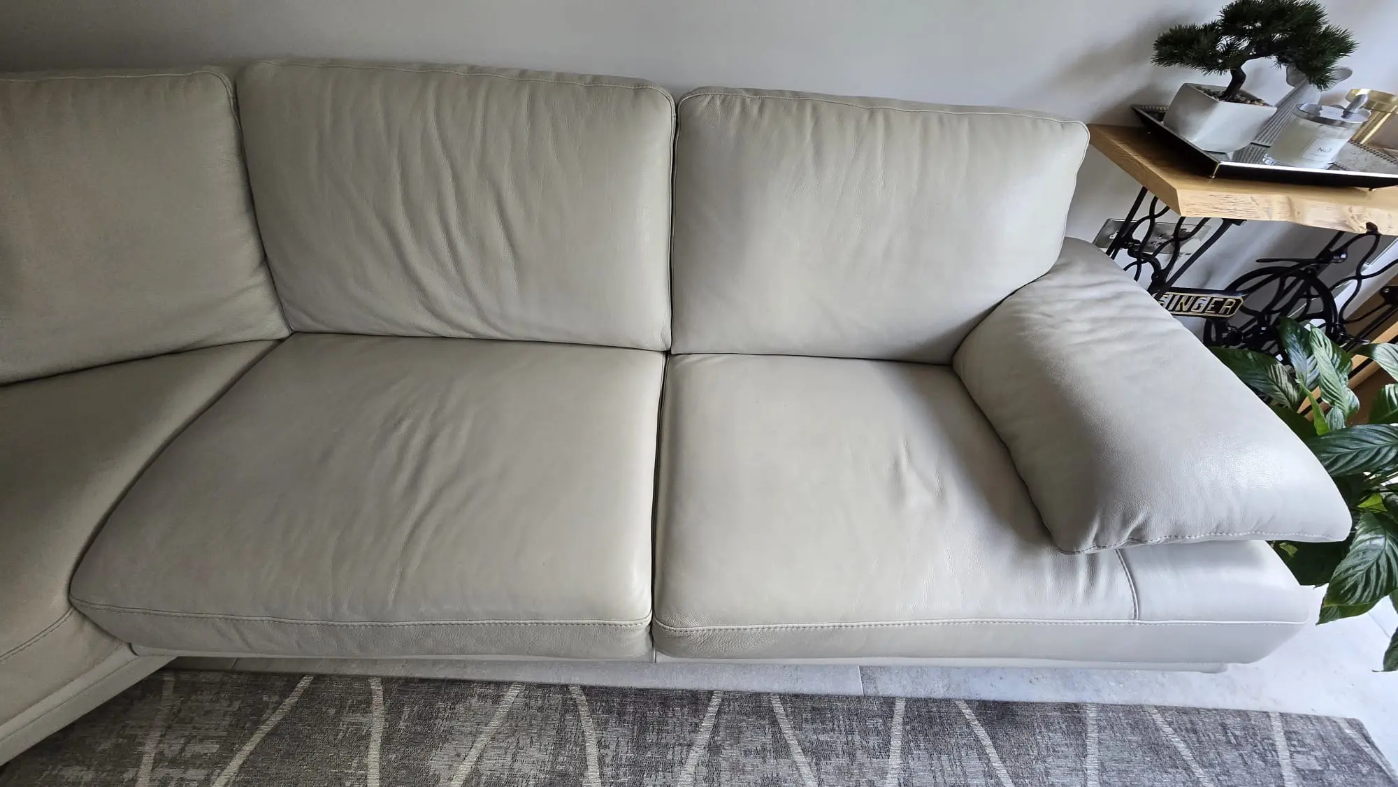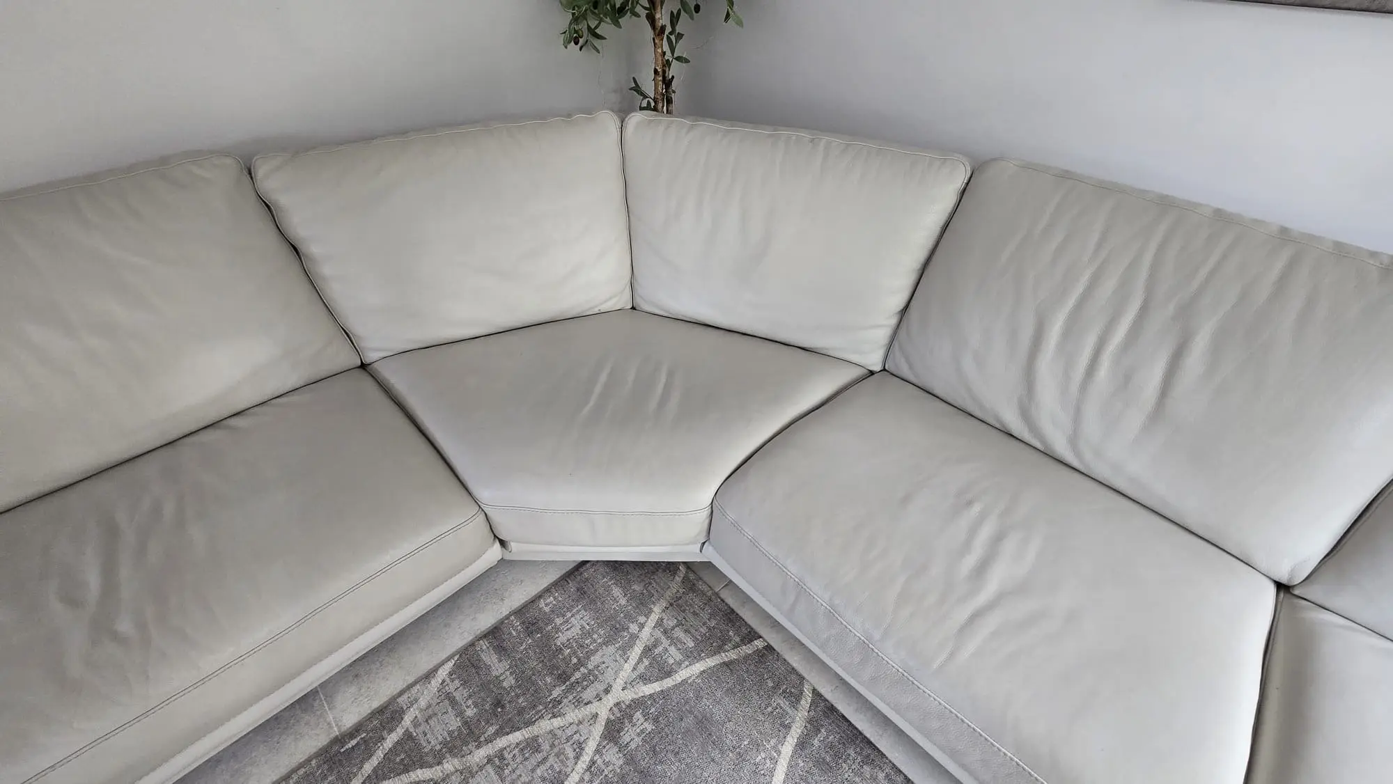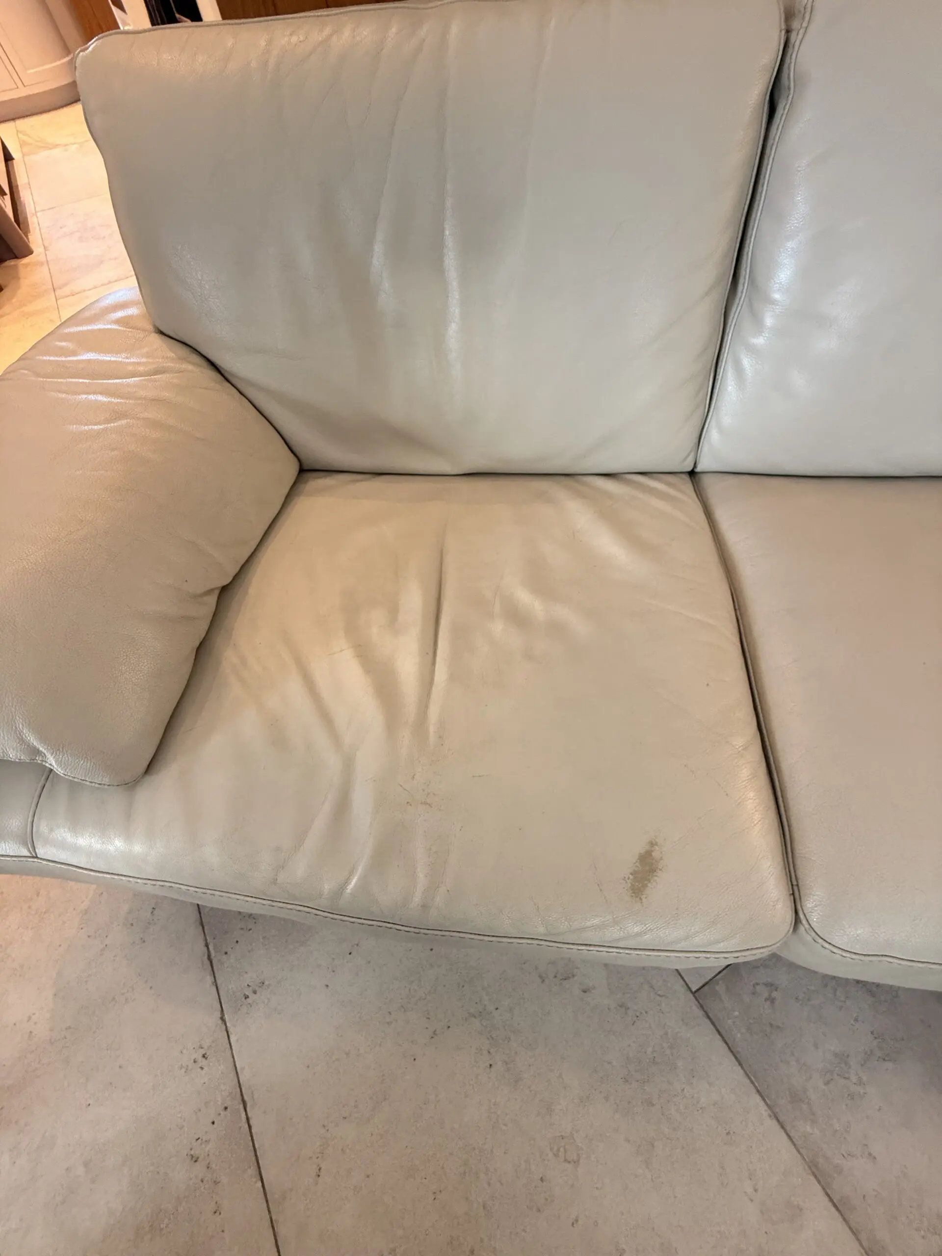 Comfortable excellent quality Natuzzi cream leather large corner sofa , it’s very clean and well looked after . Small mark on right hand side chair which isn’t too noticeable and could maybe be repaired . Original cost was over £7000