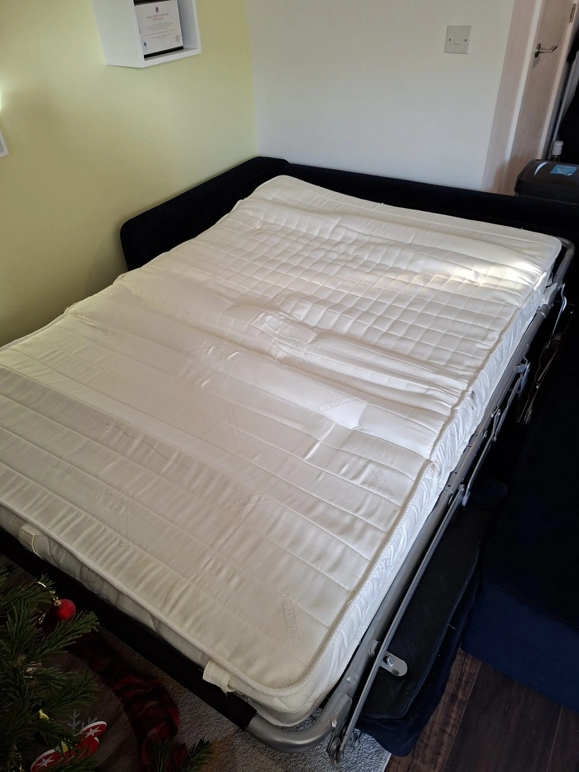 Natuzzi sofa bed in blue with storage. Recently professionally cleaned and in good condition