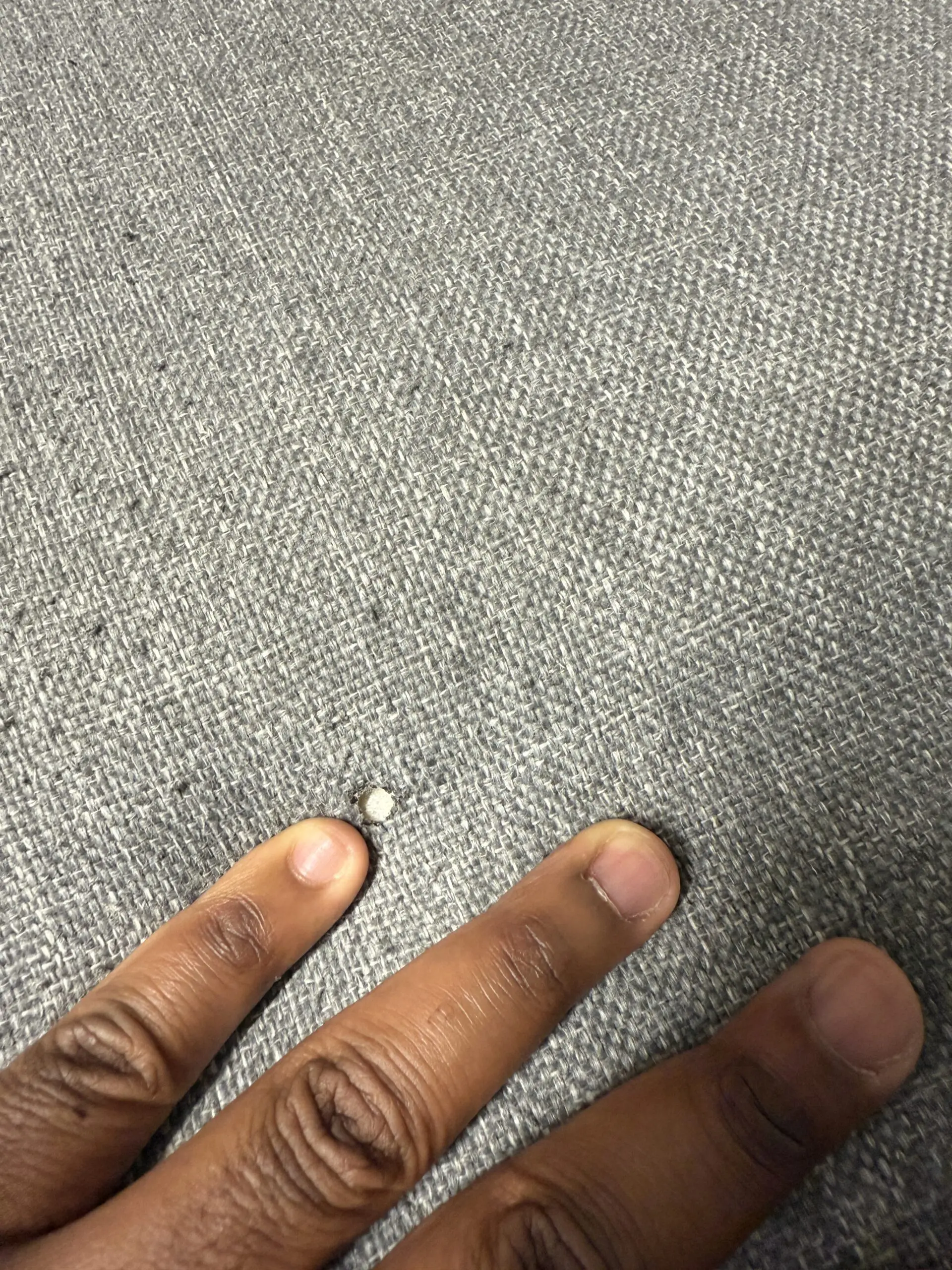 There is a small 1cm hole in one of the seat covers, this is easily repaired as the sofa has some excess fabric for repairs.