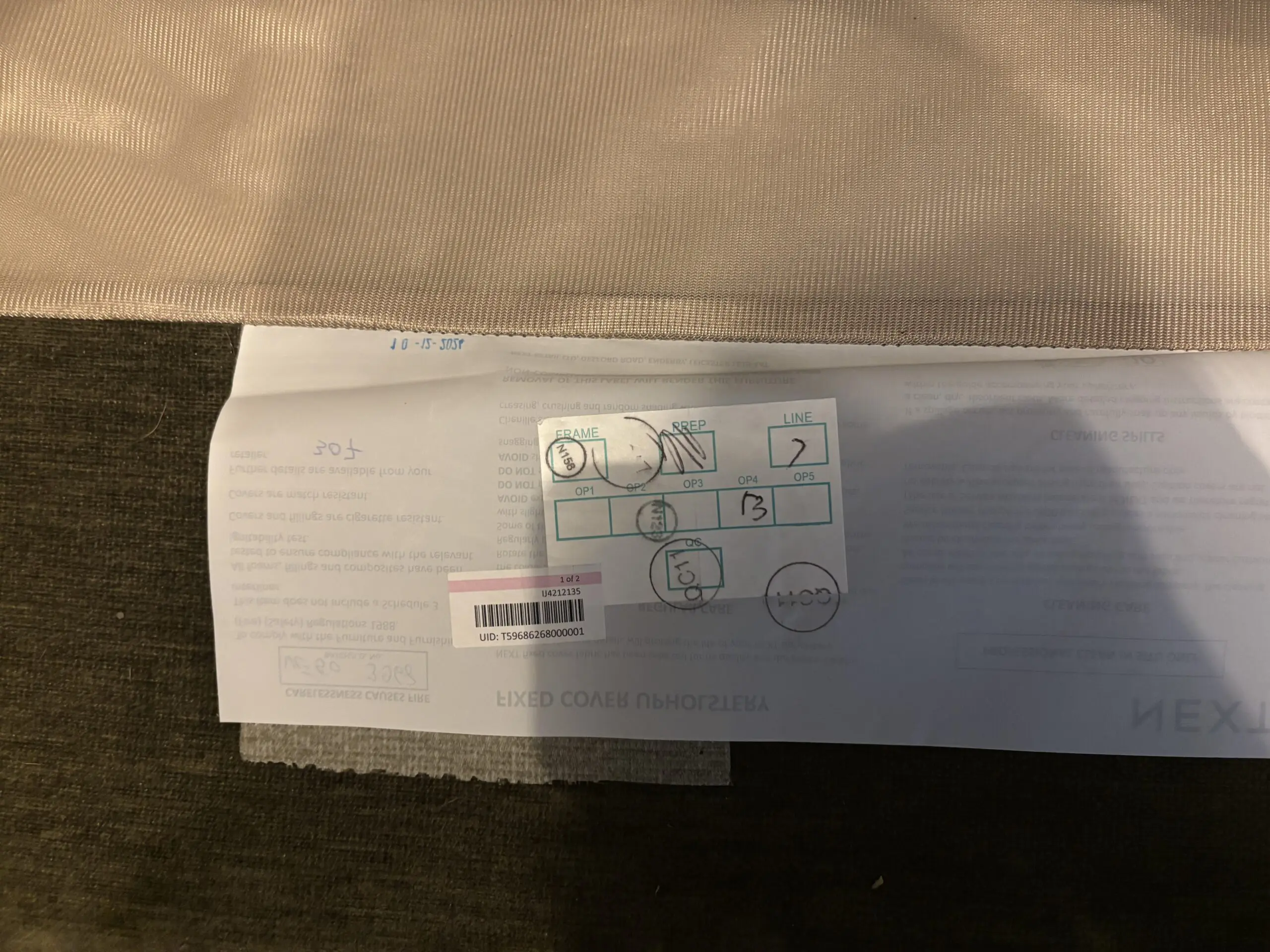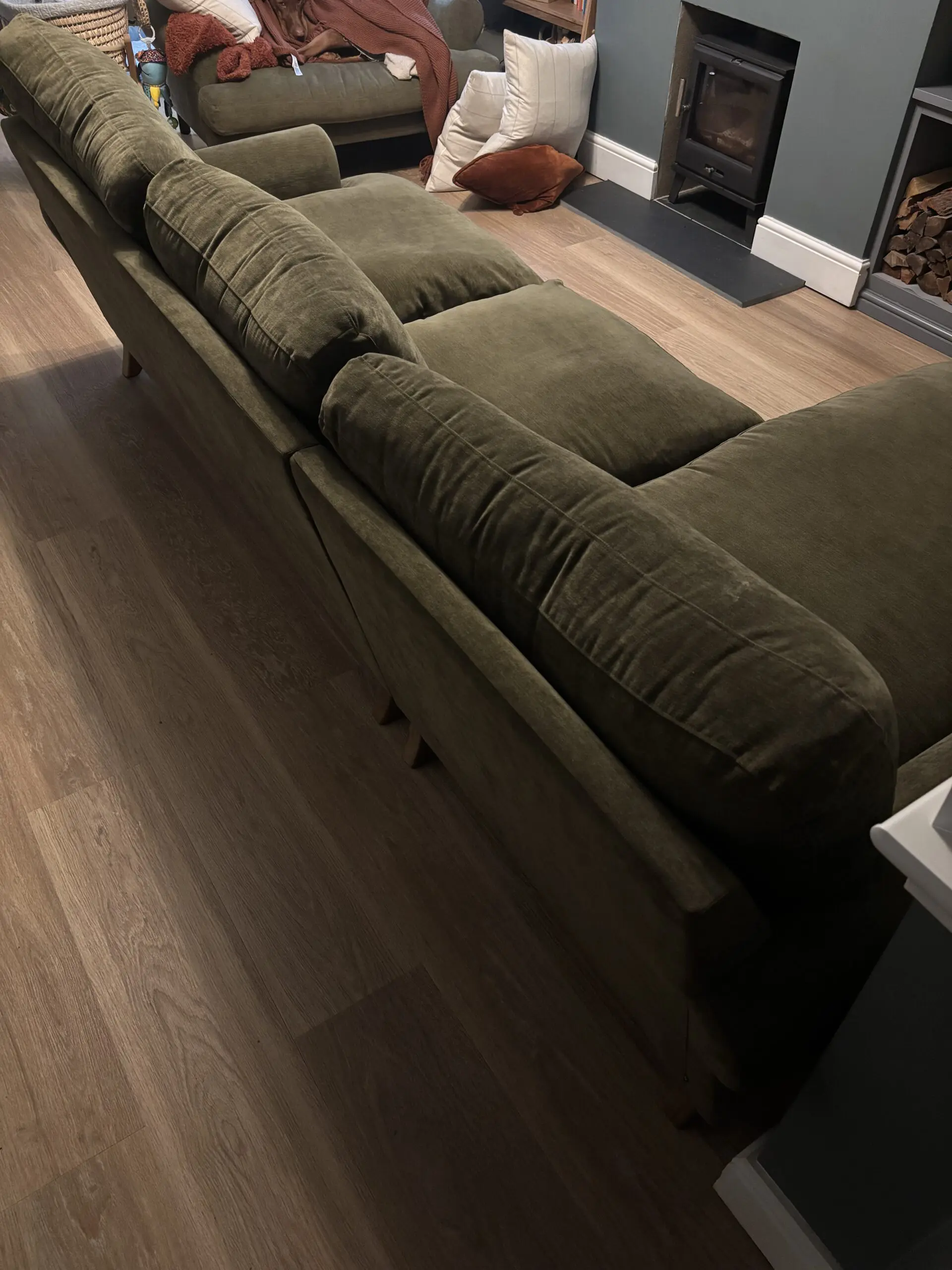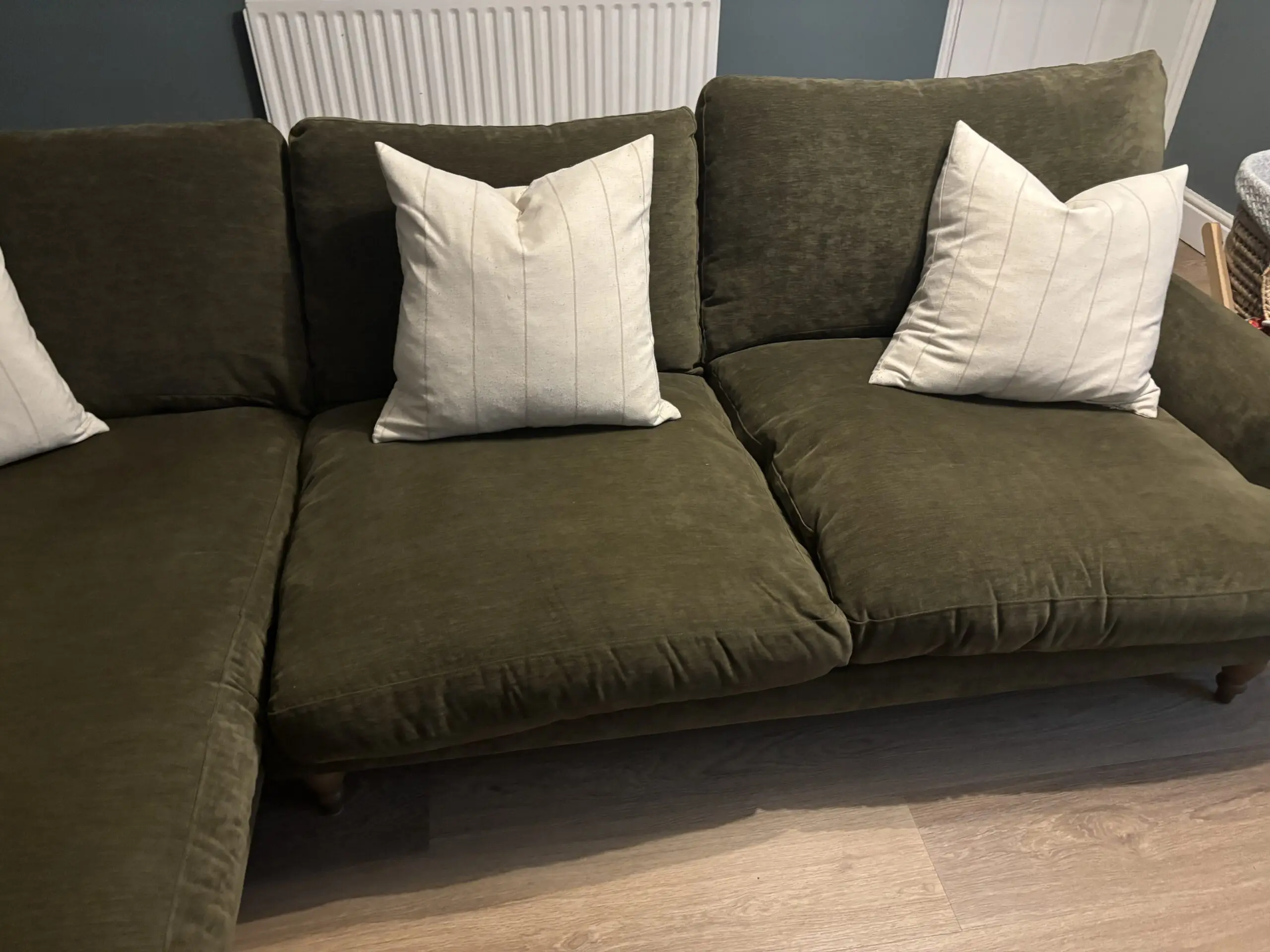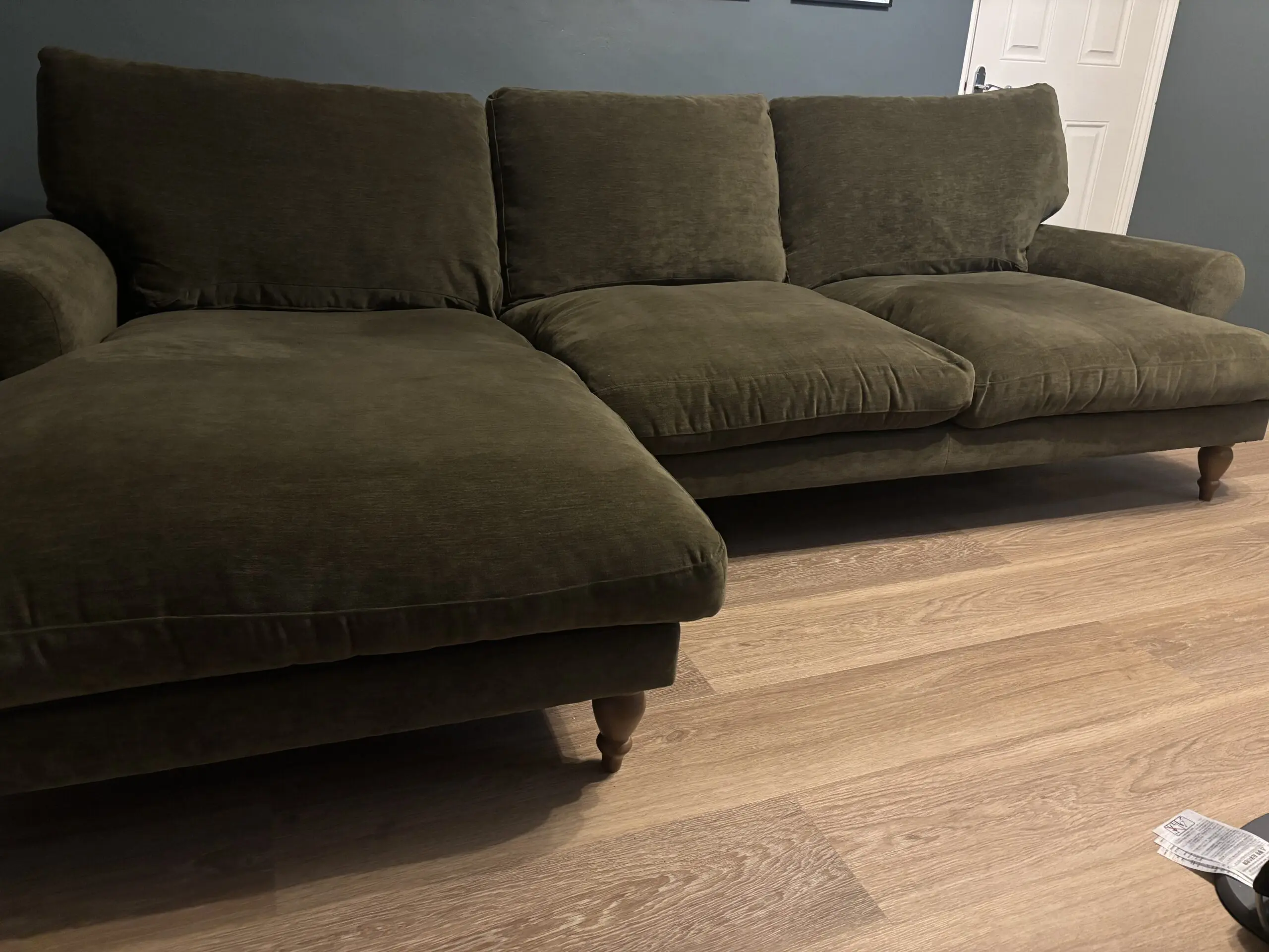 Next large sofa, delivered January 2025. Medium left hand sofa chaise. Excellent condition, selling due to renovations only. No dog hair.