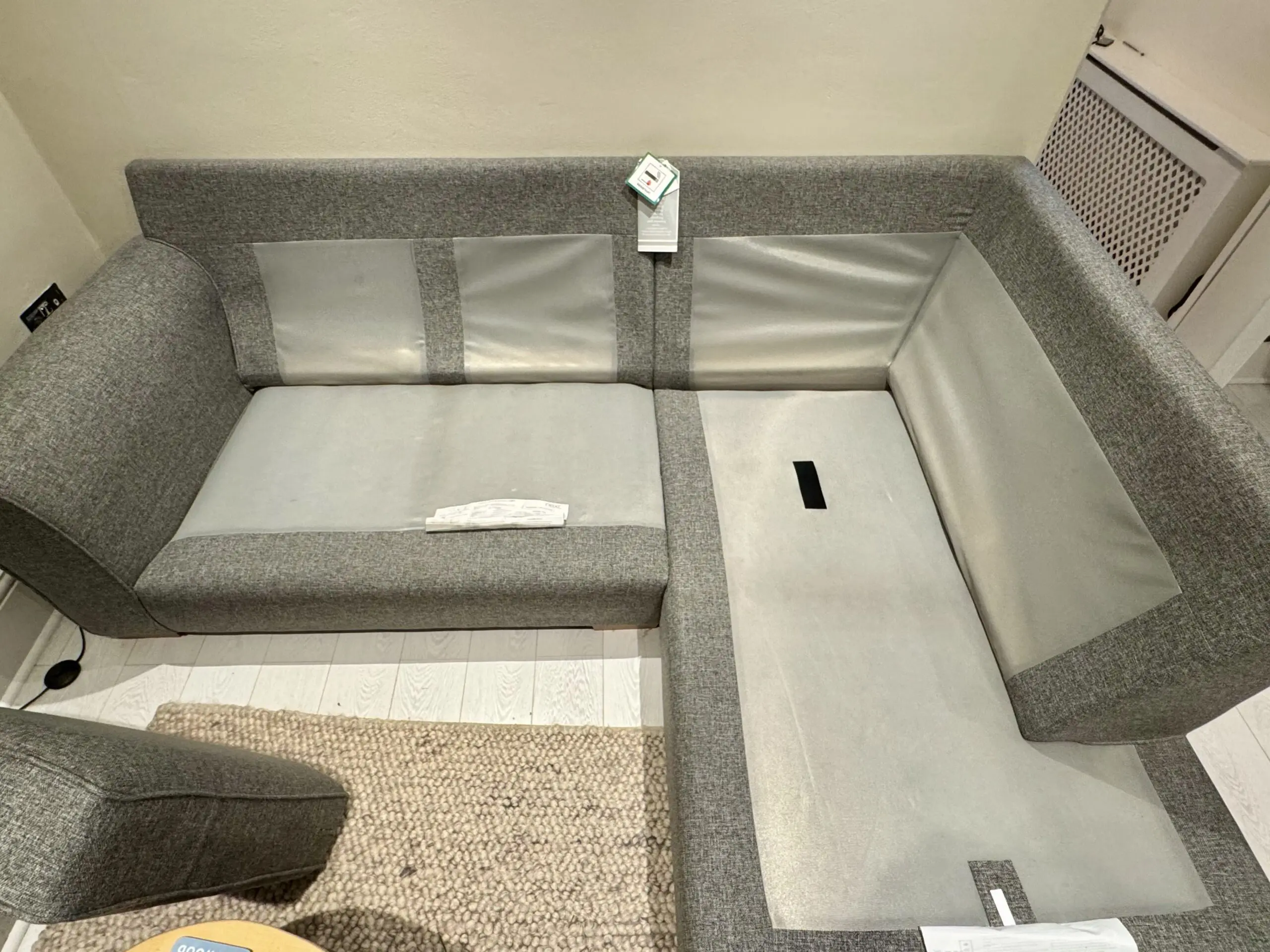 Sofa is in great condition, with no stains or rips. Cushions are still firm, and are very easy to clean as they are reversibe and covers can be removed