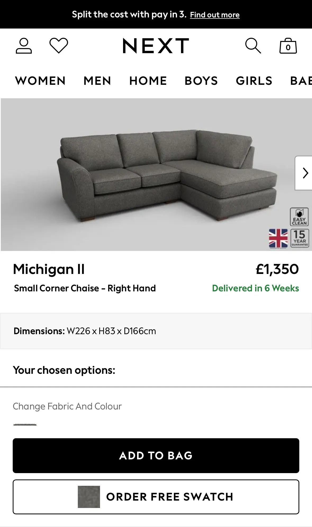 Selling our super comfortable Next Michigan Sofa as we are moving house and it won’t fit in our new place.