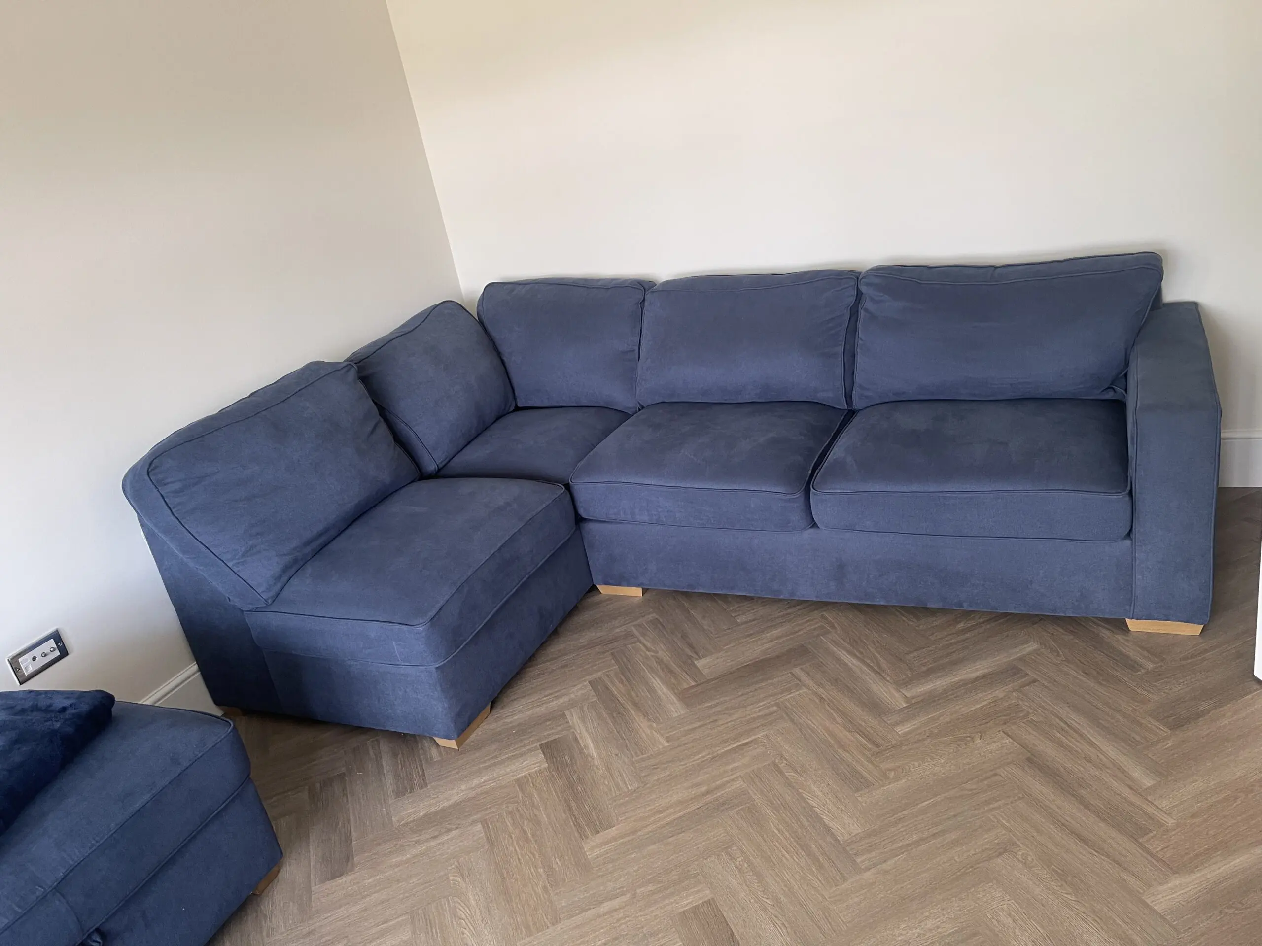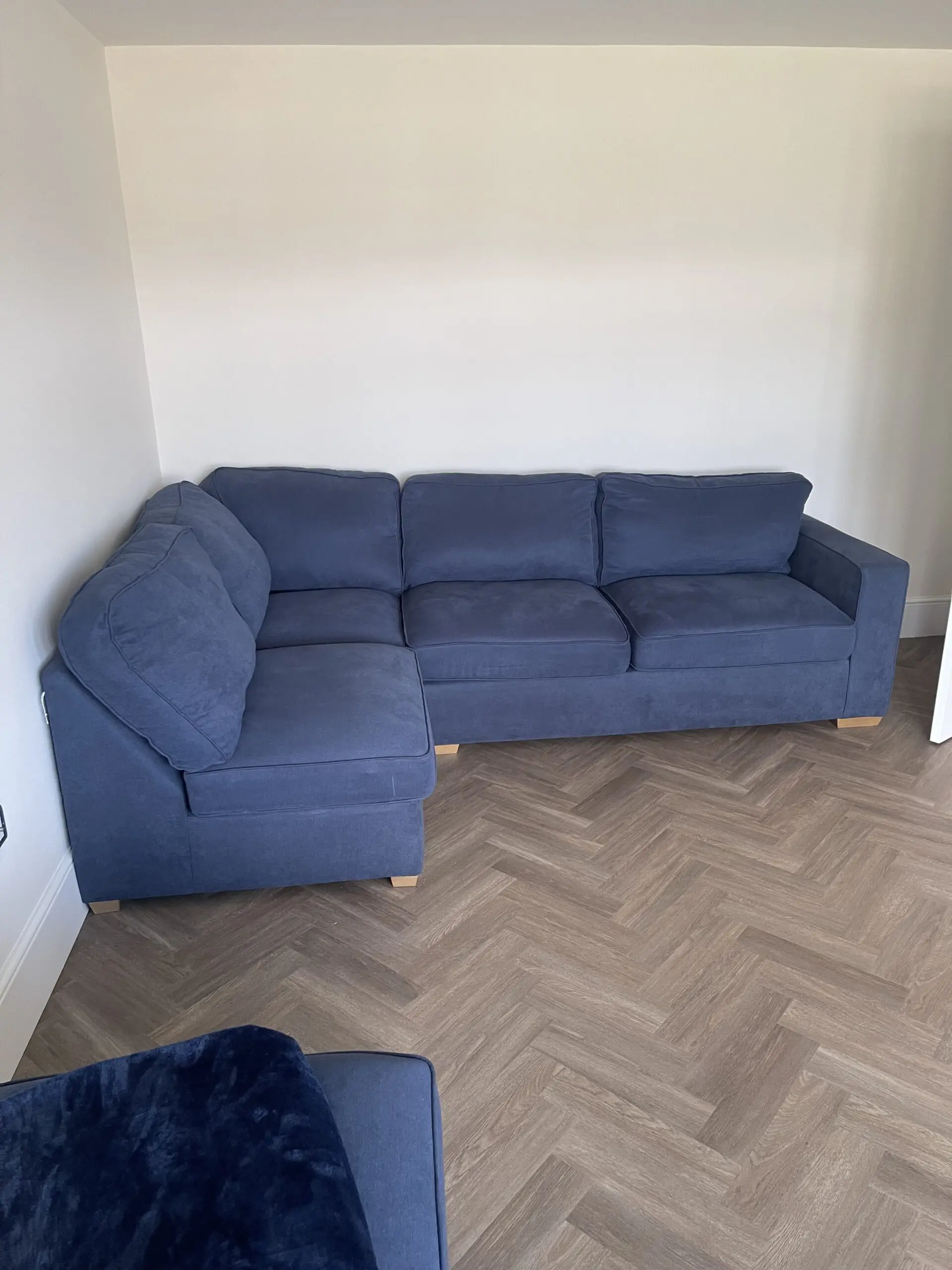 OAK FURNITURE LAND Blue 4 Seaters Corner Sofa – Right Hand Side
