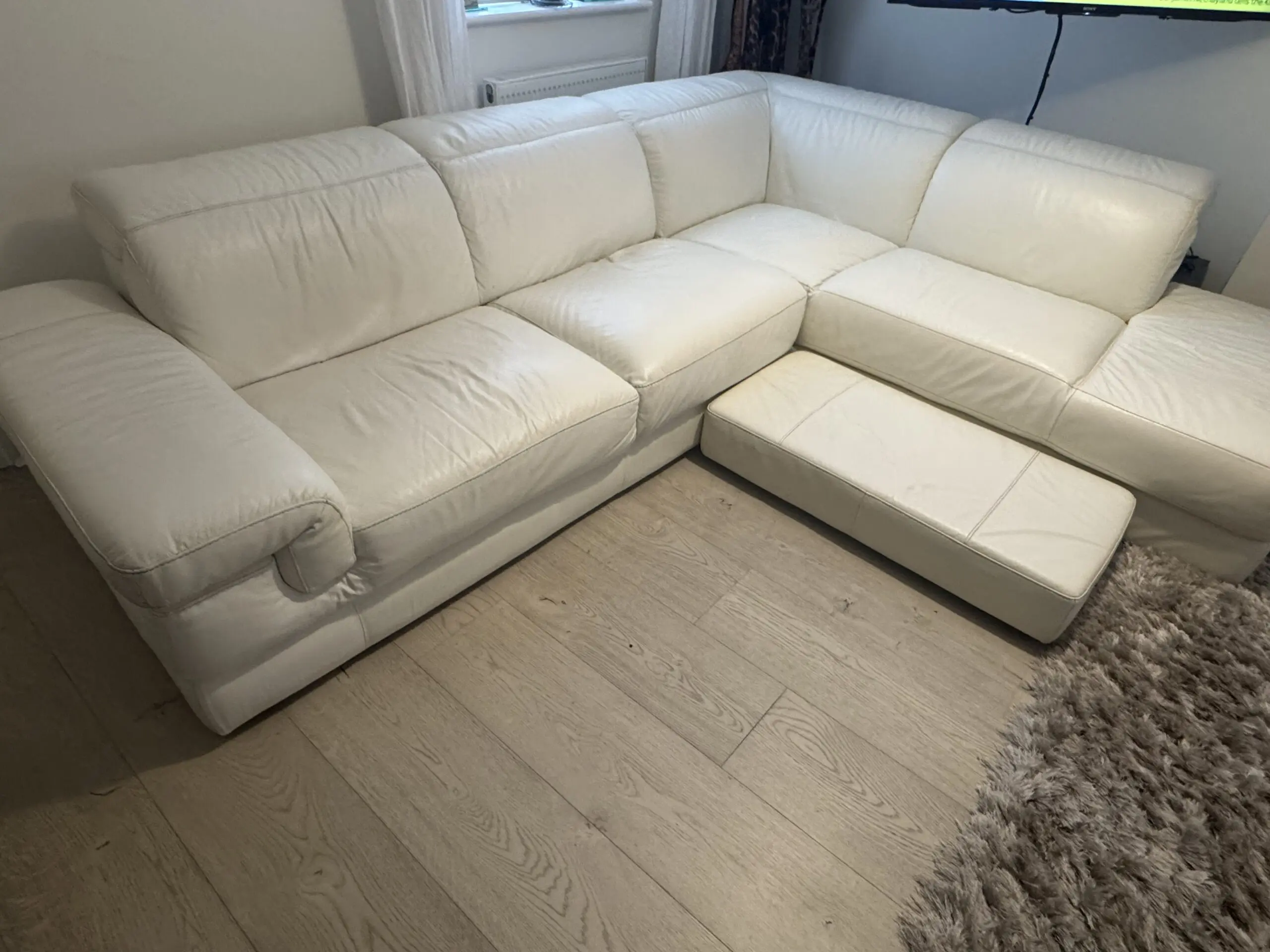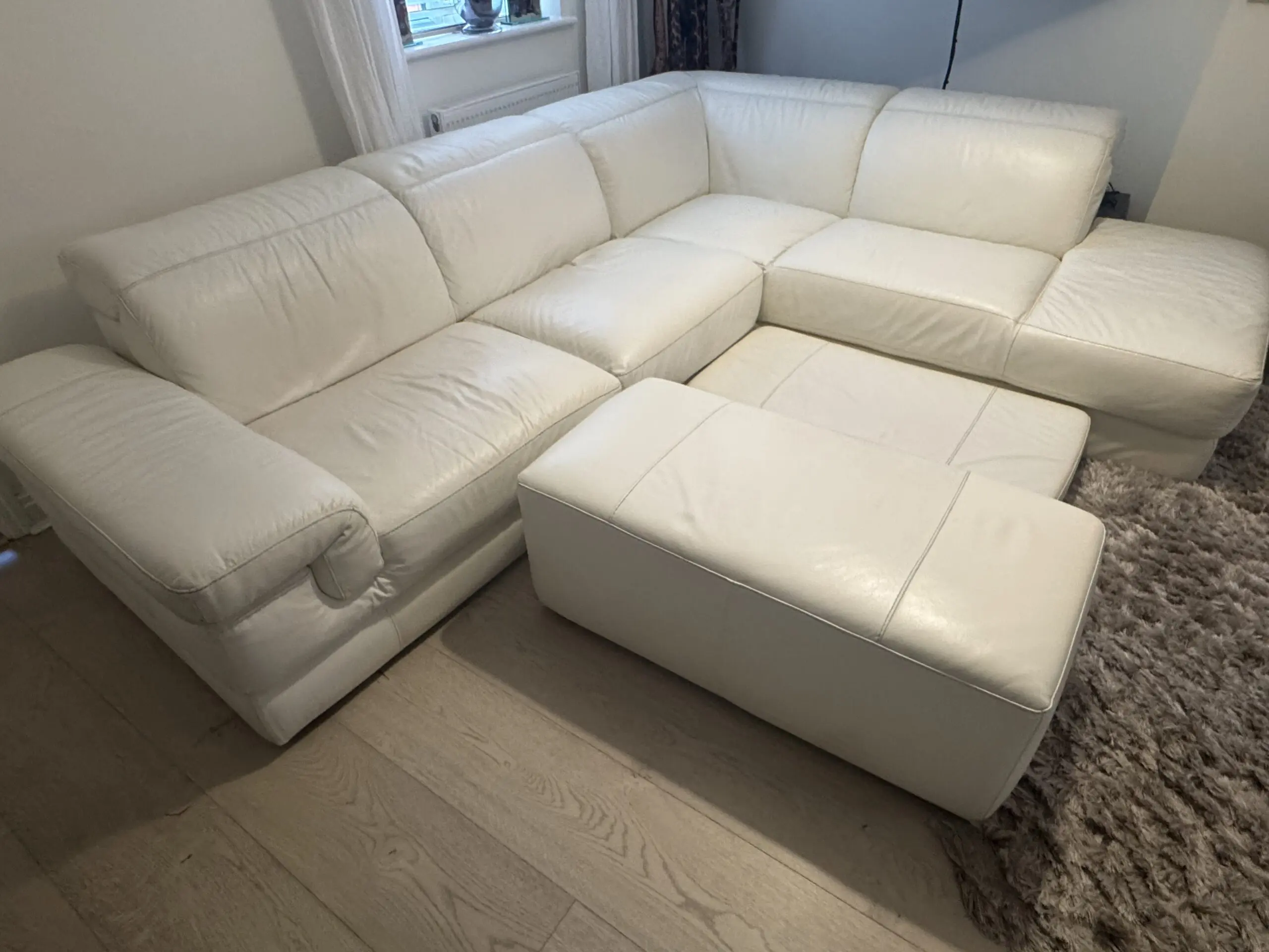 Elegant Cream Italian Leather Corner Sofa – Ottoman Brand – good Condition