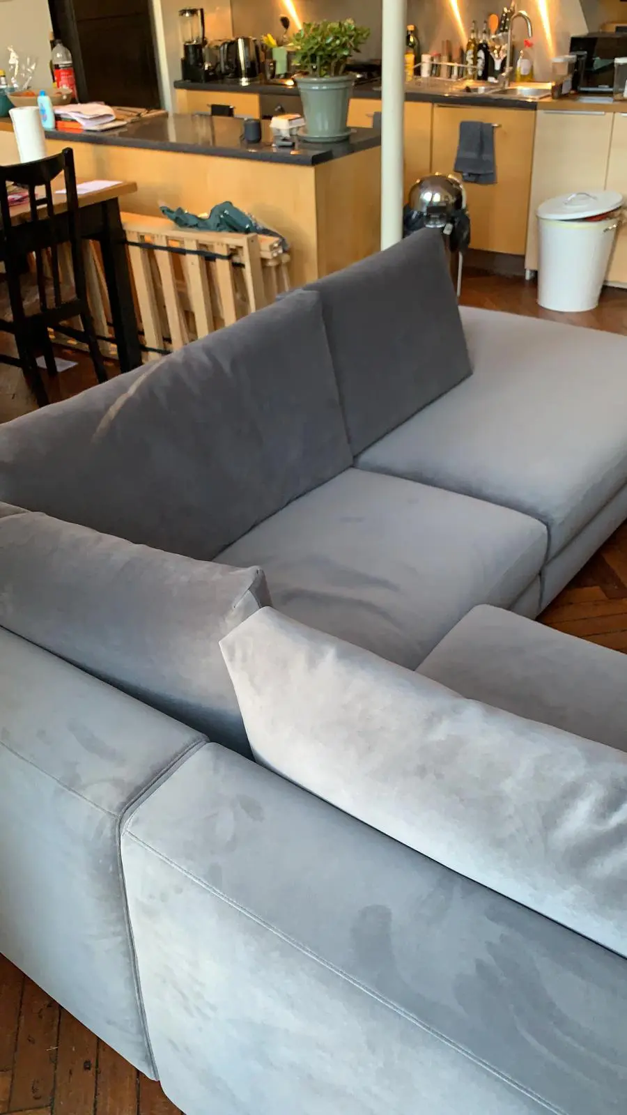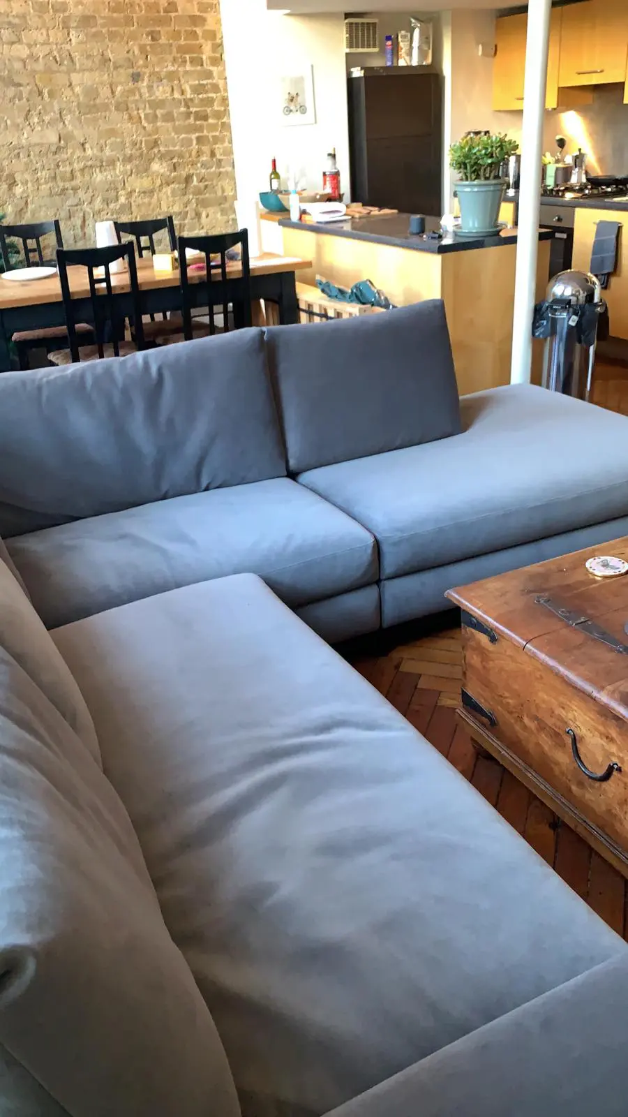 Stunning and extremely comfortable sectional sofa. Sections can be moved around and configurated as needed (they attach securely at the bottom in all configurations). Purchase price £6000. Has been covered ever since we bought it (2022) as we got cats shortly after. Selling as does not fit into new home. It is in perfect condition. We barely enjoyed it as, as I said, it has never been not covered. Very good bargain.