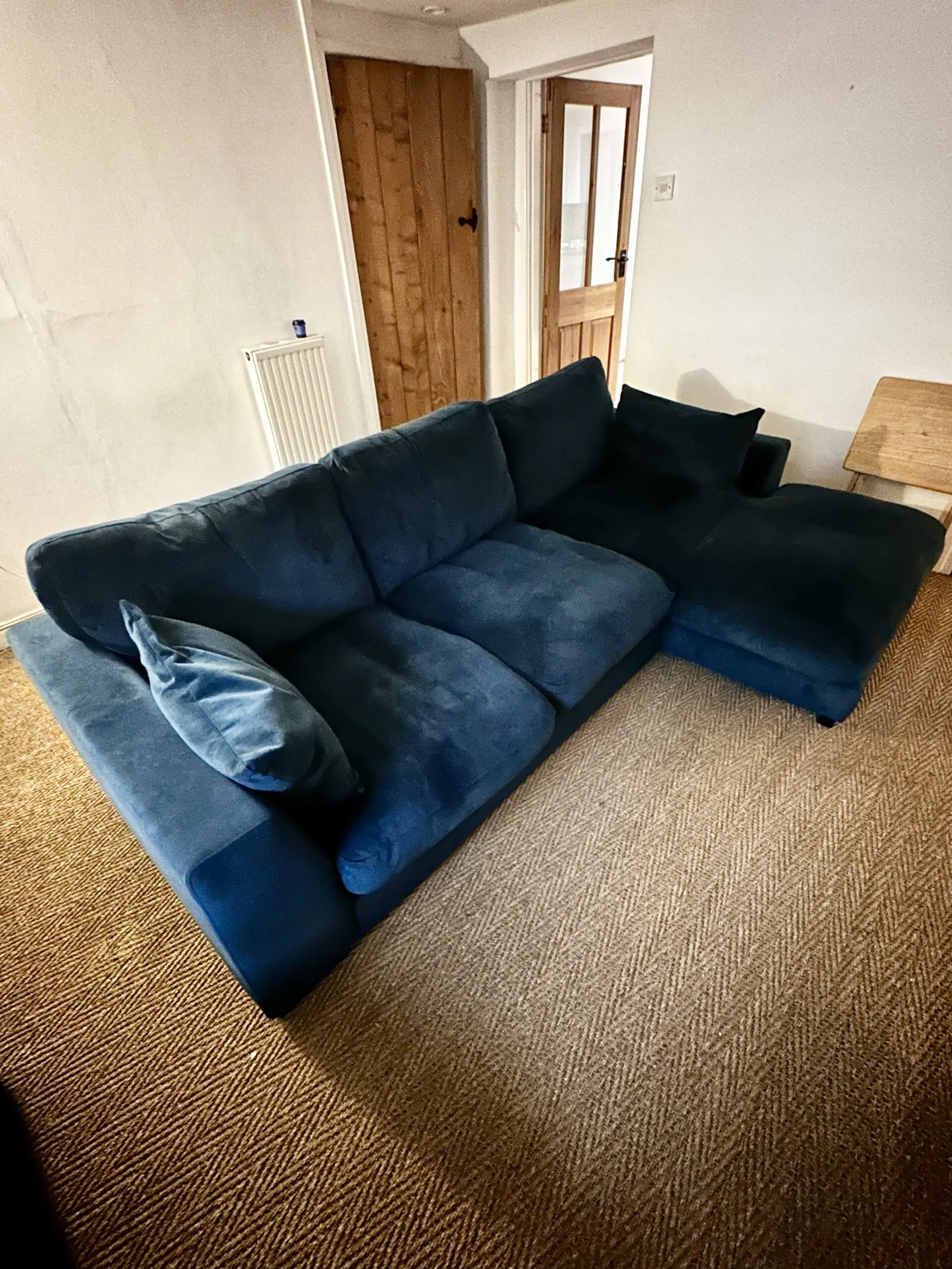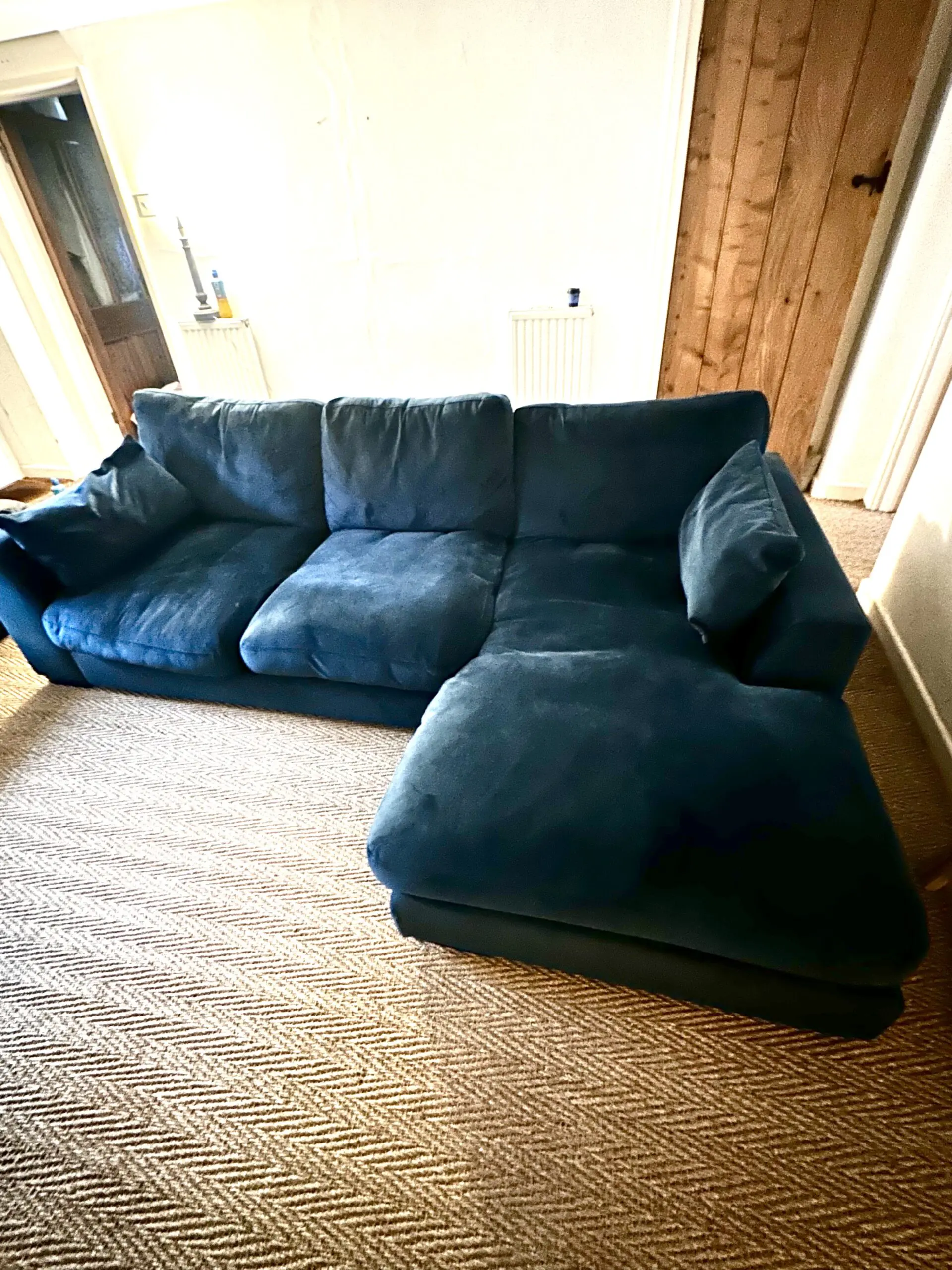Plush Velvet right hand dancing chaise sofa and Cuddler Sofa RRP £2088