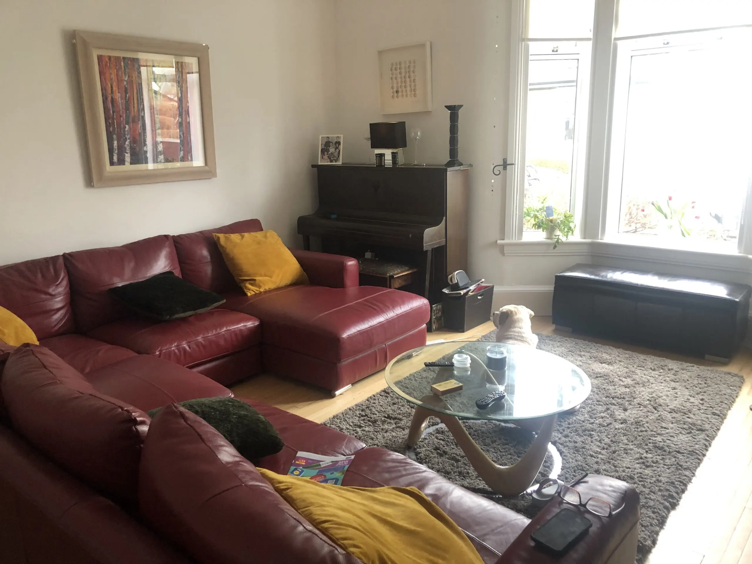 Lovely corner leather sofa. Includes an extra seat (78cm) that can be removed or switched to different side. Only selling because we are downsizing.