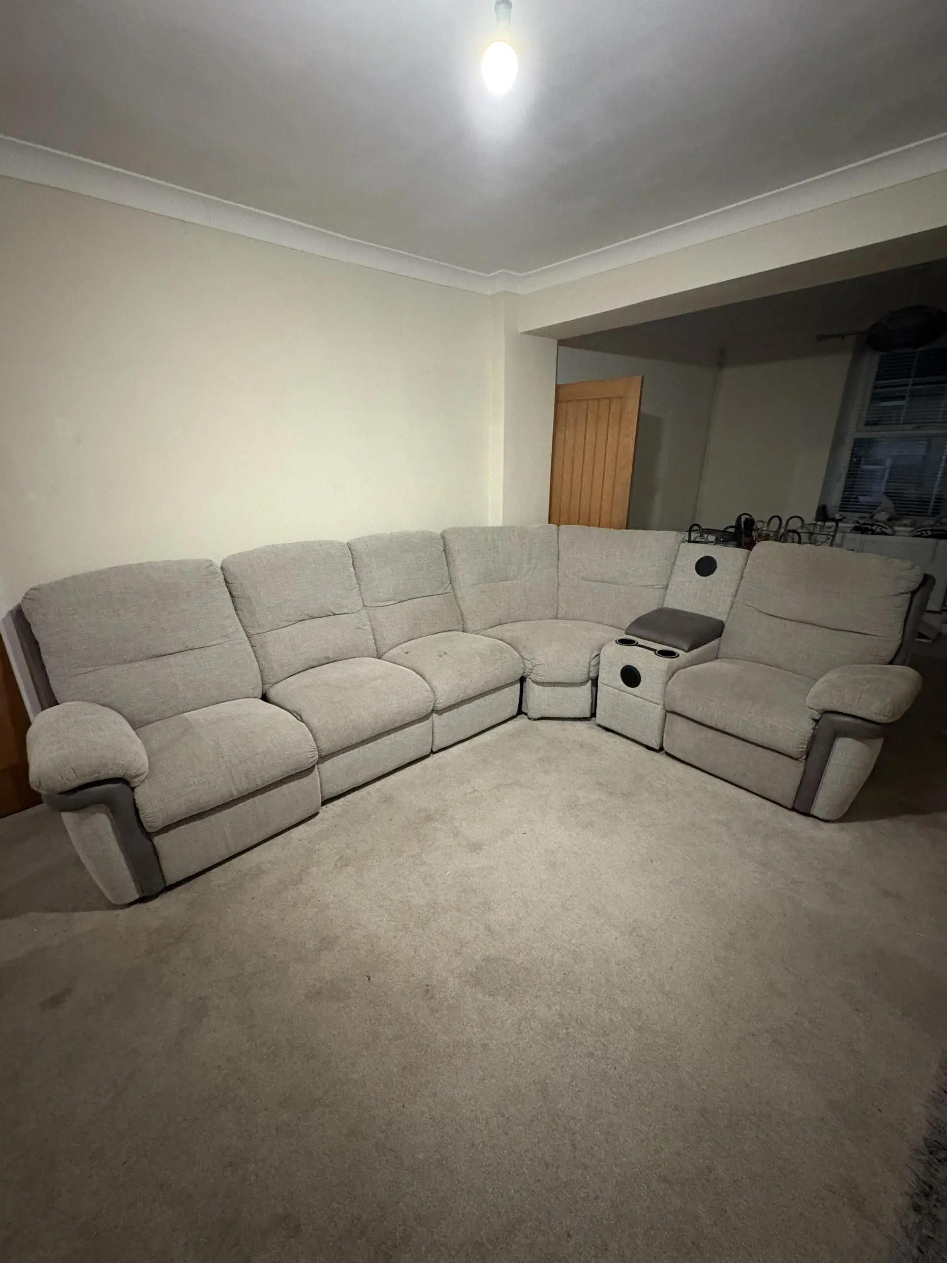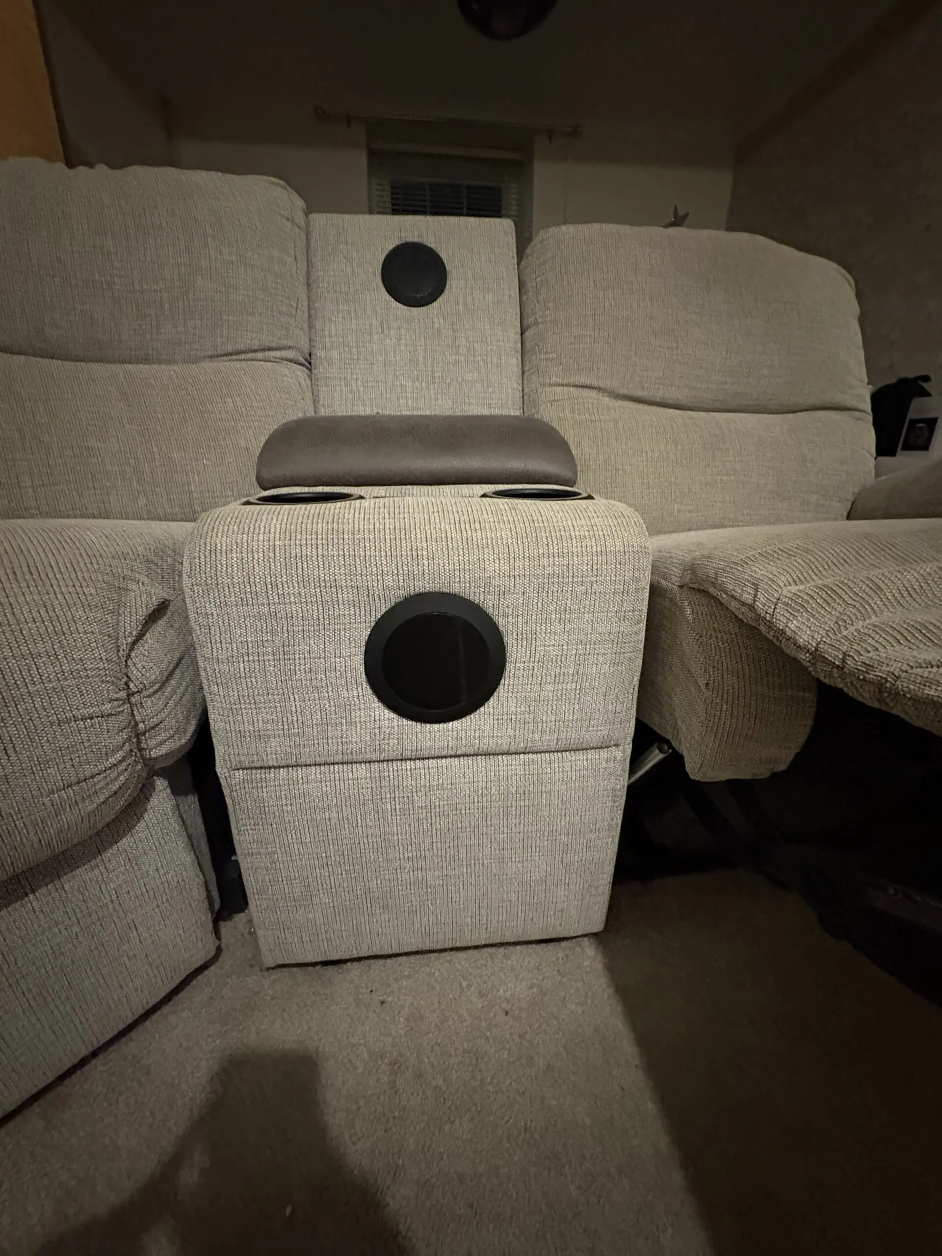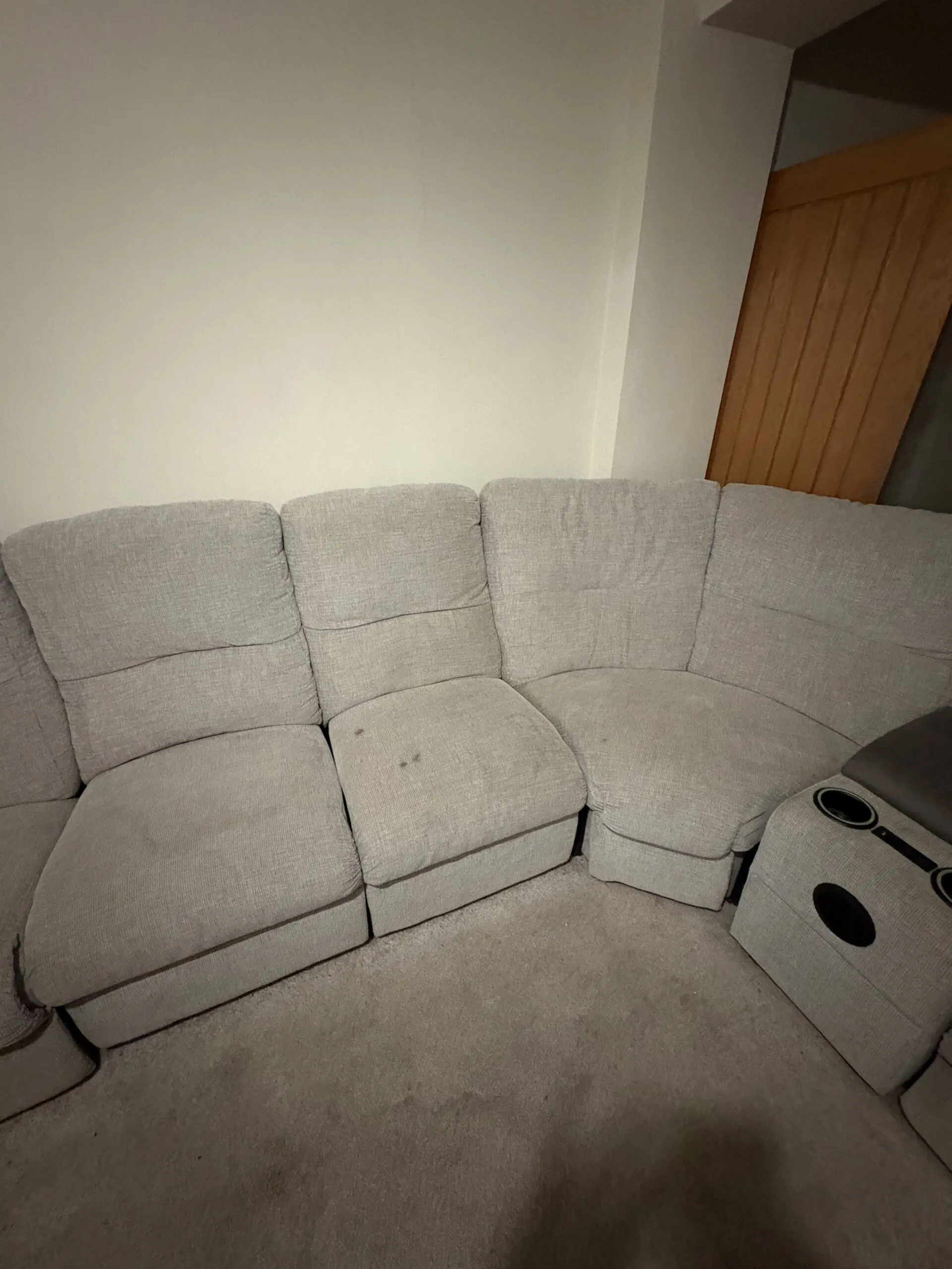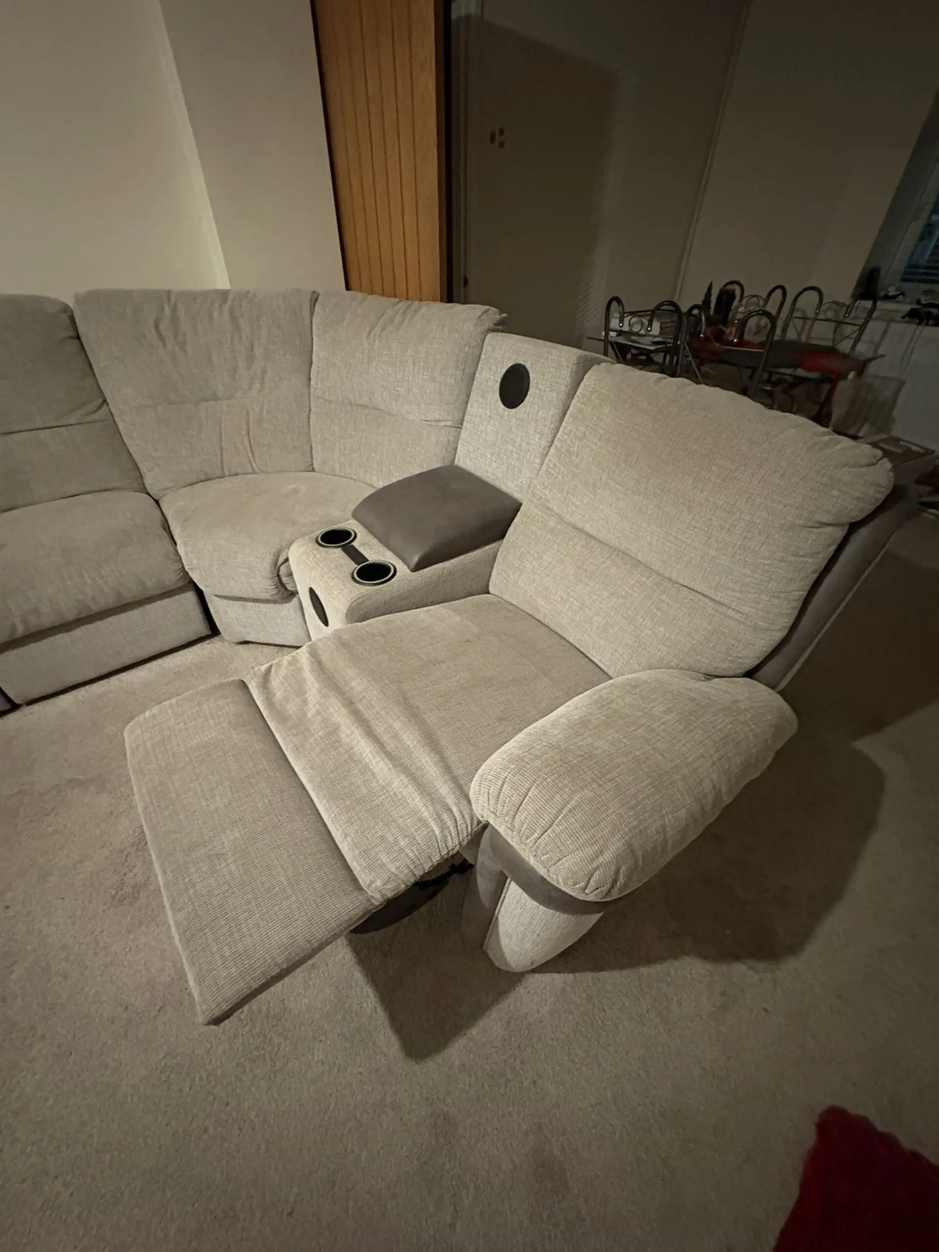 SCS grey large sofa with built in cup holders and speakers