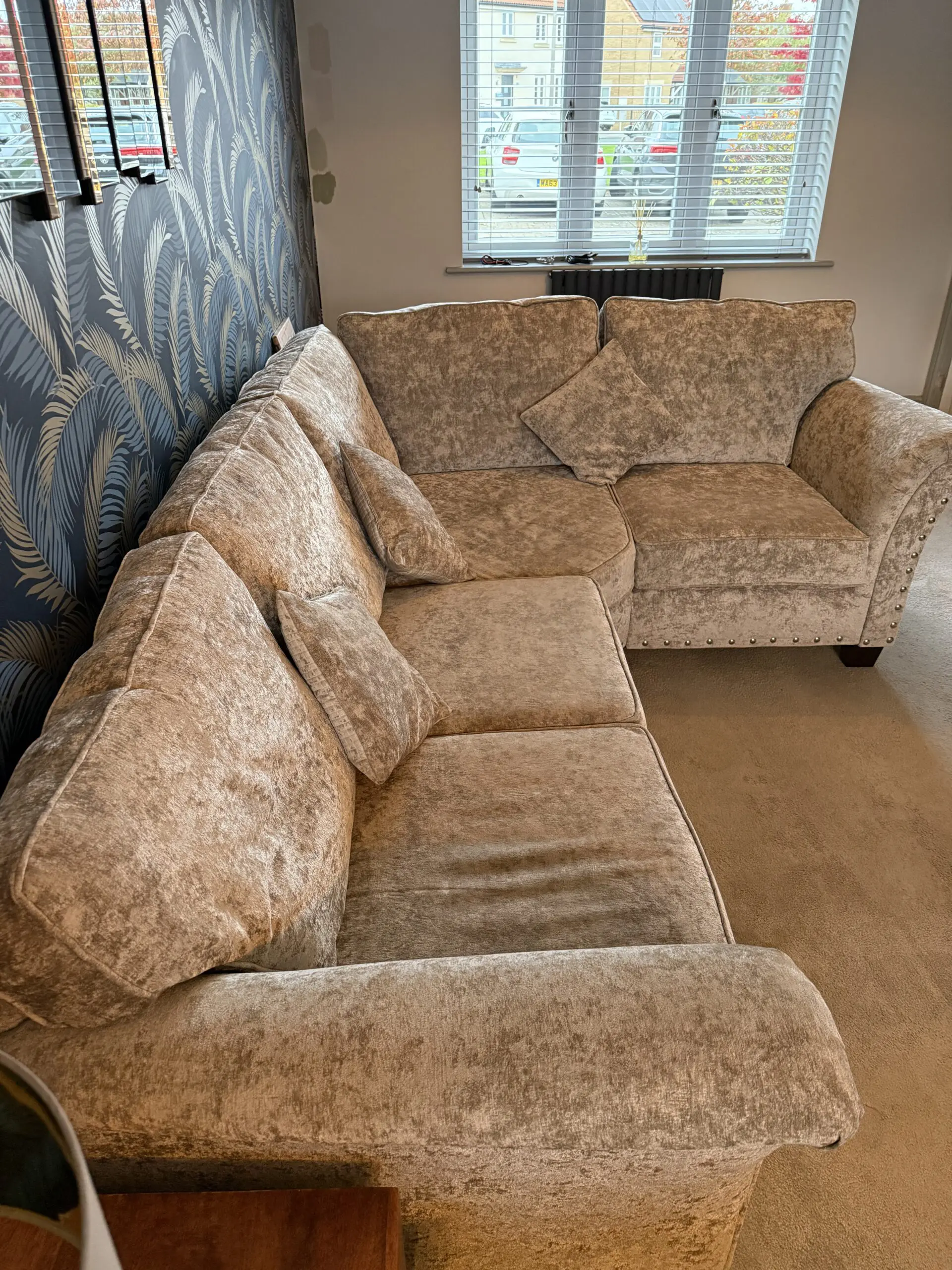 Good condition, comfortable corner sofa. Some additional measurements are: depth 95cm and seat depth 60cm. Sofa was purchased early 2021.