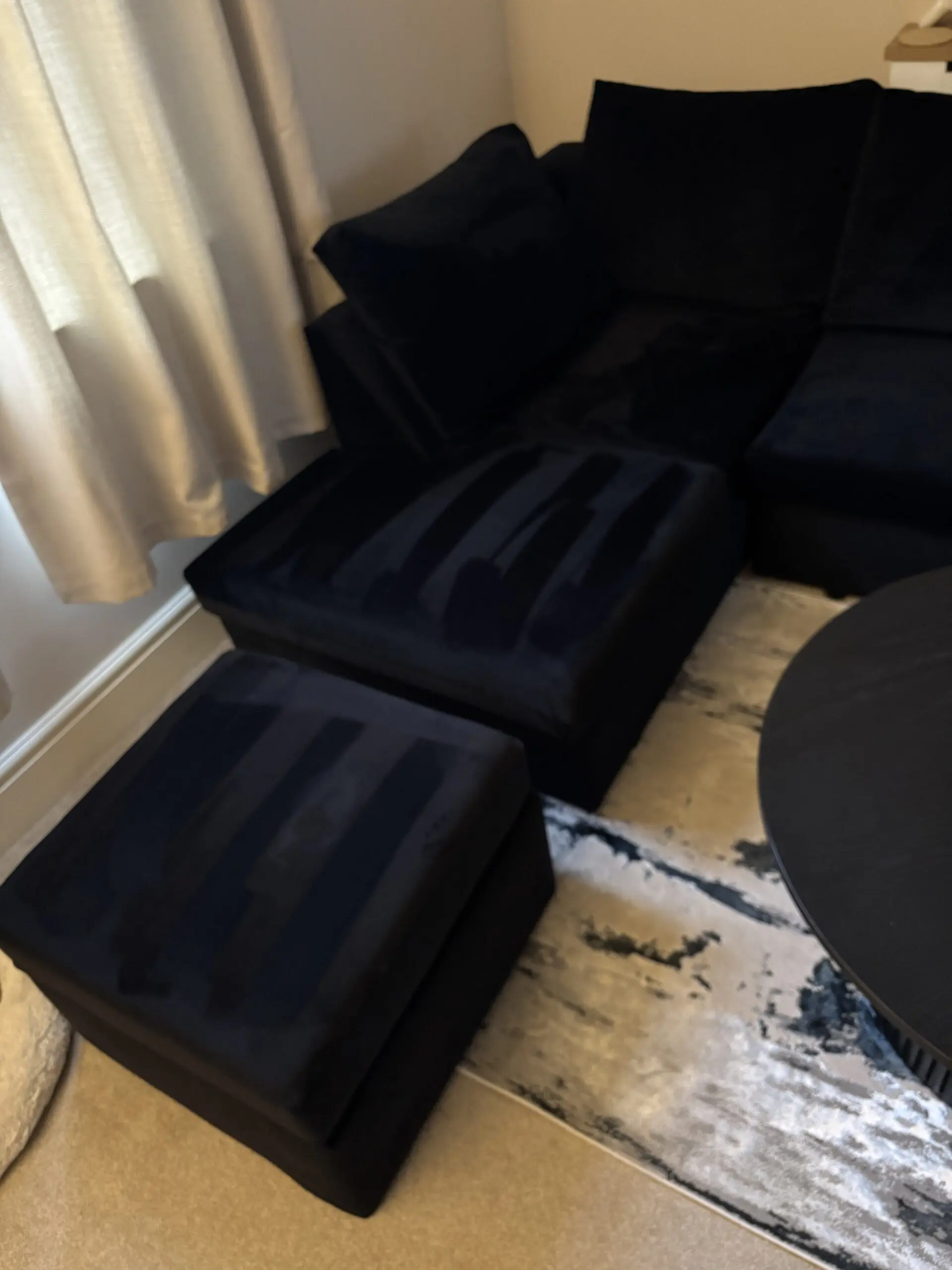 Comes with a free small pouffe bought separately for it is smaller (55cm x 55cm)