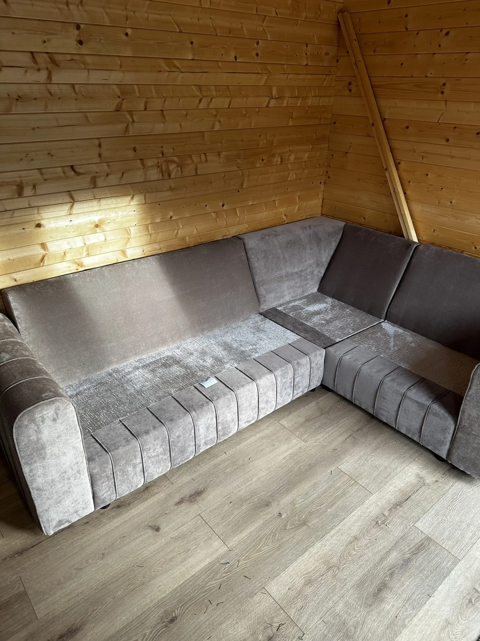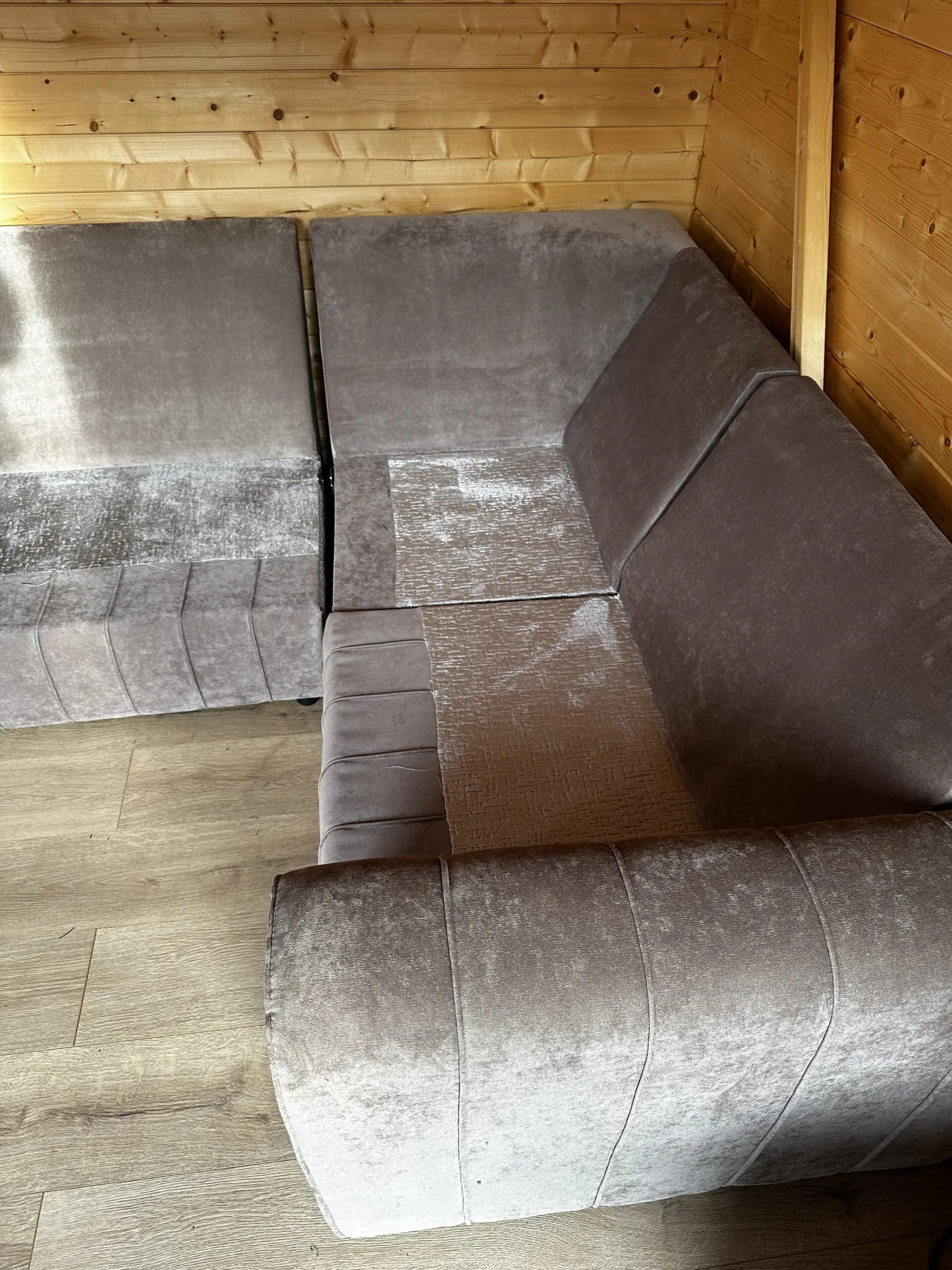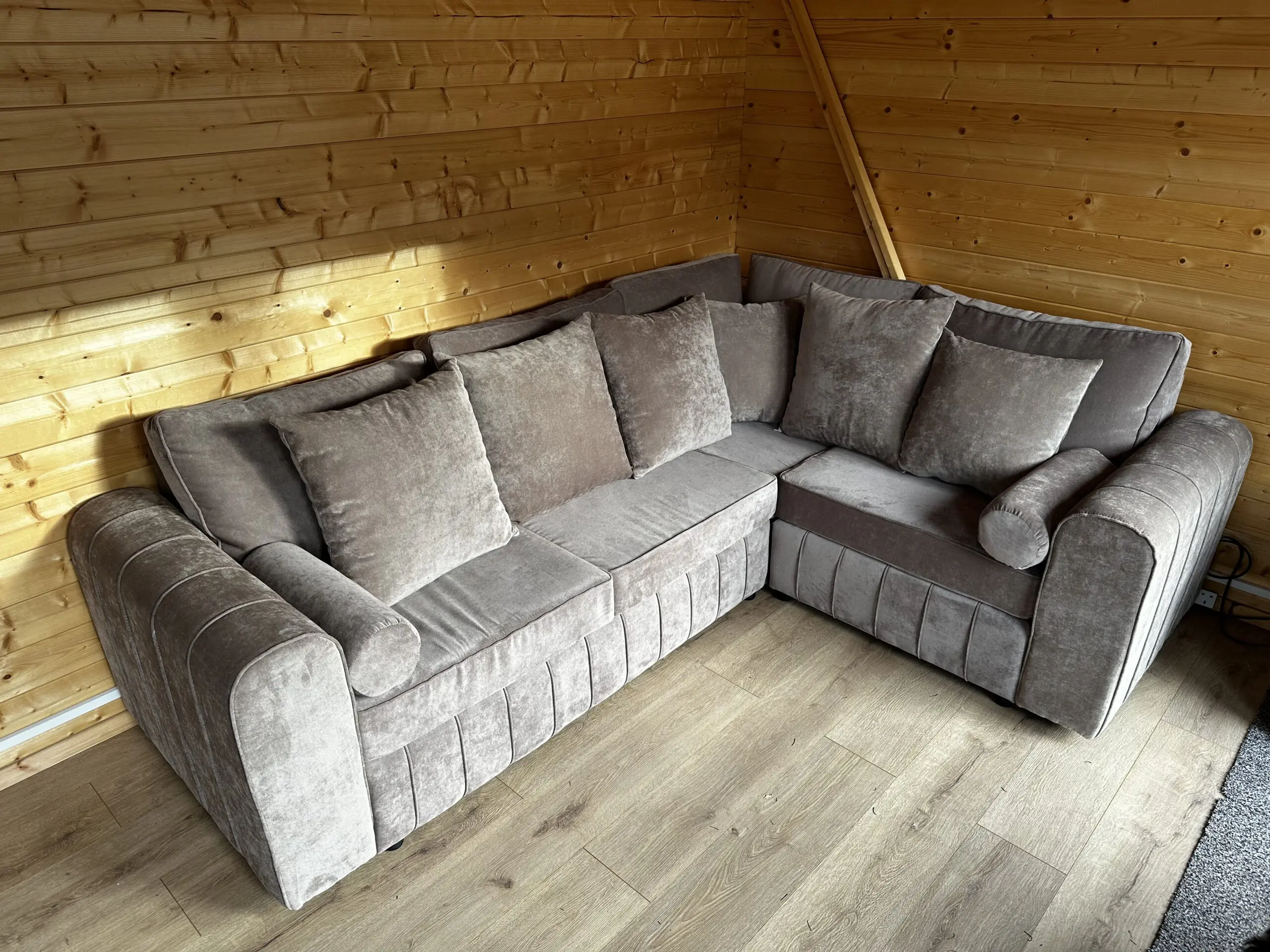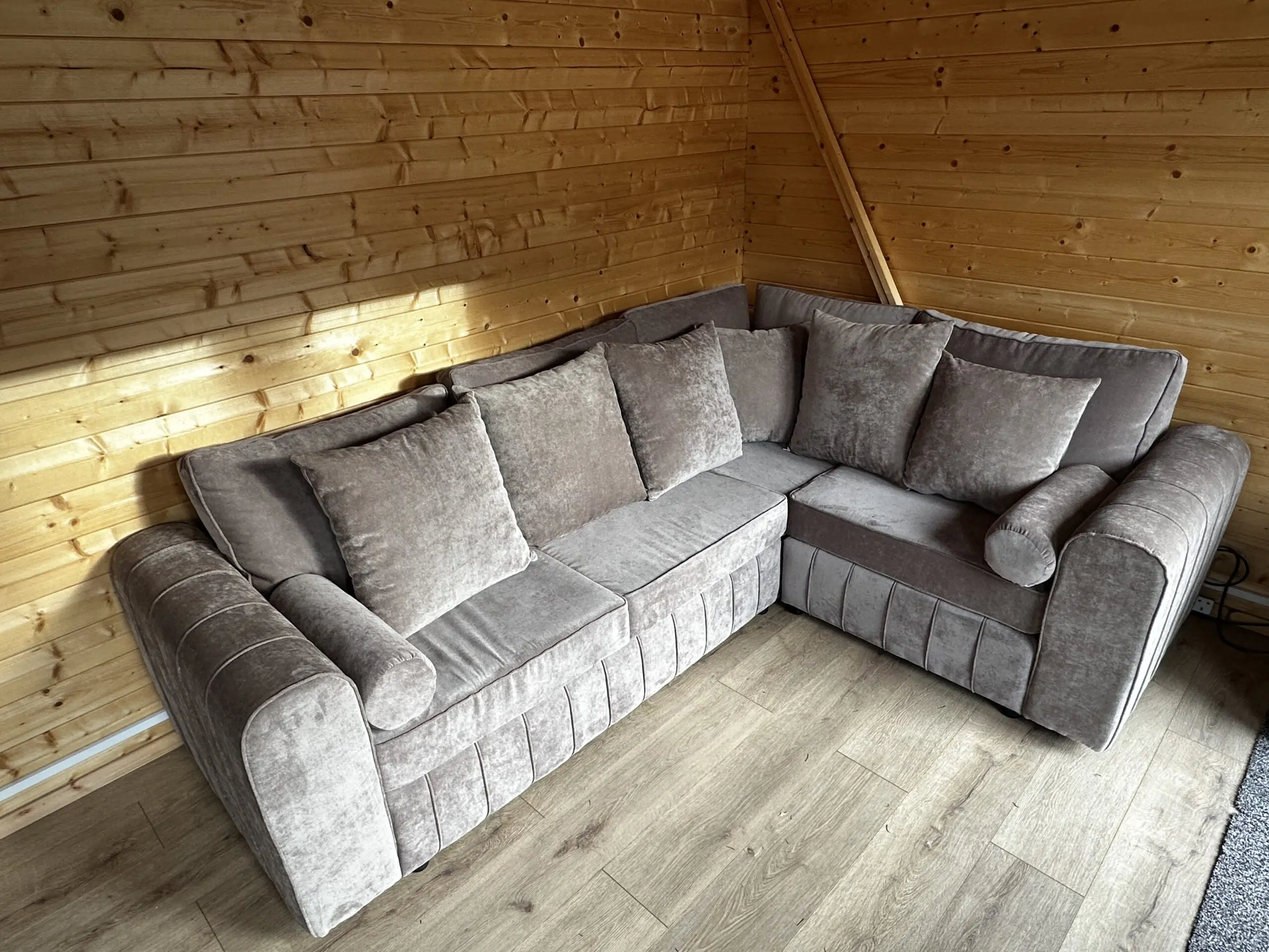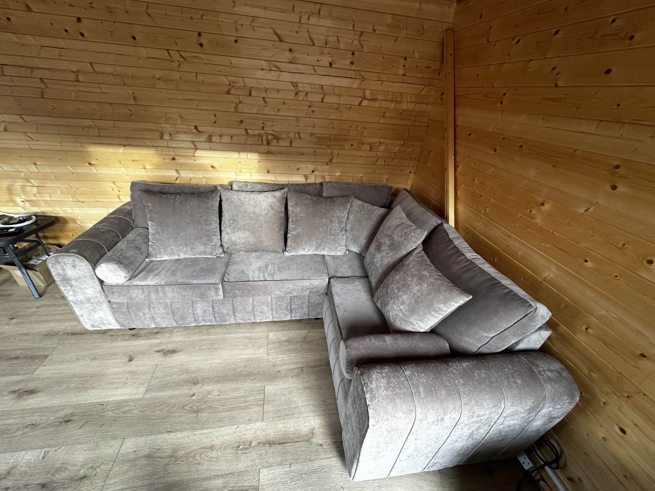 Corner sofa in mink, 2400 x 1800mm outside measurement