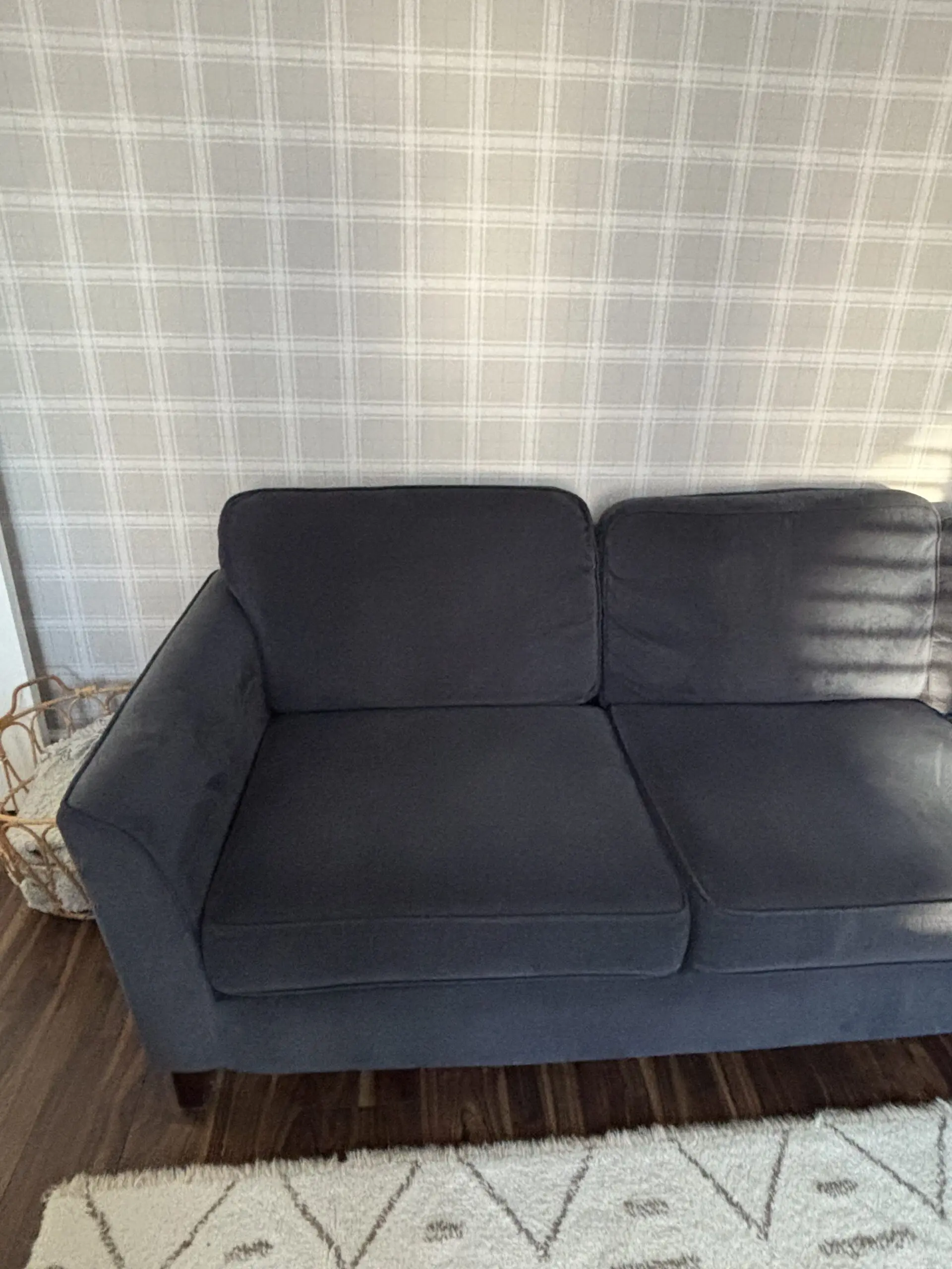 There are a few minor marks to the legs, which can be hidden & small water marks on the fabric which can be eradicated with a full clean but it has been very well cared for, the frame has a 15 year guarantee and the sofa is of very high quality.