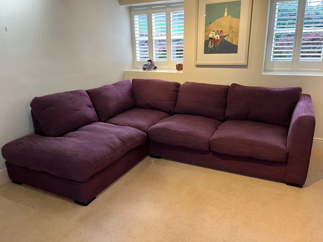 Price reflection of this being an expensive very well made sofa when we bought new from Sofas & Stuff, Harrogate, and that there is a small tear repair. Currently from approx £5000 new depending on the fabric.