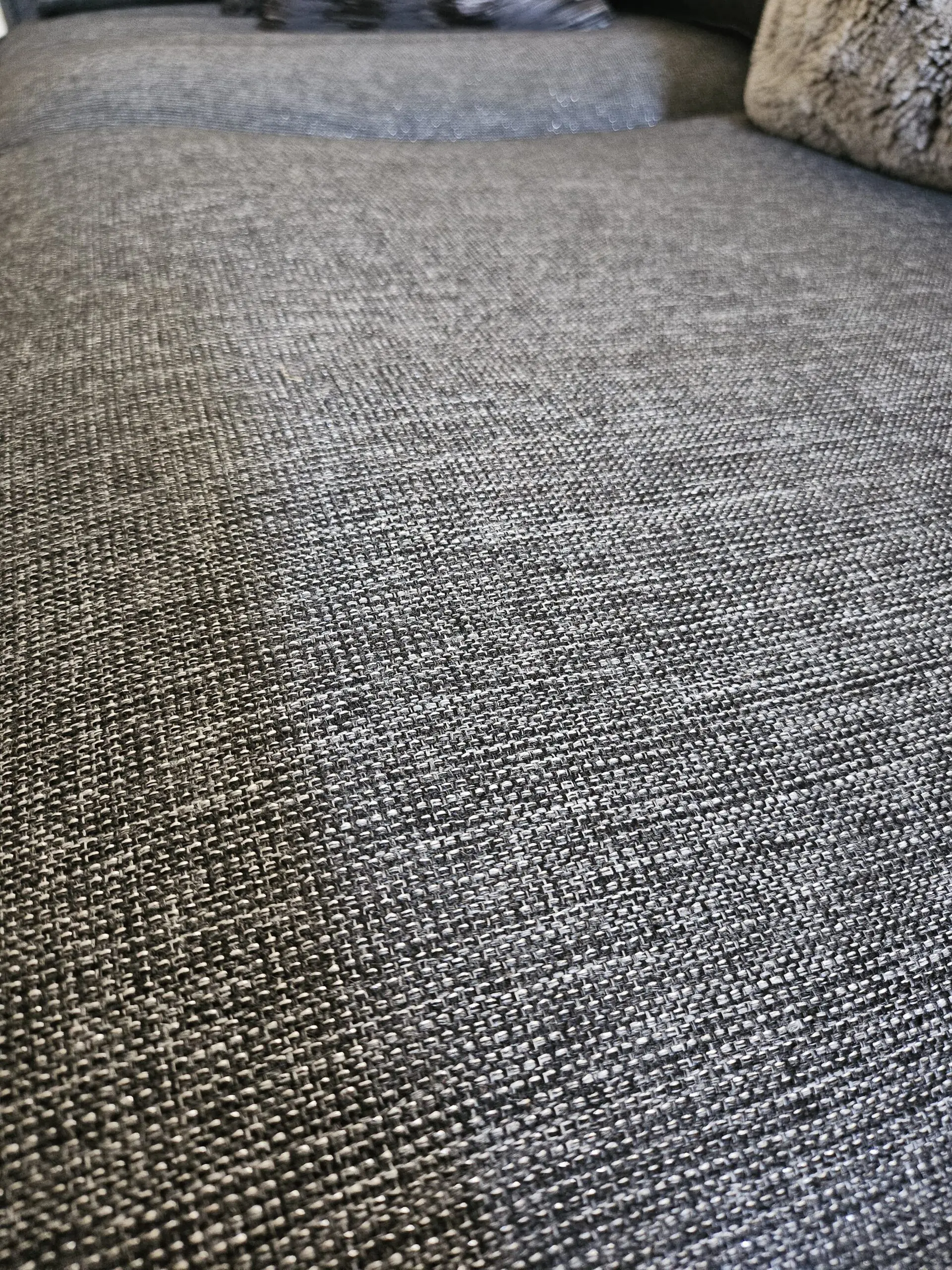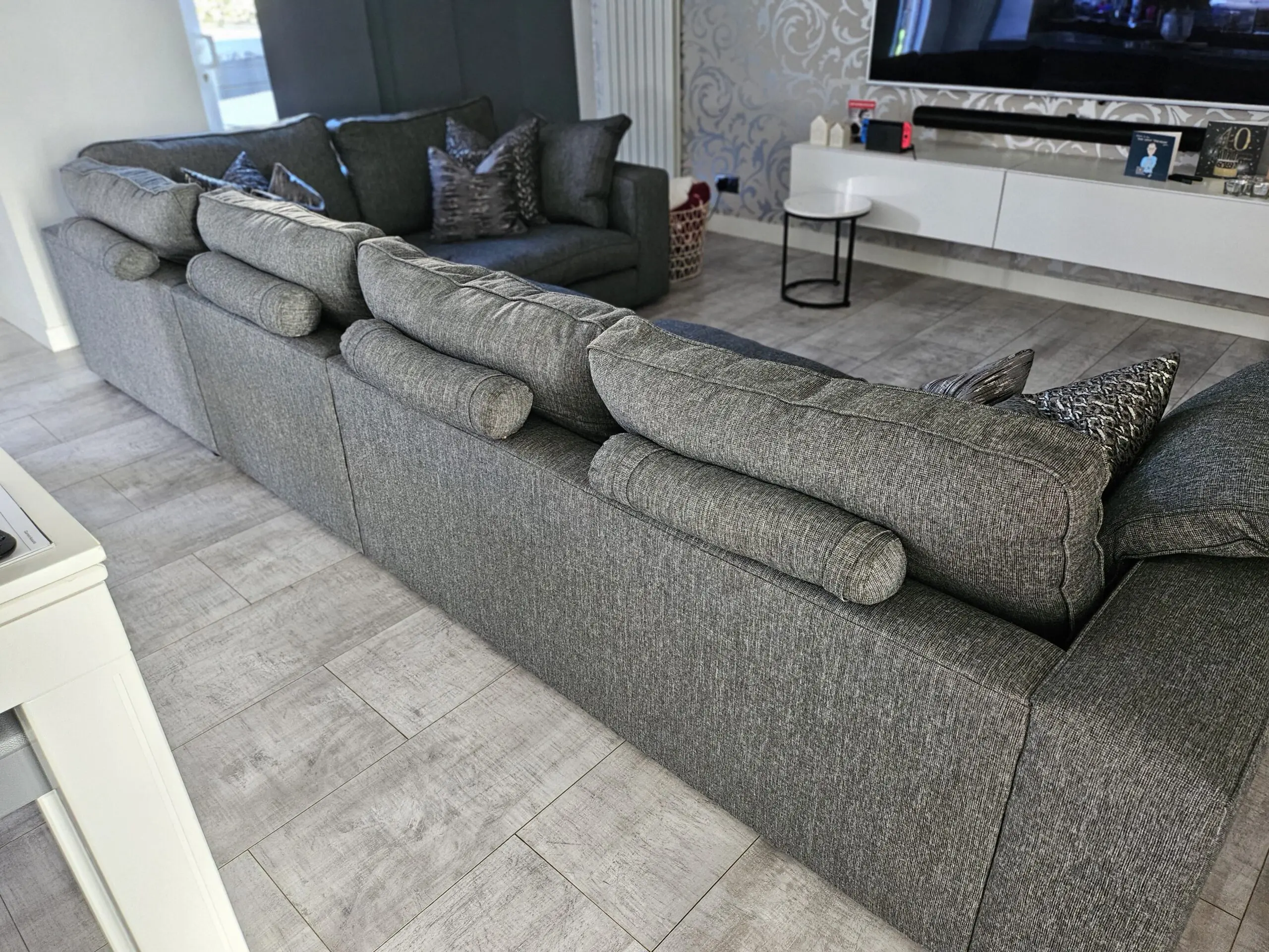 In flawless condition, no marks, stains or rips. Still have the sofology cleaning kit which came with it. Extra armless seat was purchased with the order to make it longer can be removed to make the sofa smaller. Comes with foot stool which also has storage.