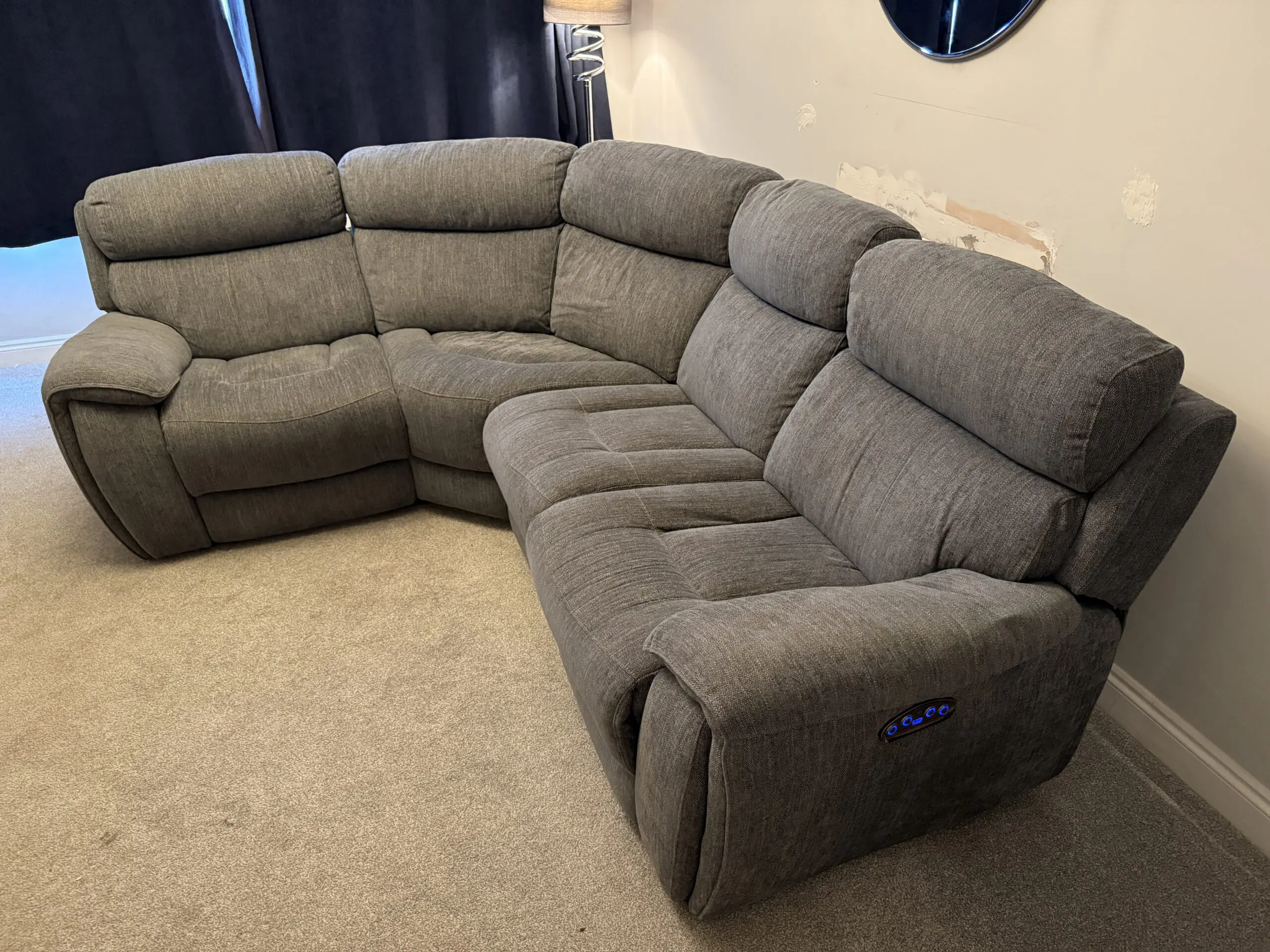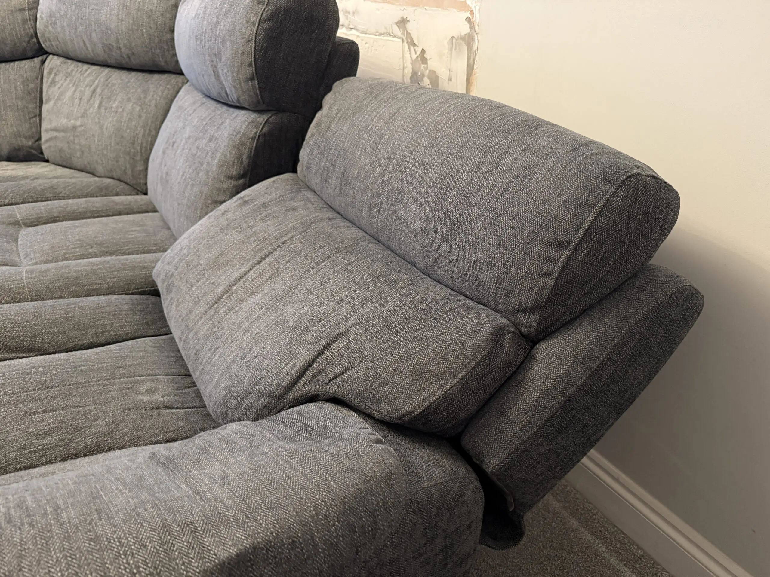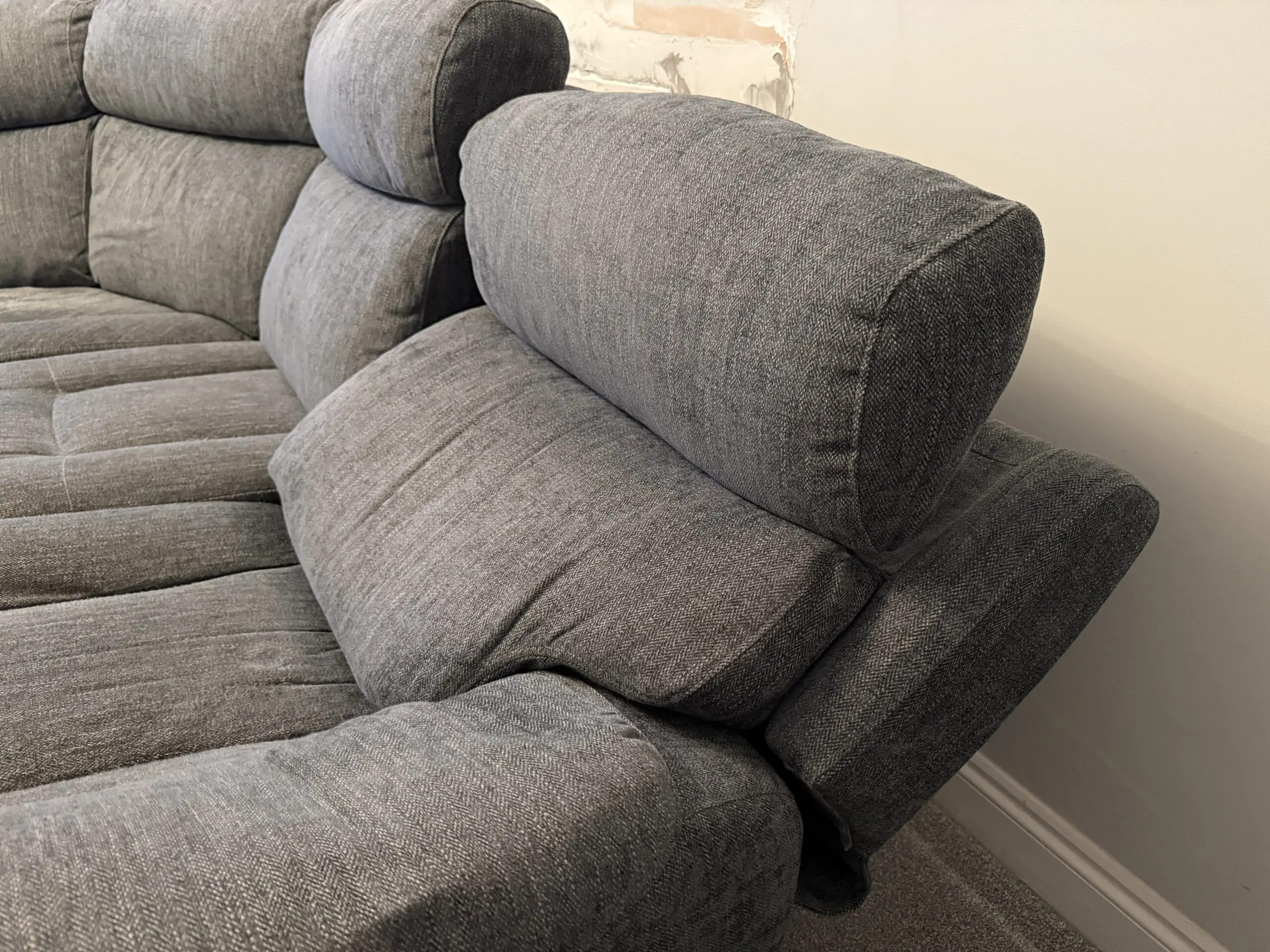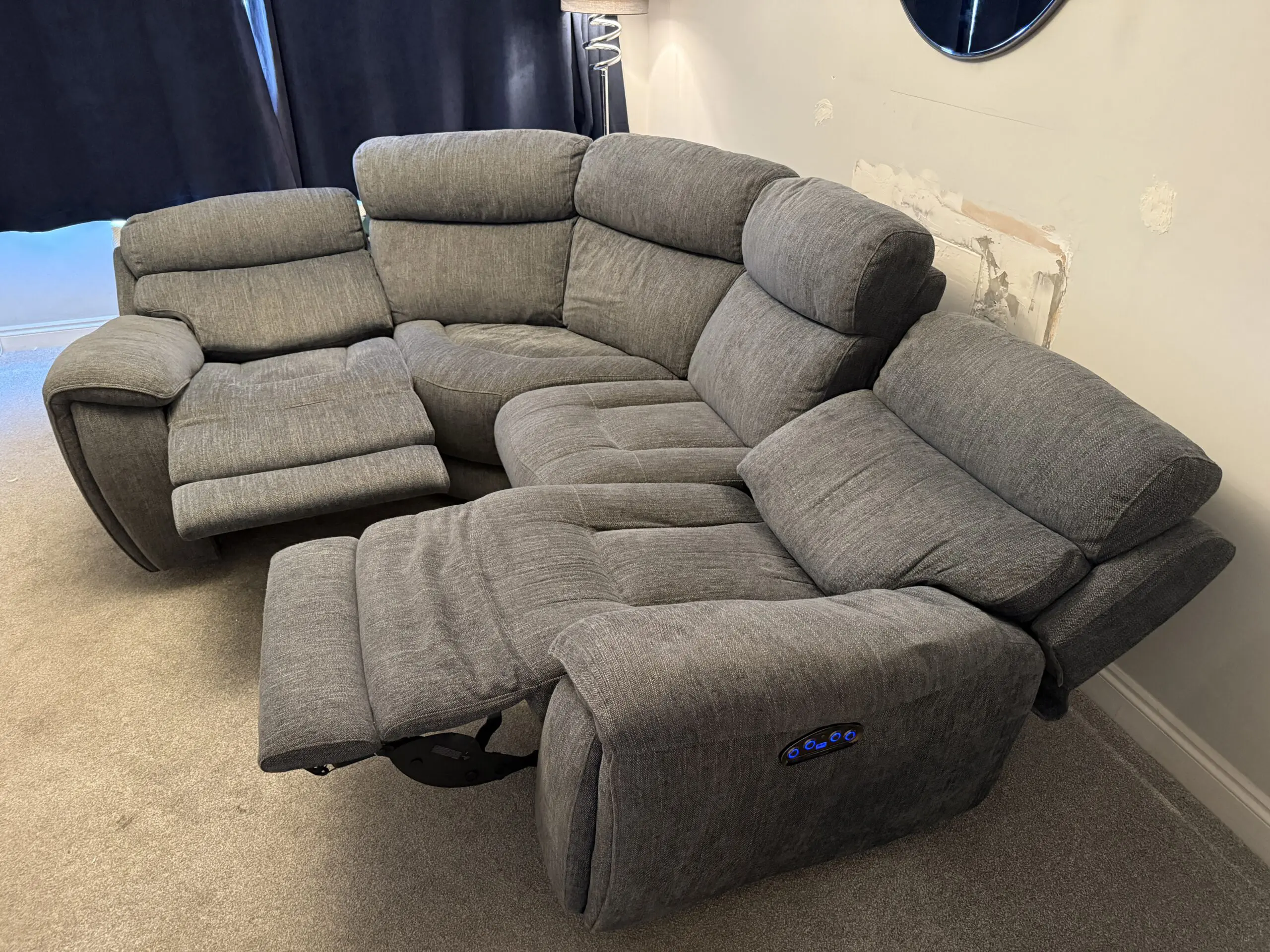 Dark grey 2x electric recliner sofa with 2x power headrest and USB charging points.