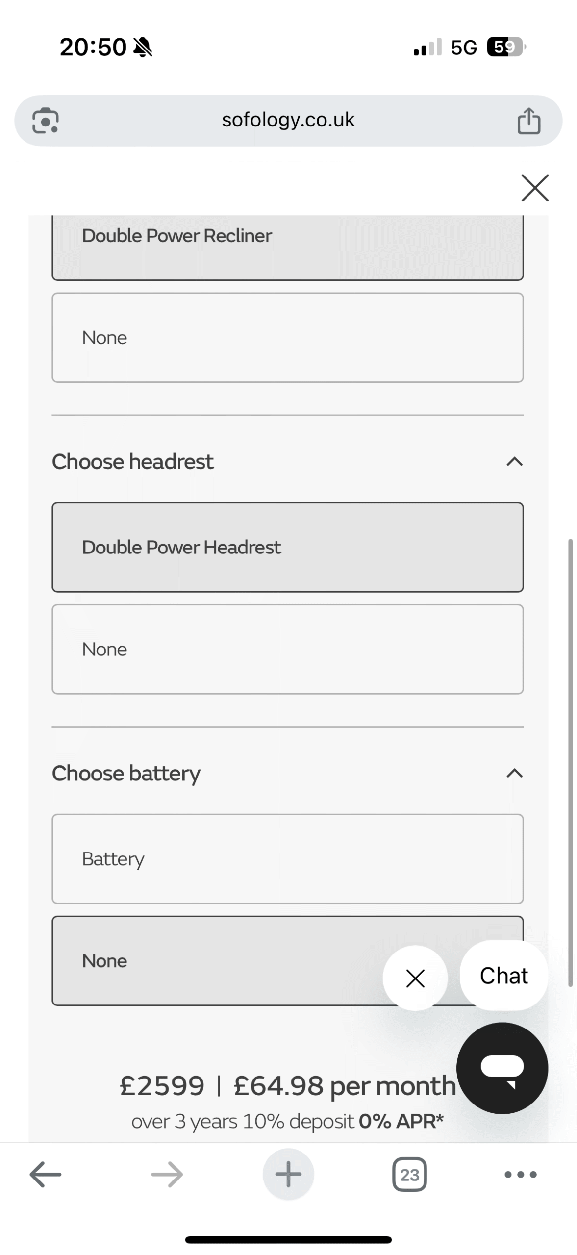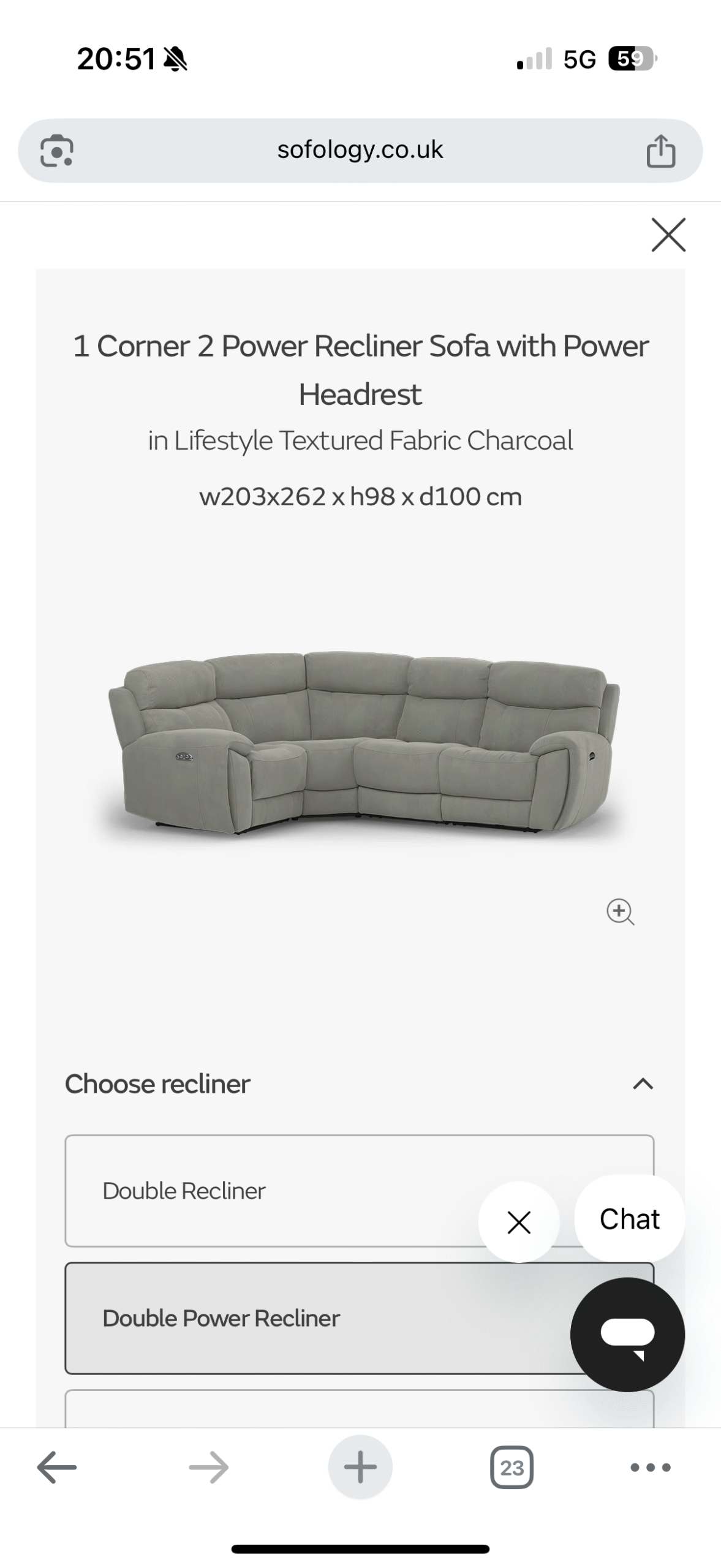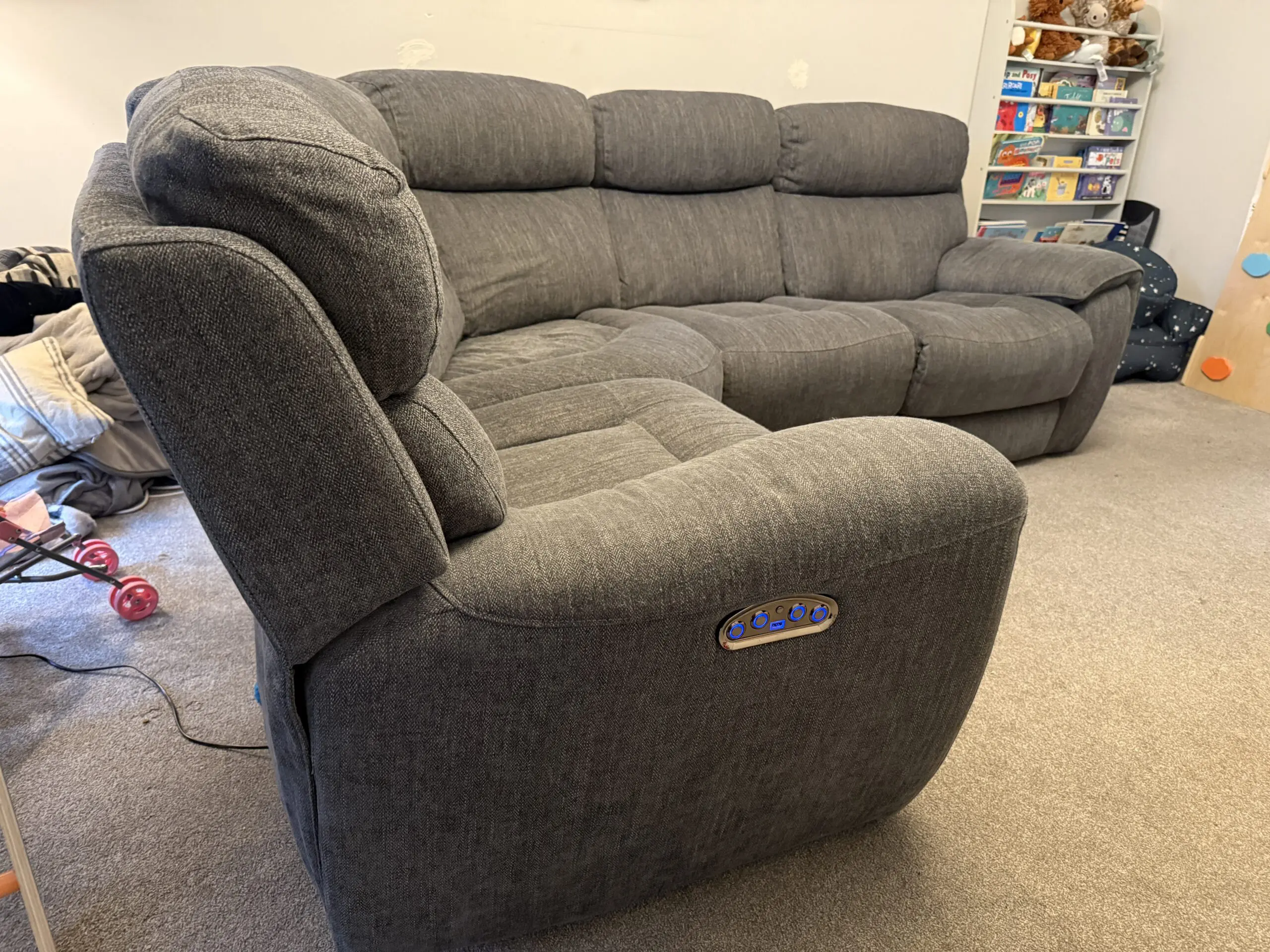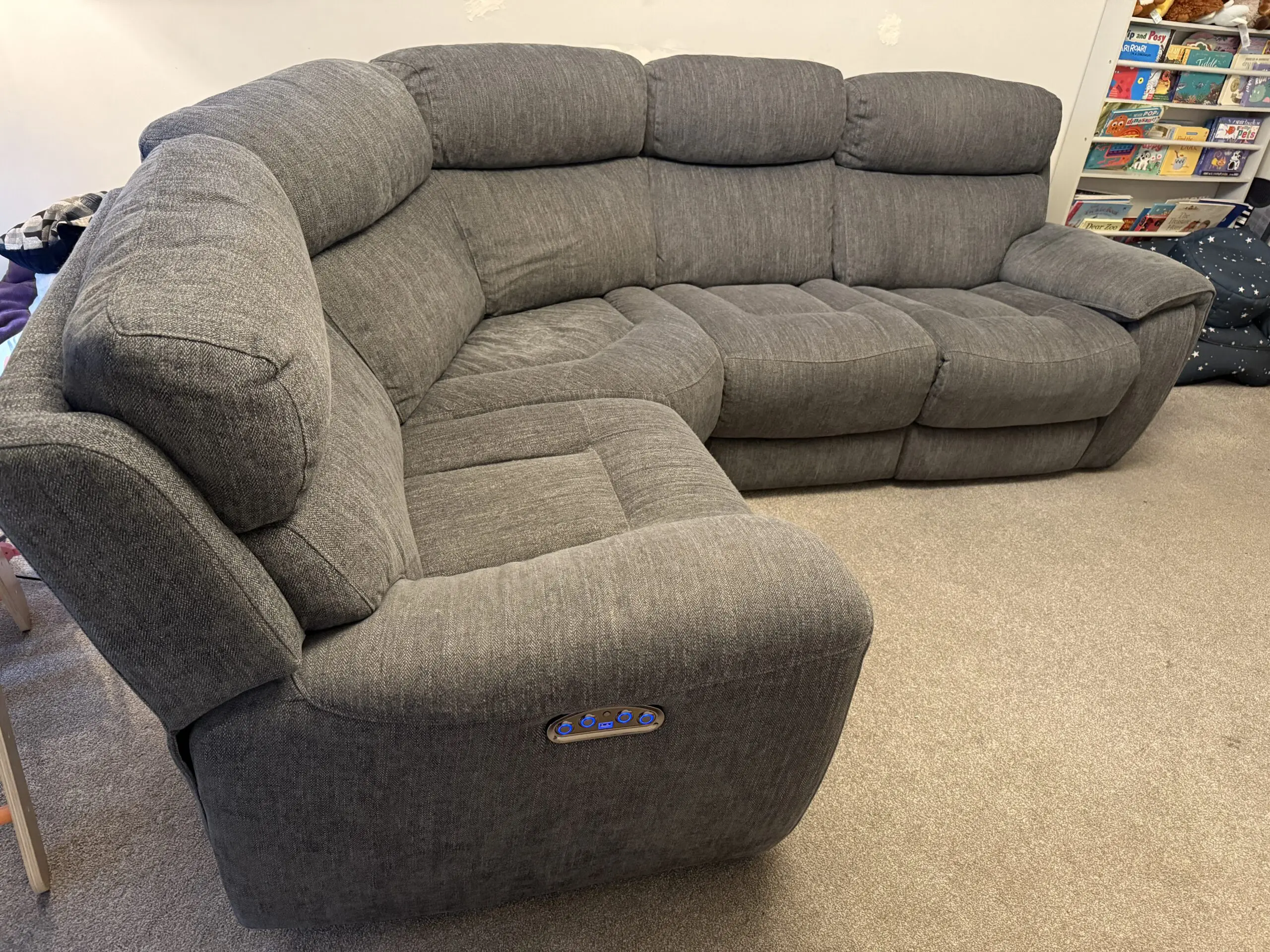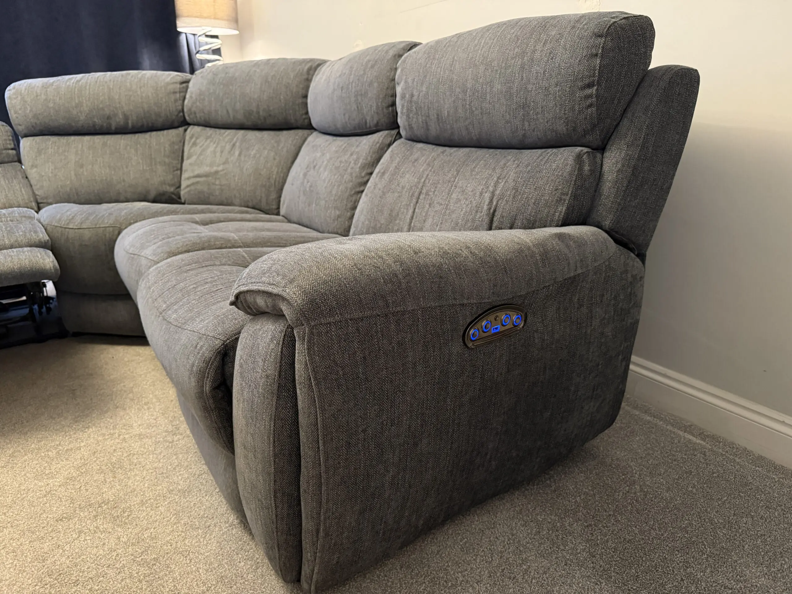 Dark grey 2x electric recliner sofa with 2x power headrest and USB charging points.