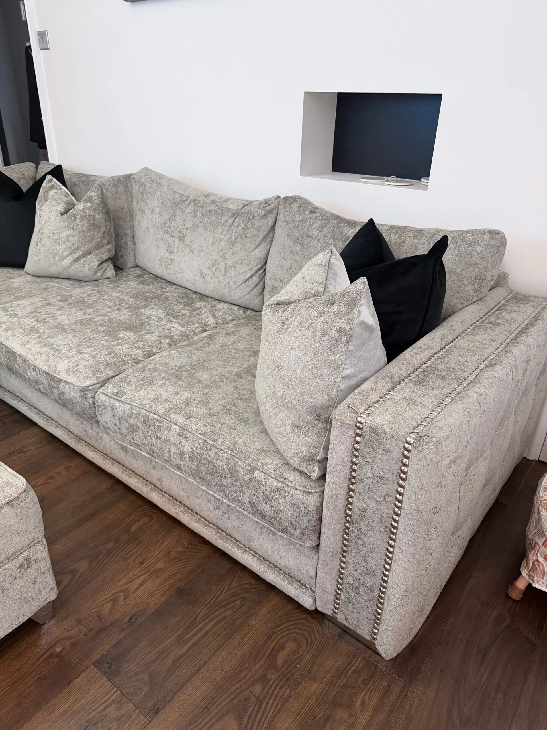 Sofology Grey Midas Sofa and Midas Ottoman Grey Pouffe